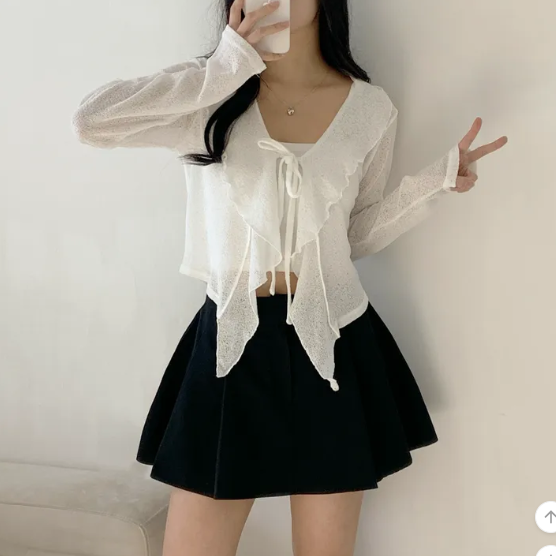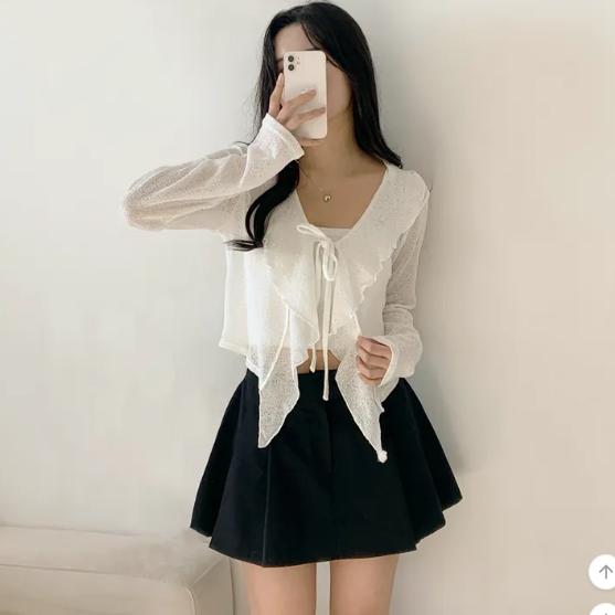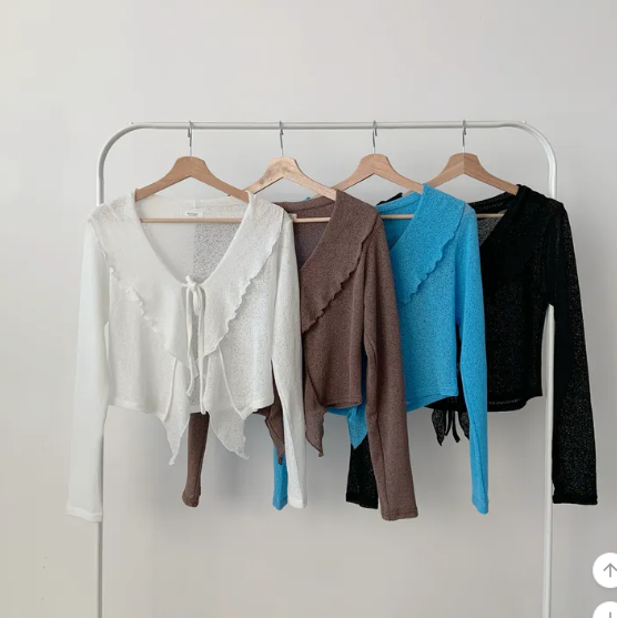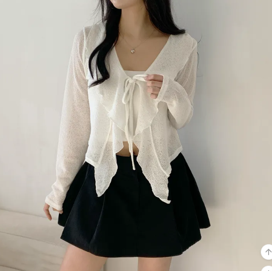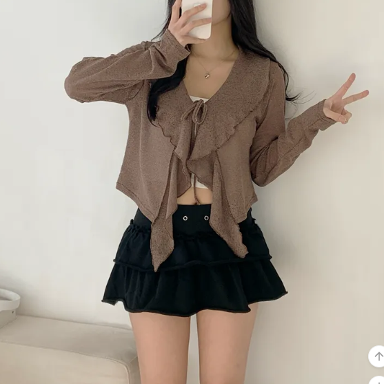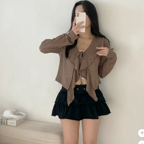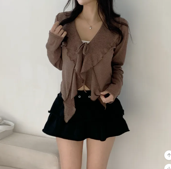 (•‾⌣‾•)荷葉邊不規則剪裁更顯獨特💕輕薄針織材質完美修飾身形❤️輕鬆打造溫柔甜美的芭蕾風穿搭