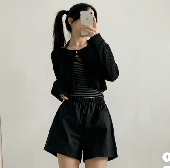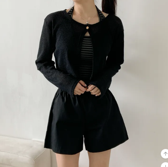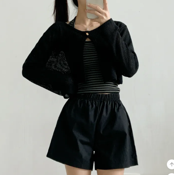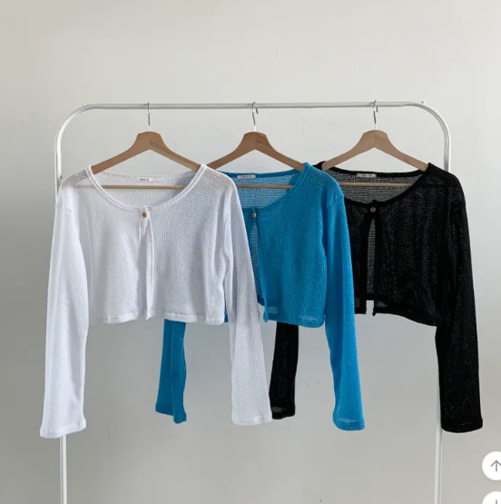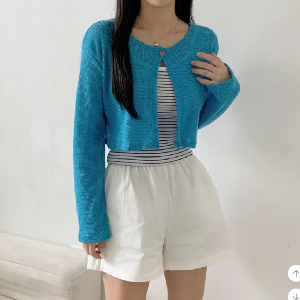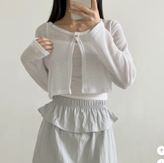 (•‾⌣‾•)呢款短針織外套採用輕薄透氣的網眼材質❤️打造滿滿的夏日氛圍感💕