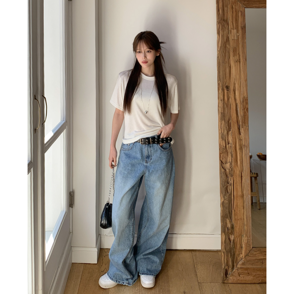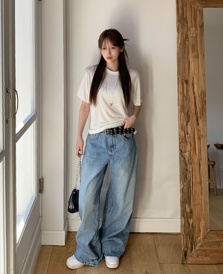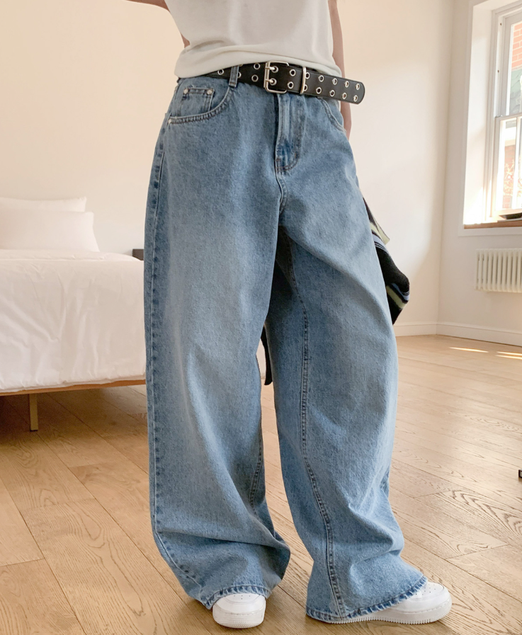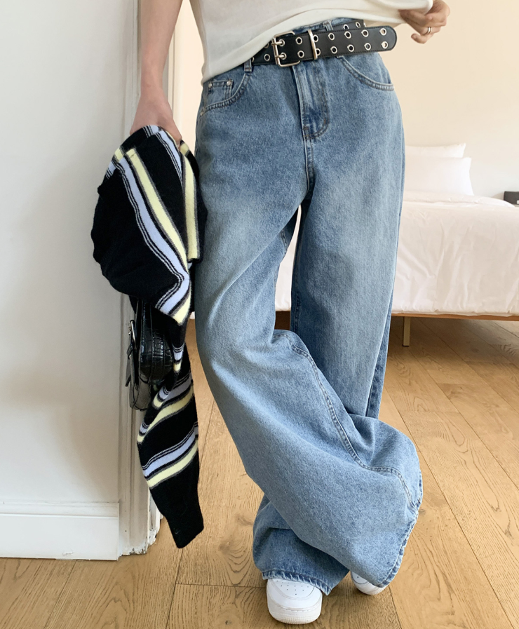 ヽ( ^ω^ ゞ )寬鬆輪廓和垂墜感牛仔褲❤️打造慵懶帥氣的街頭風格💕高腰設計不僅能拉長腿部線條