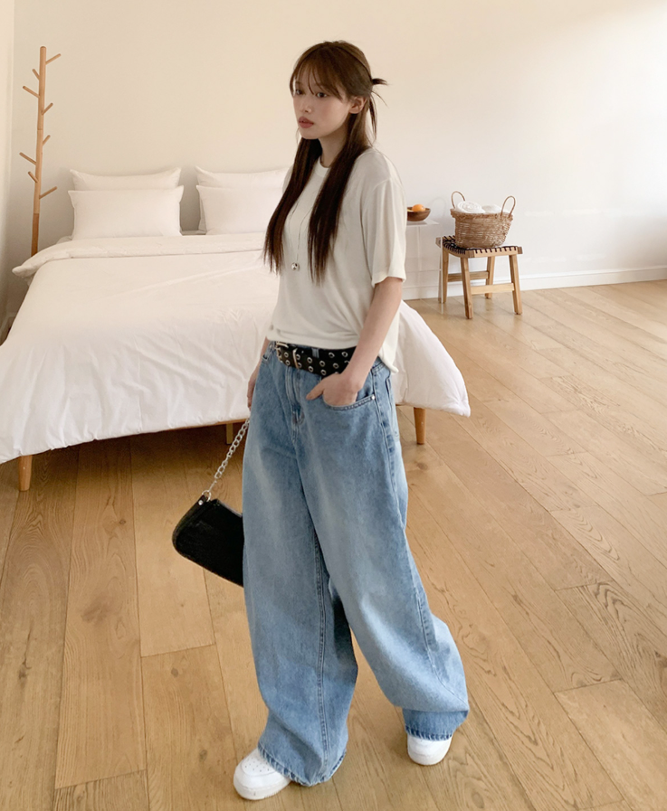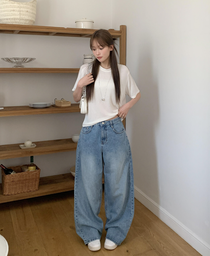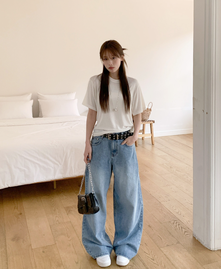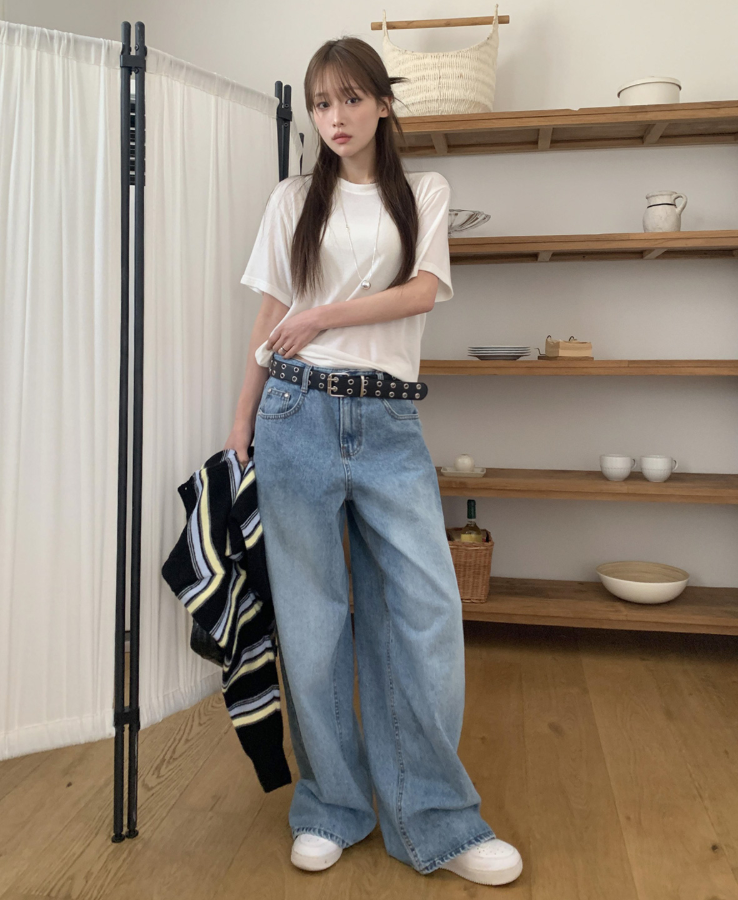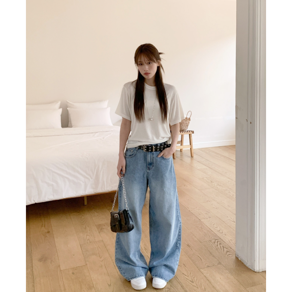 ヽ( ^ω^ ゞ )寬鬆輪廓和垂墜感牛仔褲❤️打造慵懶帥氣的街頭風格💕高腰設計不僅能拉長腿部線條