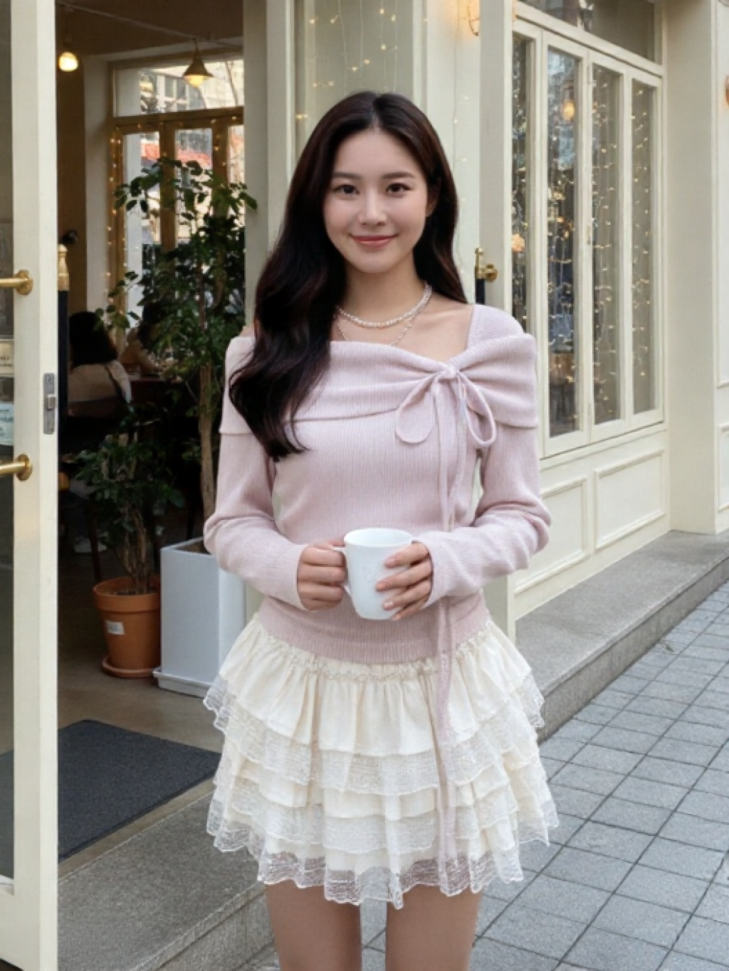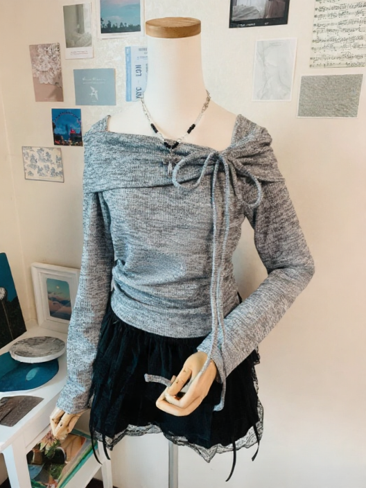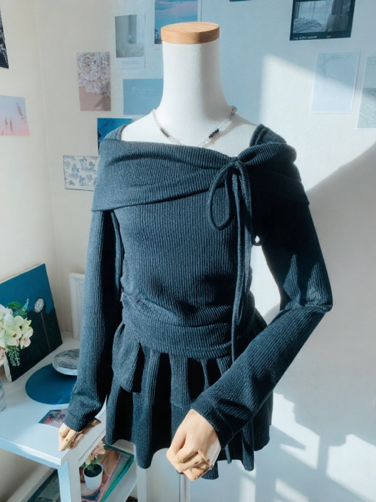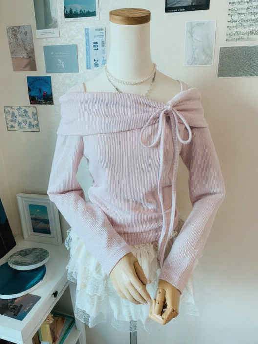 (•‾⌣‾•)氣質一字領針織上衣別緻扭結設計💕微露香肩盡顯溫柔舒適又百搭❤️