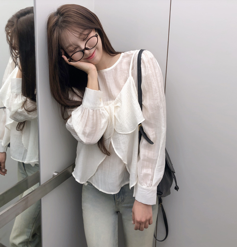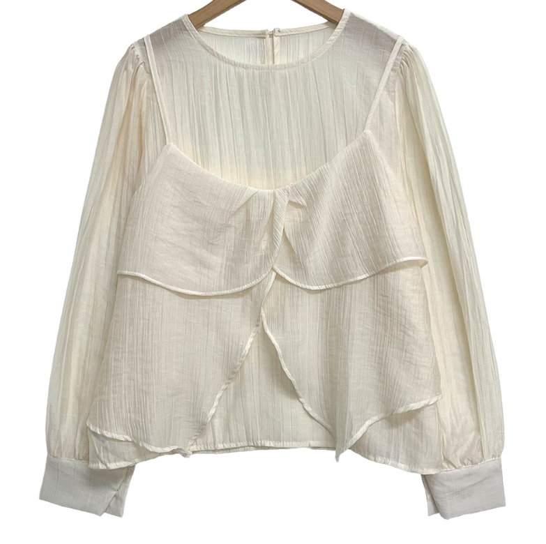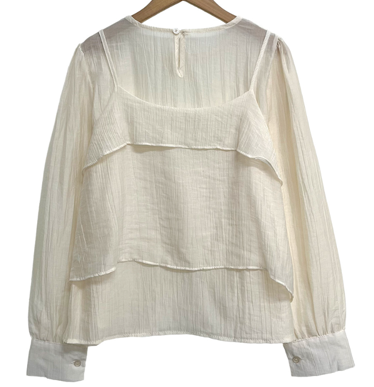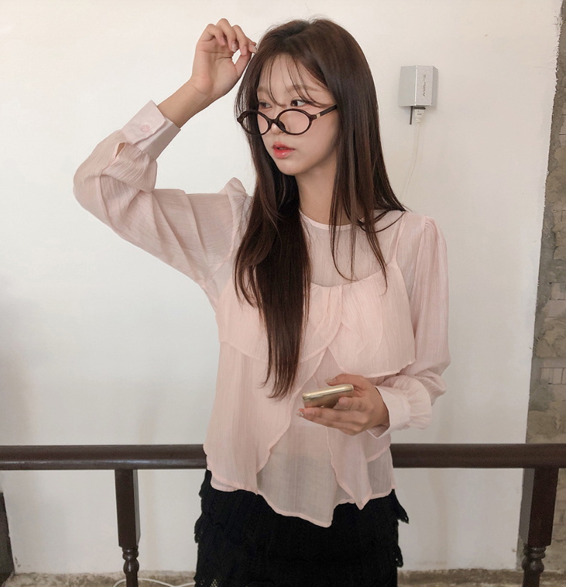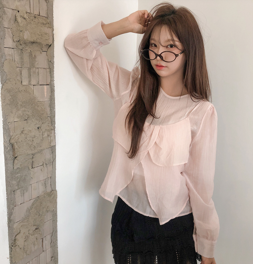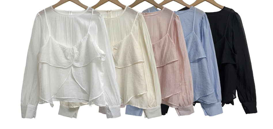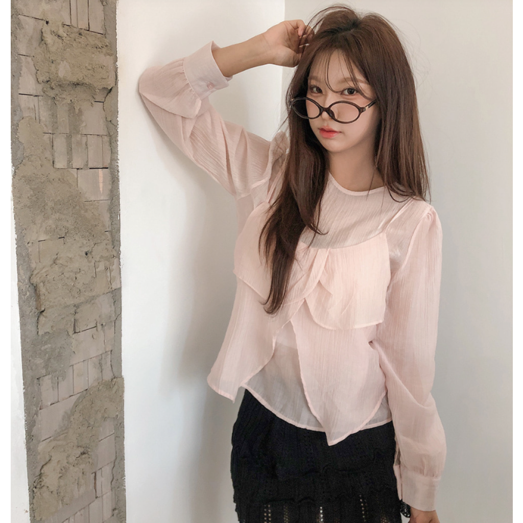 (•‾⌣‾•)獨特透膚雪紡荷葉邊上衣💕層次兩件式設計感豐富❤️舒適顯瘦穿上盡顯溫柔仙氣。