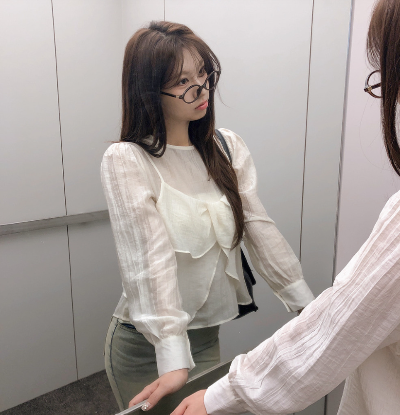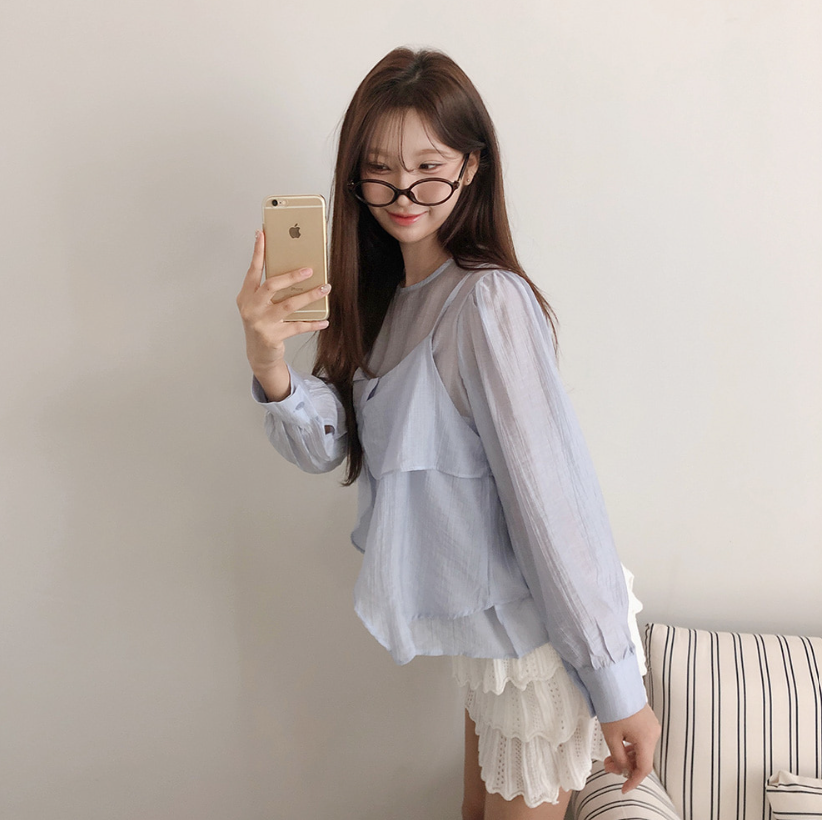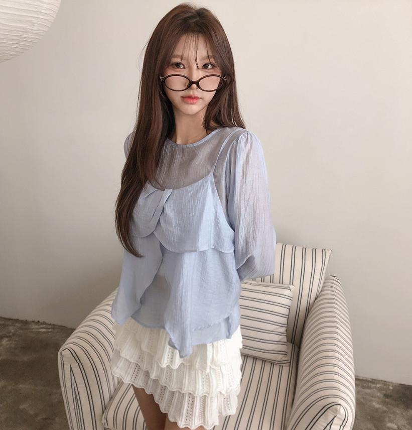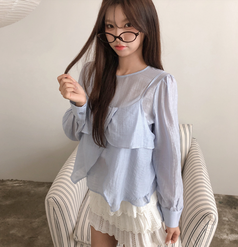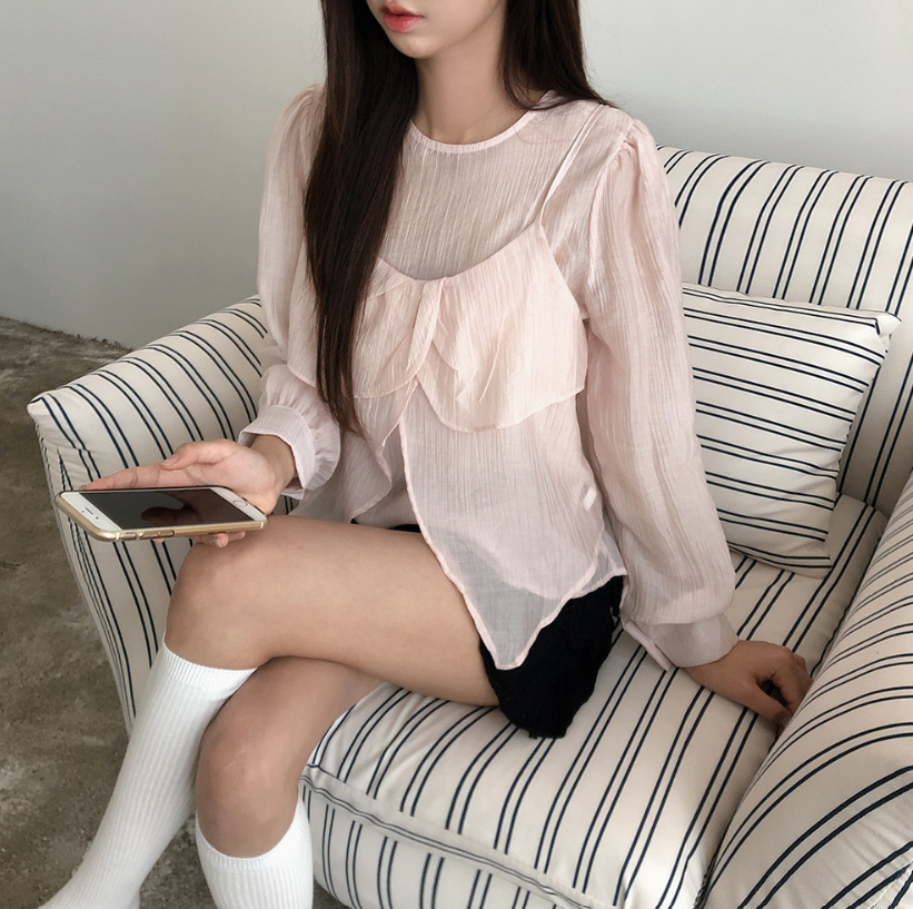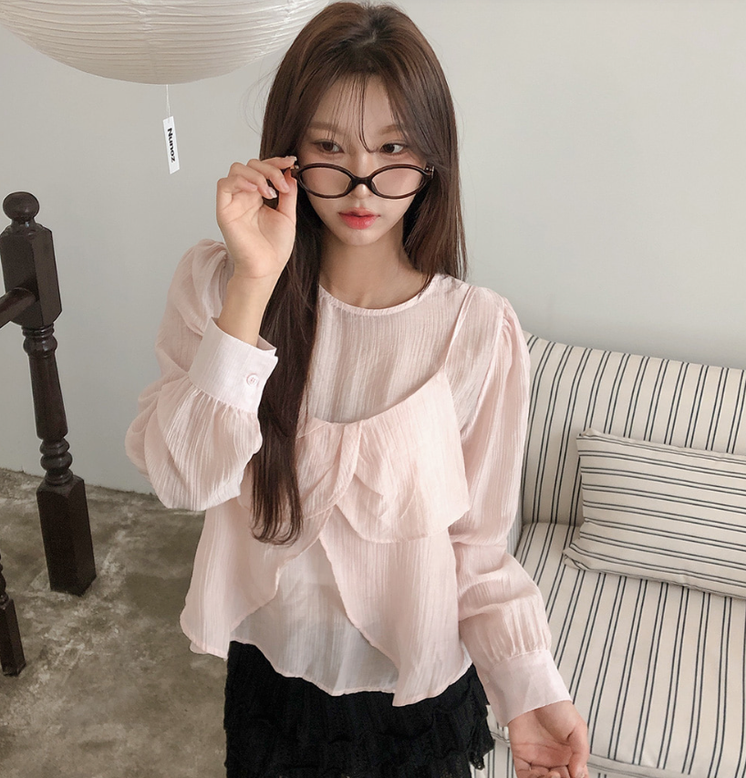(•‾⌣‾•)獨特透膚雪紡荷葉邊上衣💕層次兩件式設計感豐富❤️舒適顯瘦穿上盡顯溫柔仙氣。