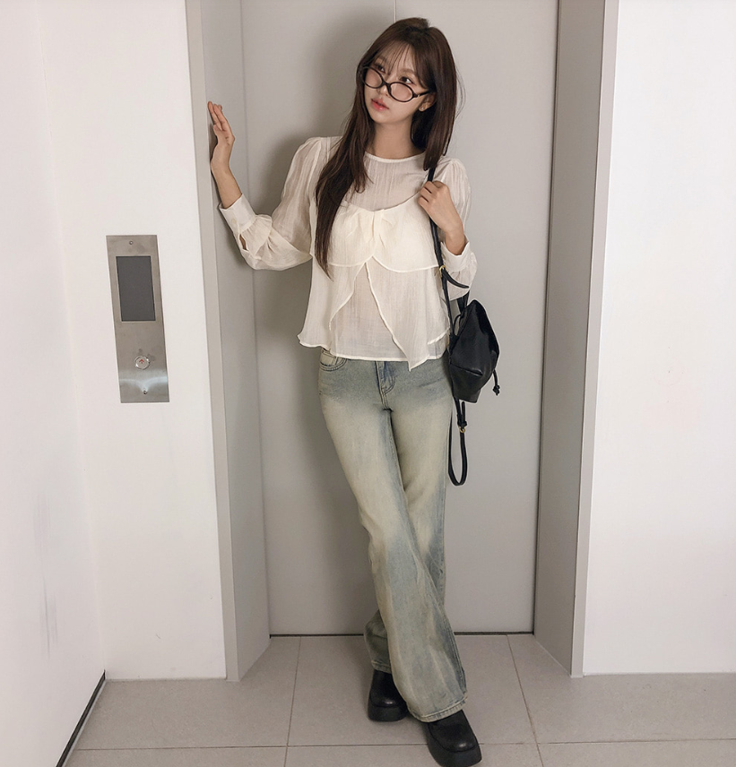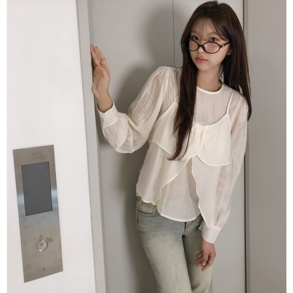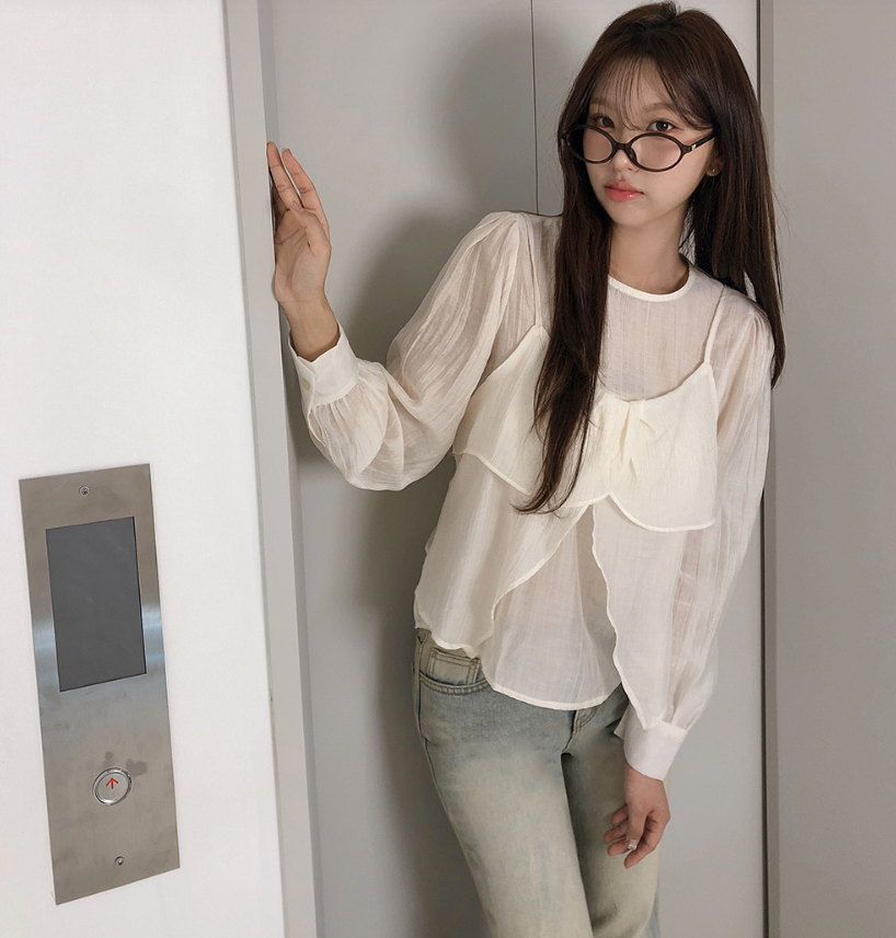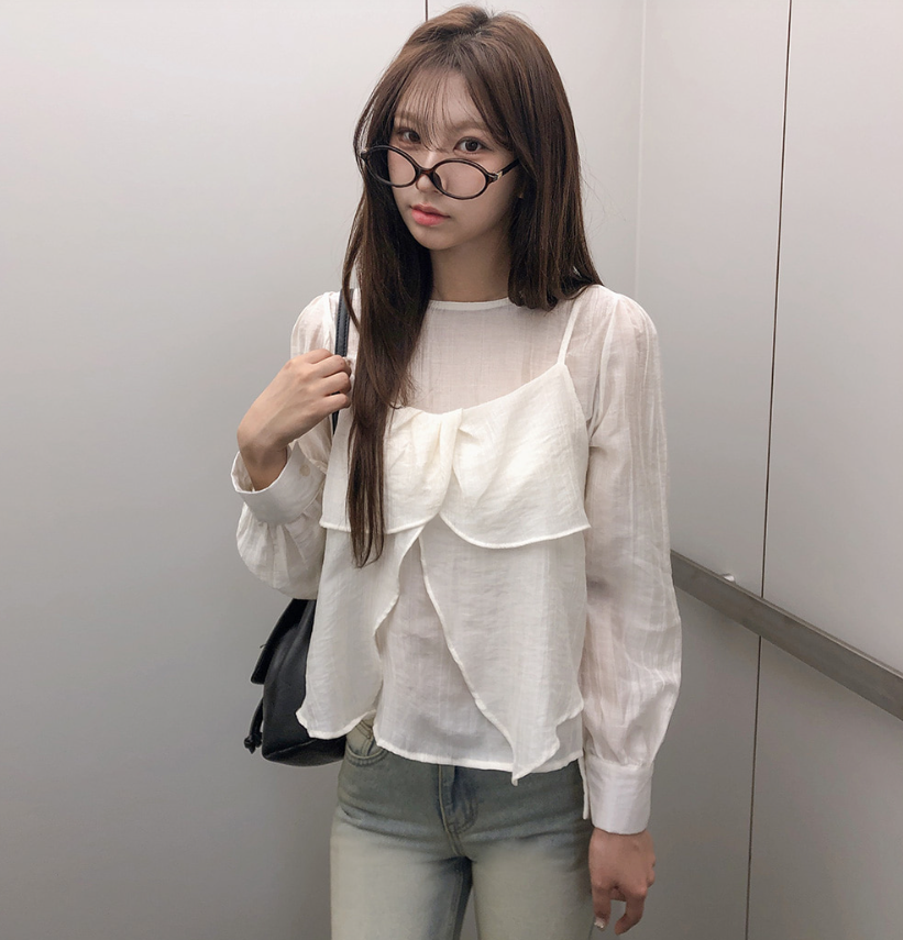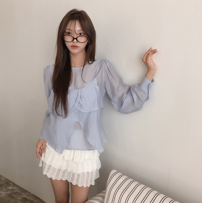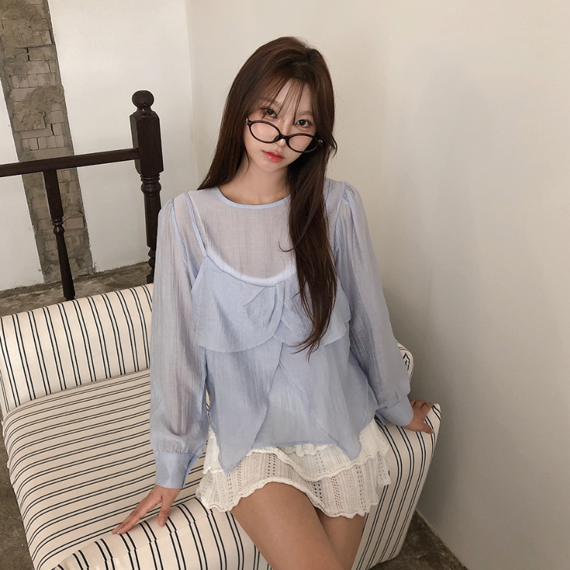 (•‾⌣‾•)獨特透膚雪紡荷葉邊上衣💕層次兩件式設計感豐富❤️舒適顯瘦穿上盡顯溫柔仙氣。