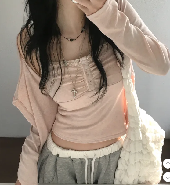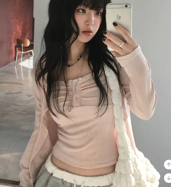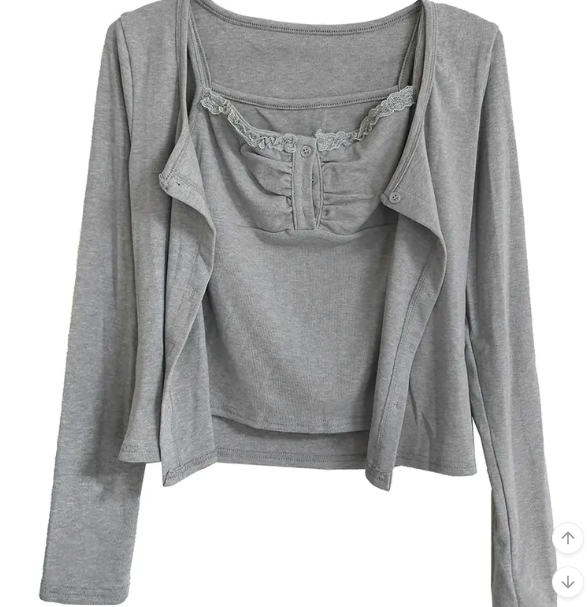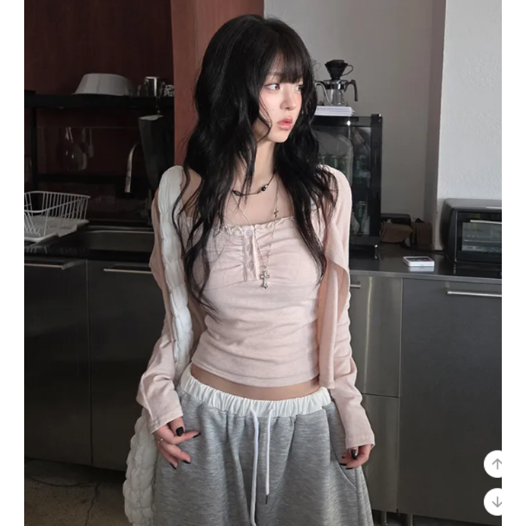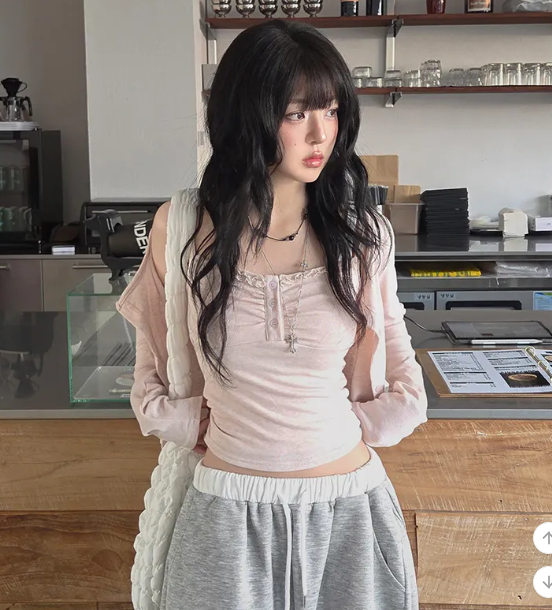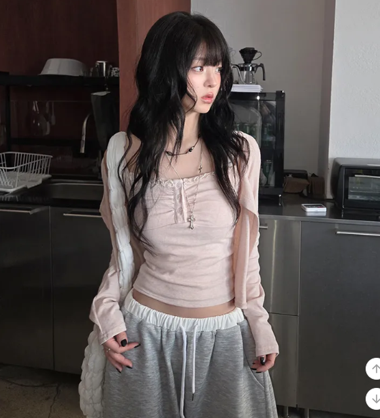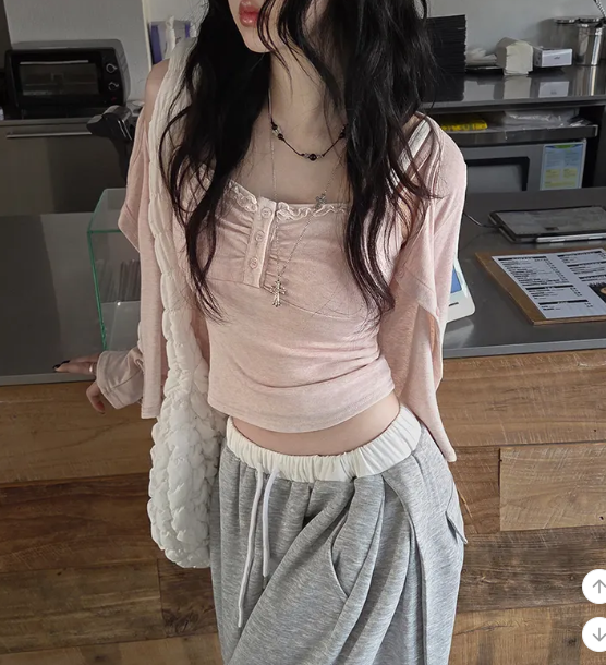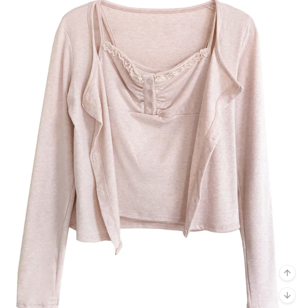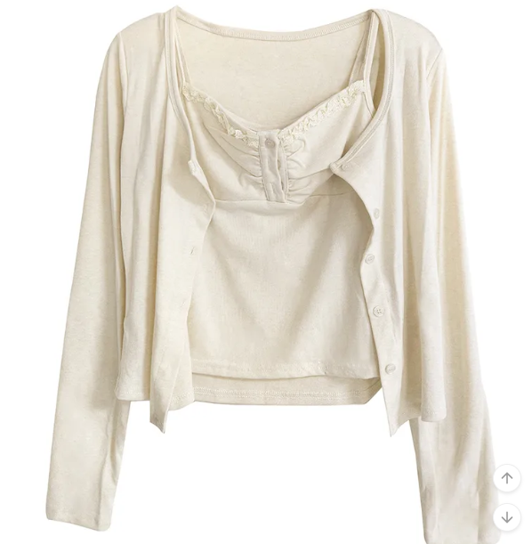 (•‾⌣‾•)溫柔感蕾絲邊吊帶搭配外套❤️修身版型輕鬆穿出小性感💕