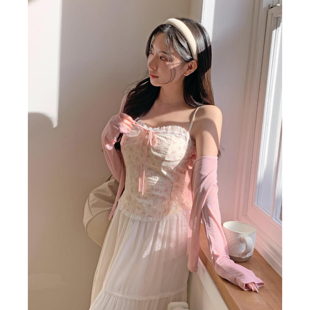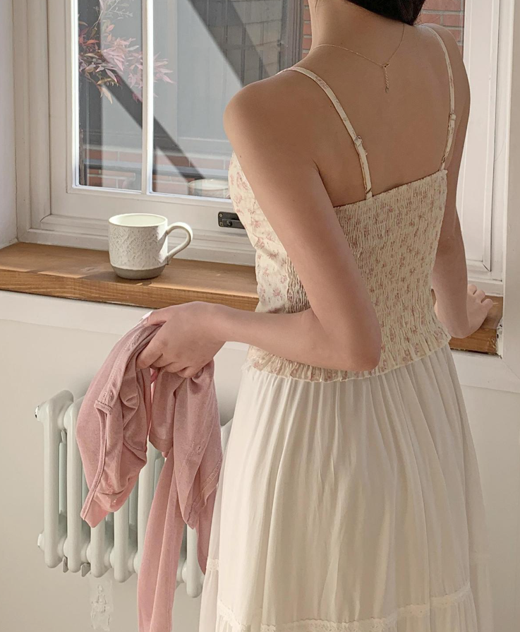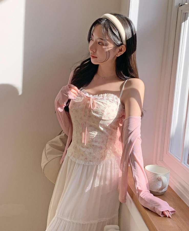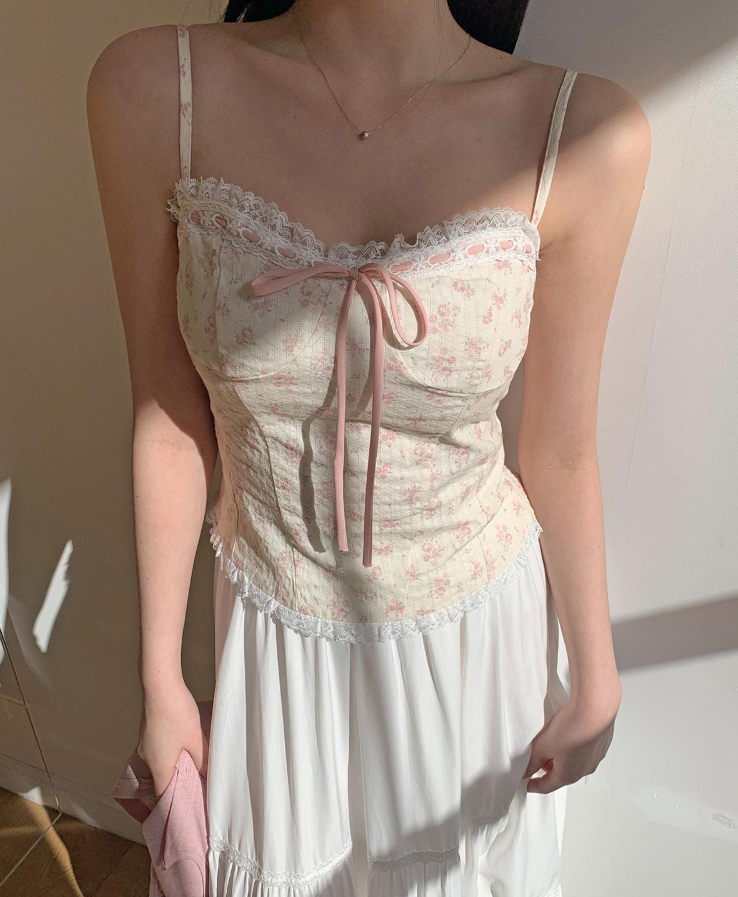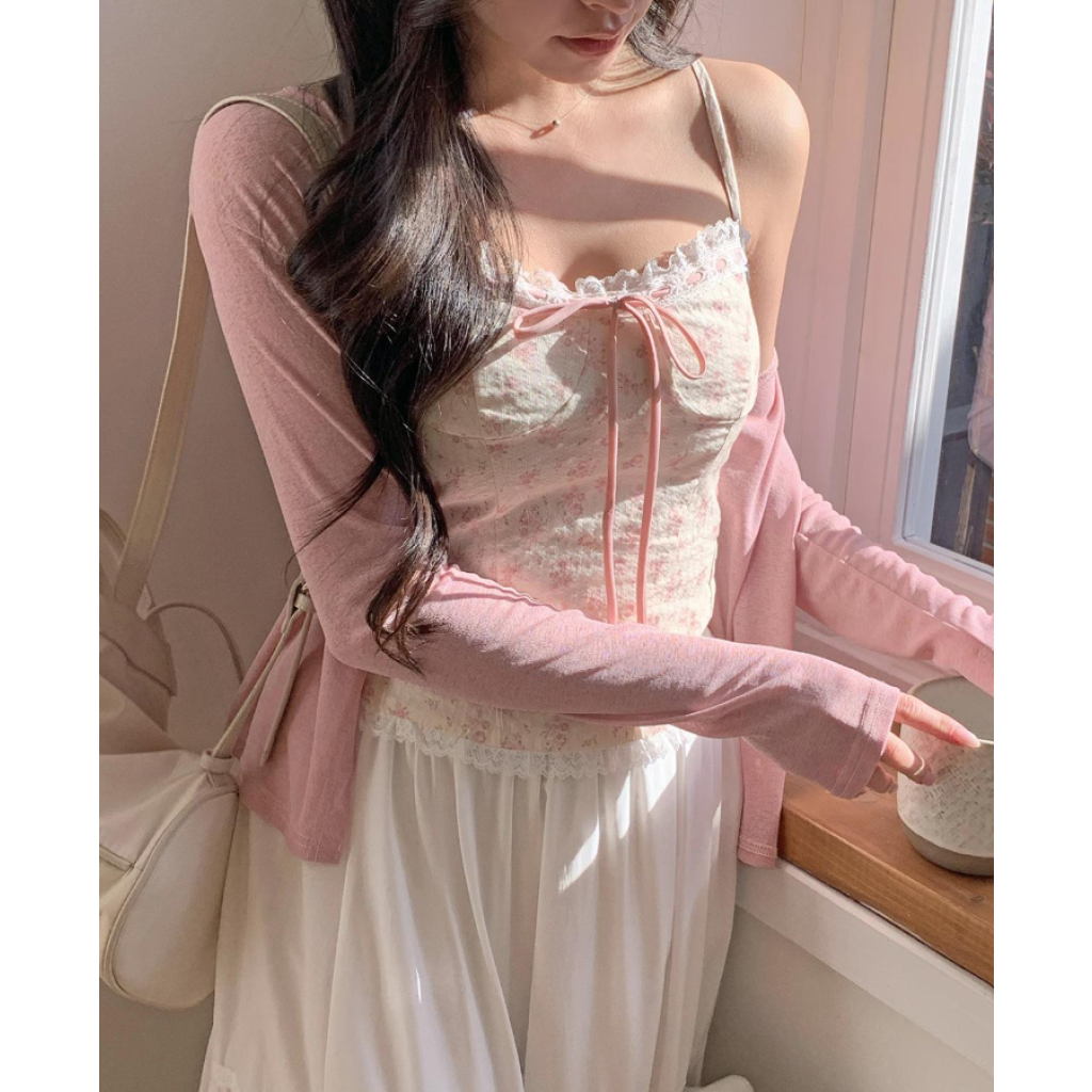 (•‾⌣‾•)柔美芭蕾風兩件式套裝💕浪漫碎花吊帶點綴❤️輕鬆穿出溫柔氛圍感