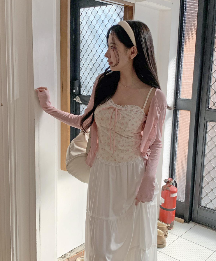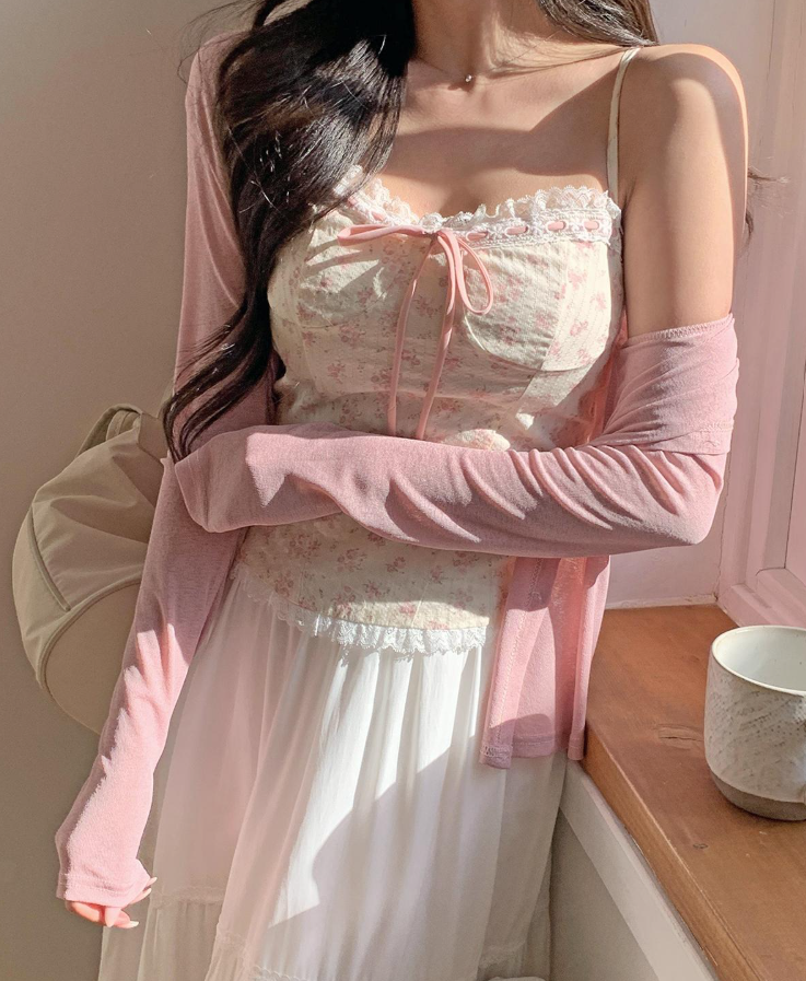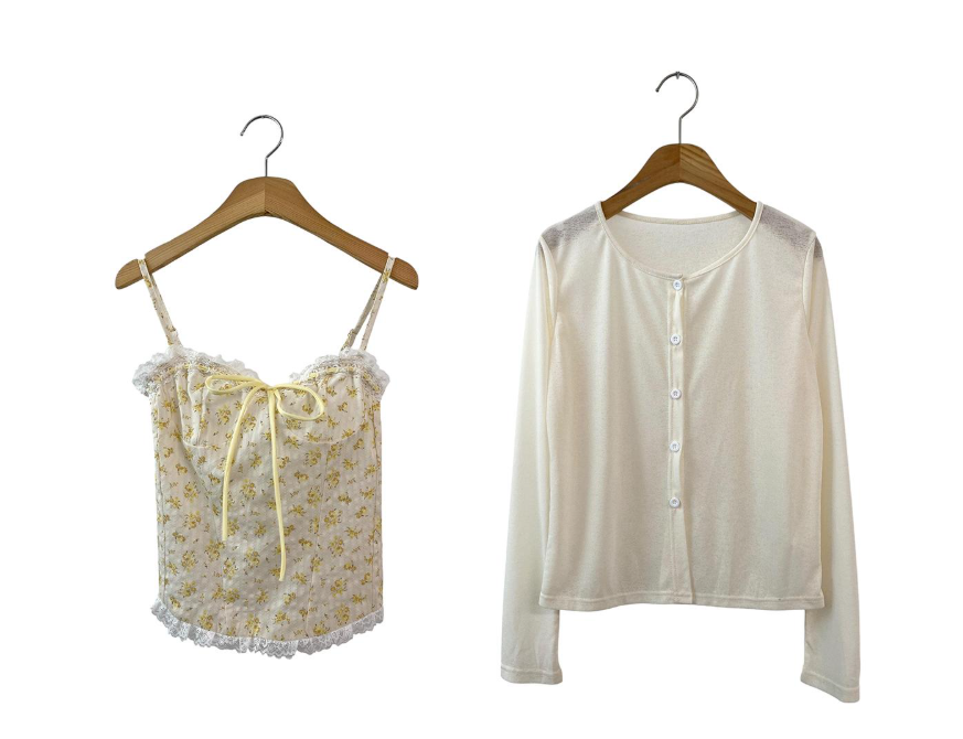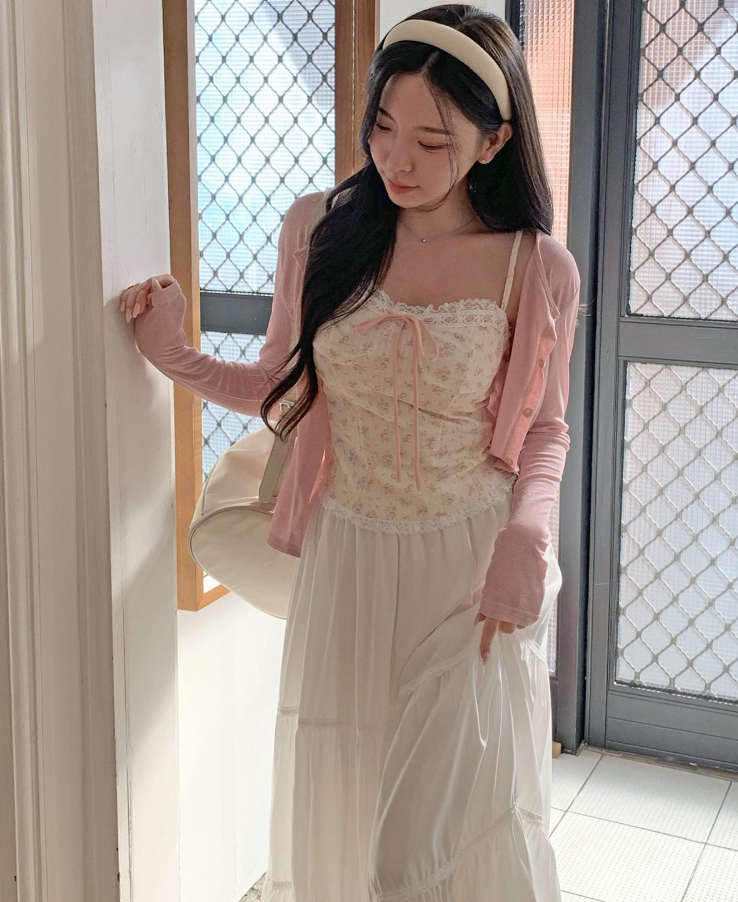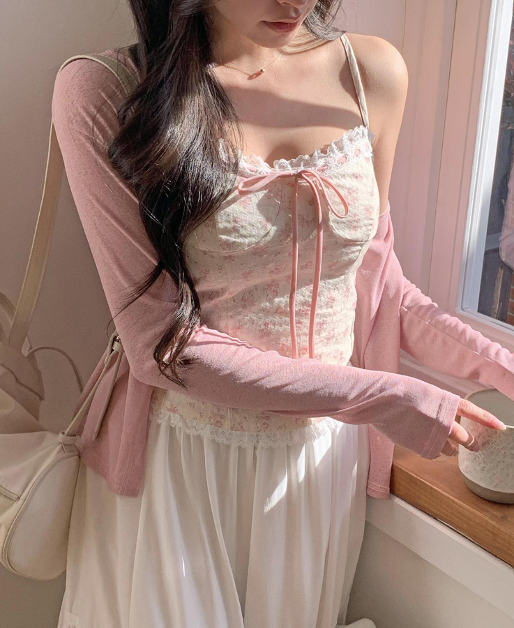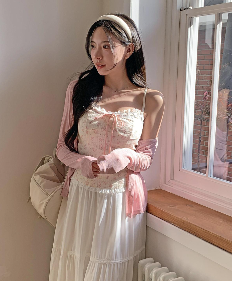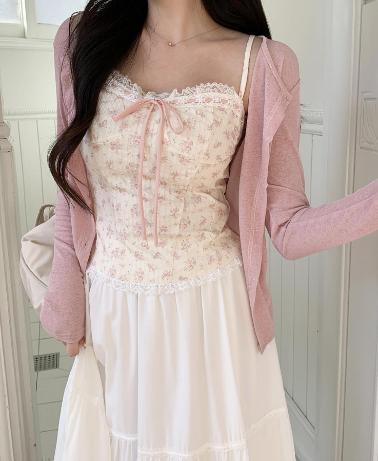 (•‾⌣‾•)柔美芭蕾風兩件式套裝💕浪漫碎花吊帶點綴❤️輕鬆穿出溫柔氛圍感