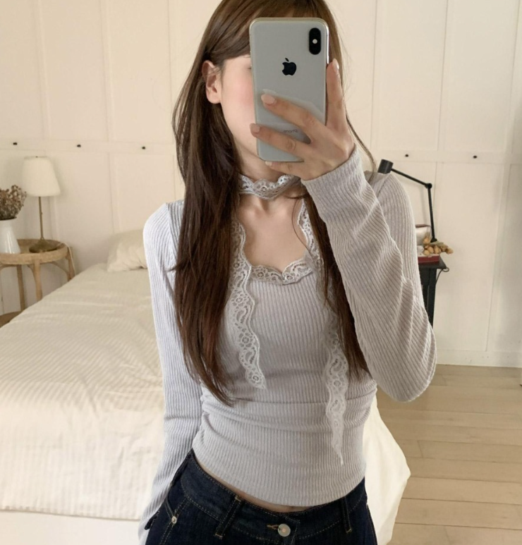 (•‾⌣‾•)溫柔氣質滿分❤️小心機V領展現迷人鎖骨💕修身針織版型勾勒出完美曲線