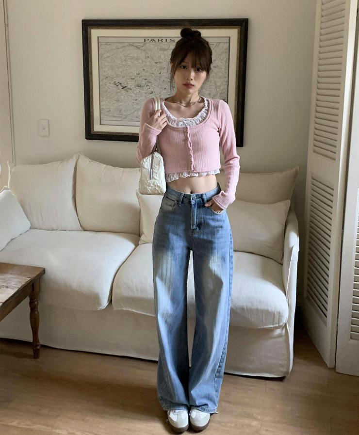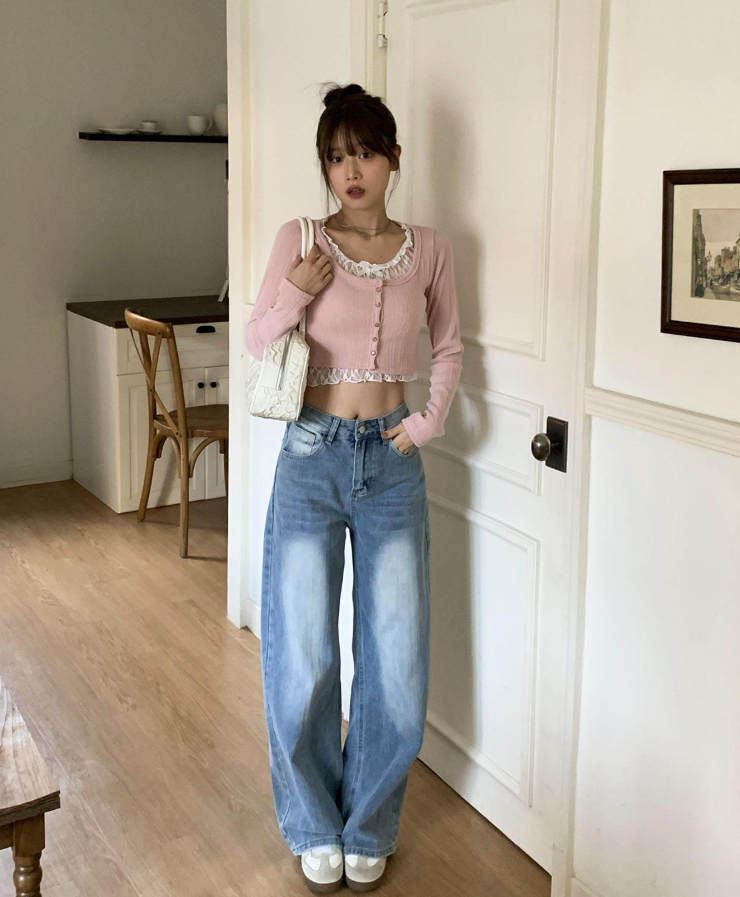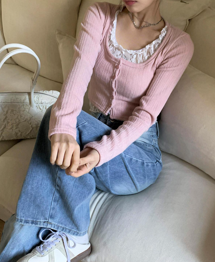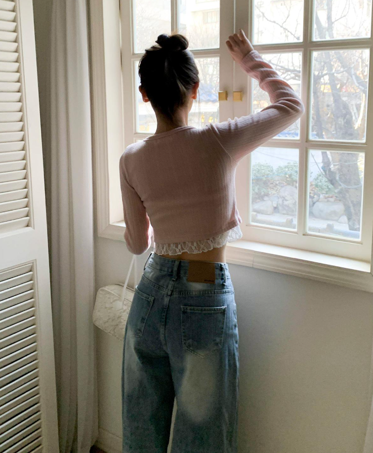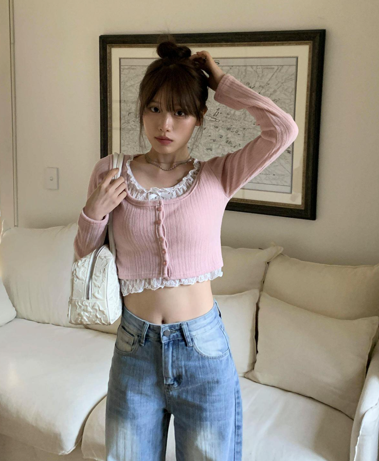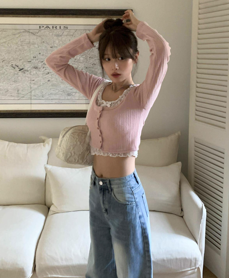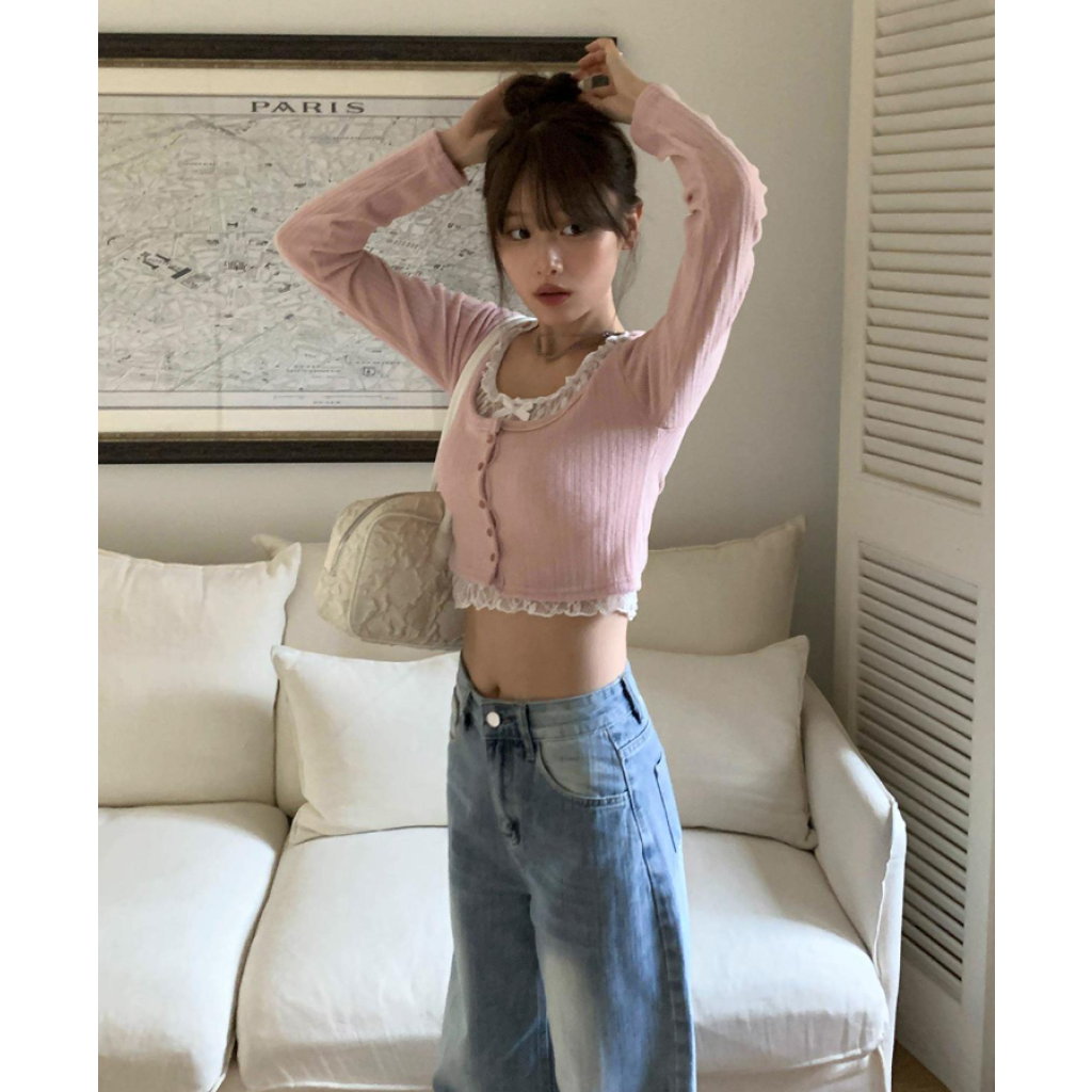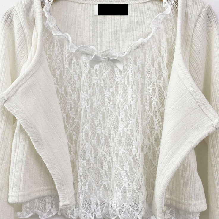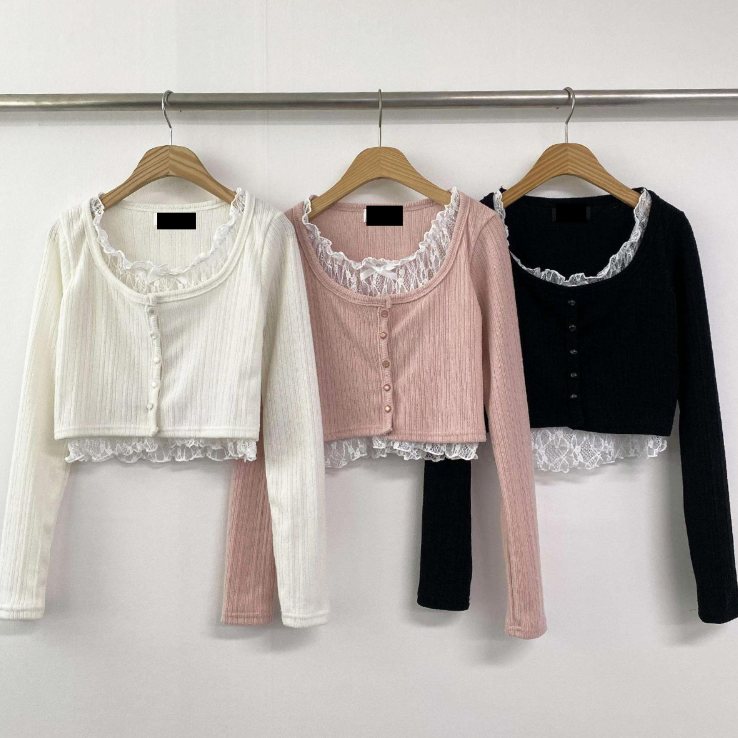 (•‾⌣‾•)精緻蕾絲拼接針織💕短版設計心機顯瘦❤️完美融合純真與小性感