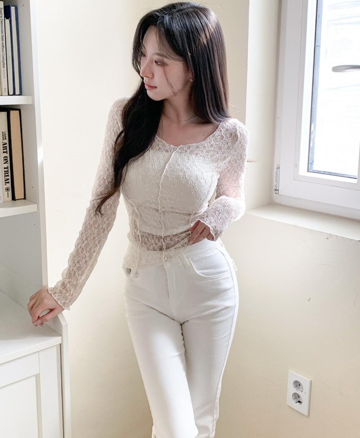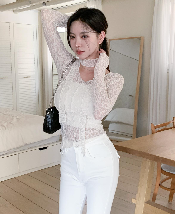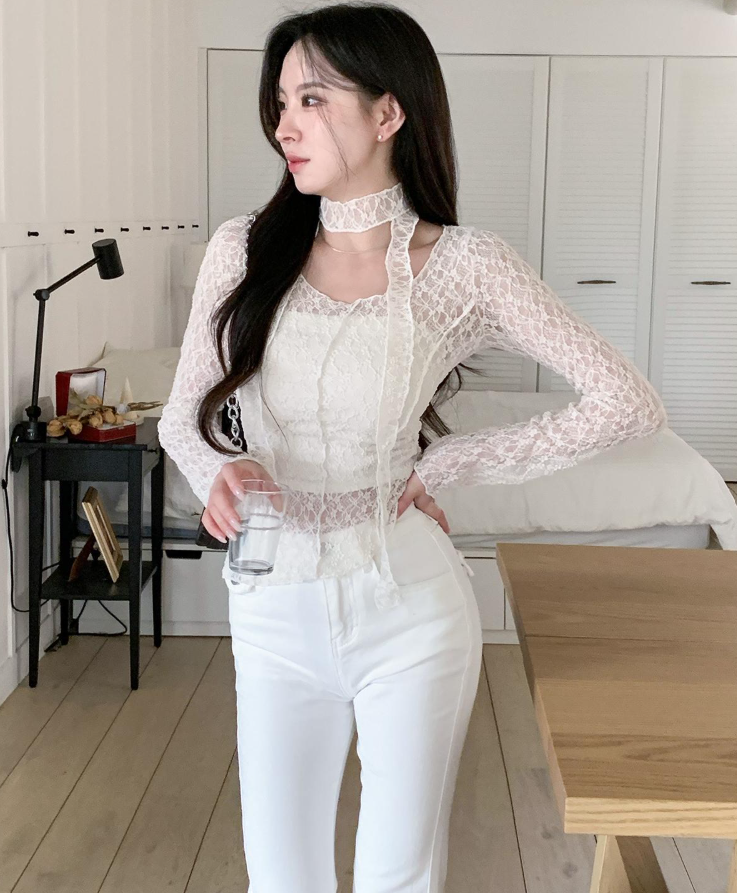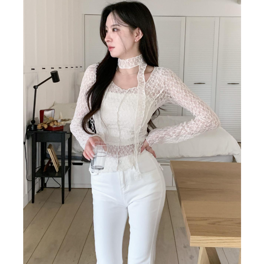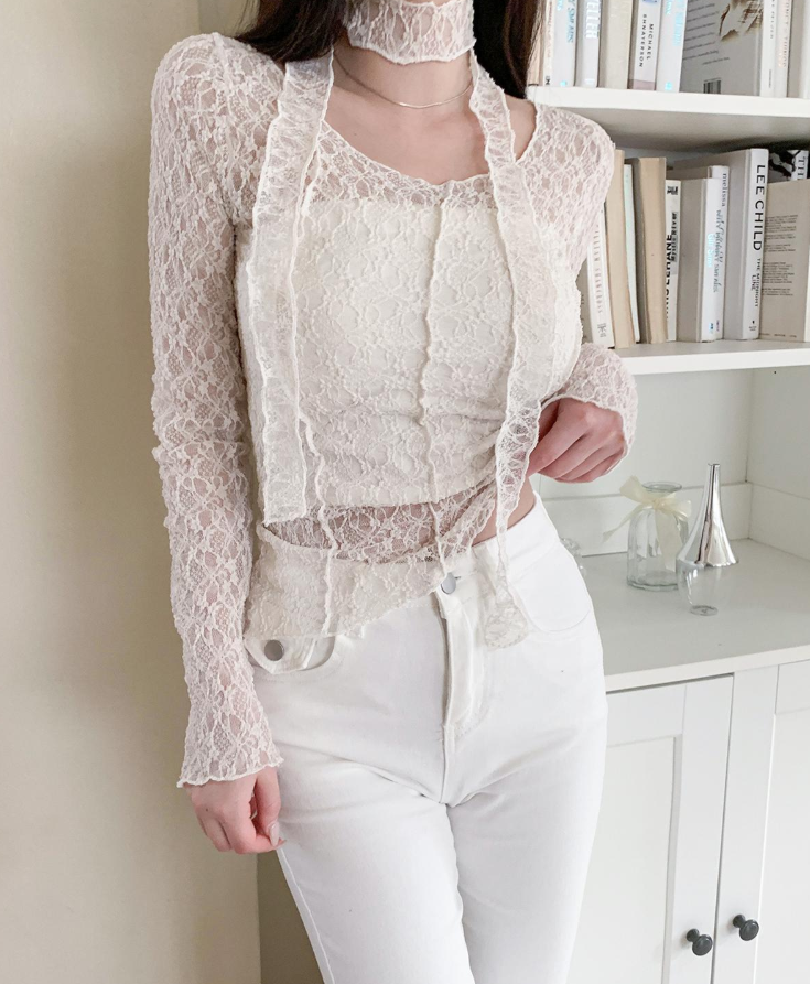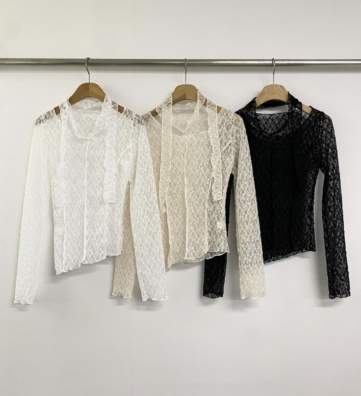 (•‾⌣‾•)細膩蕾絲打造若隱若現既透膚感❤️蕾絲圍巾設計更添一絲小性感💕