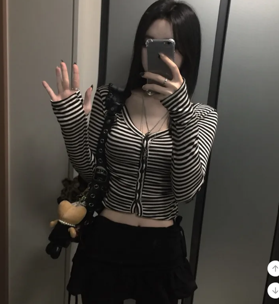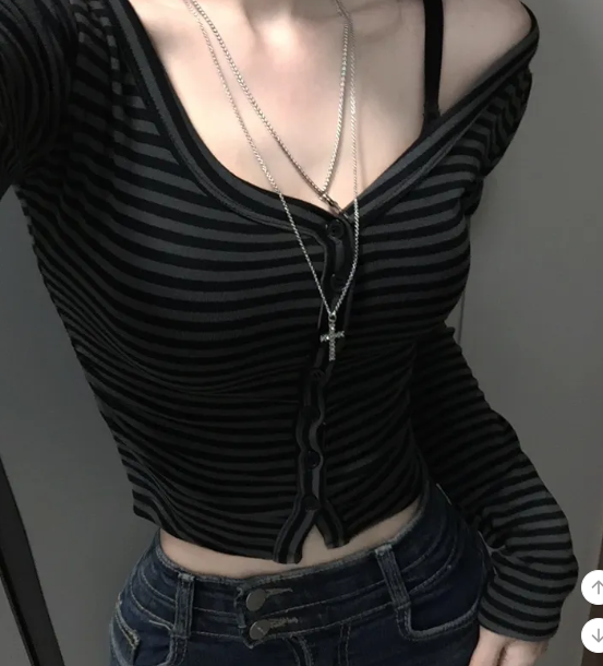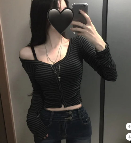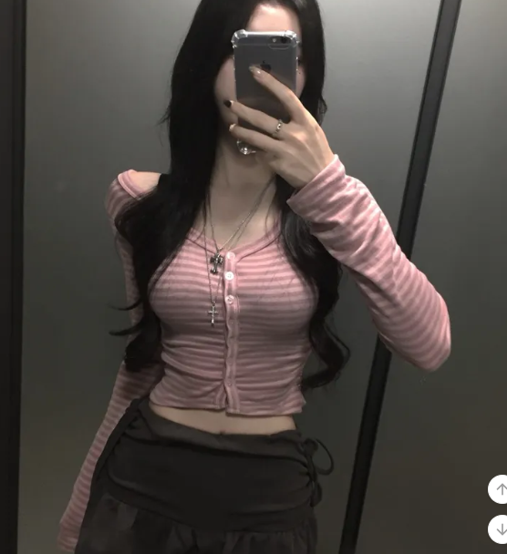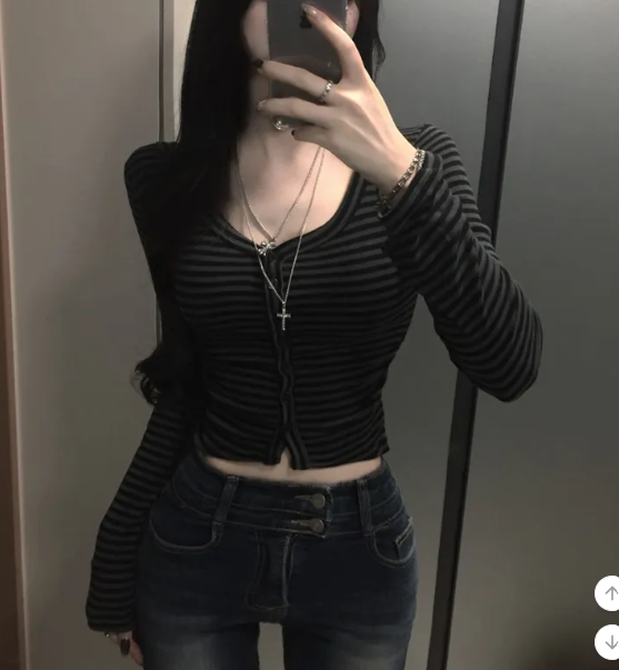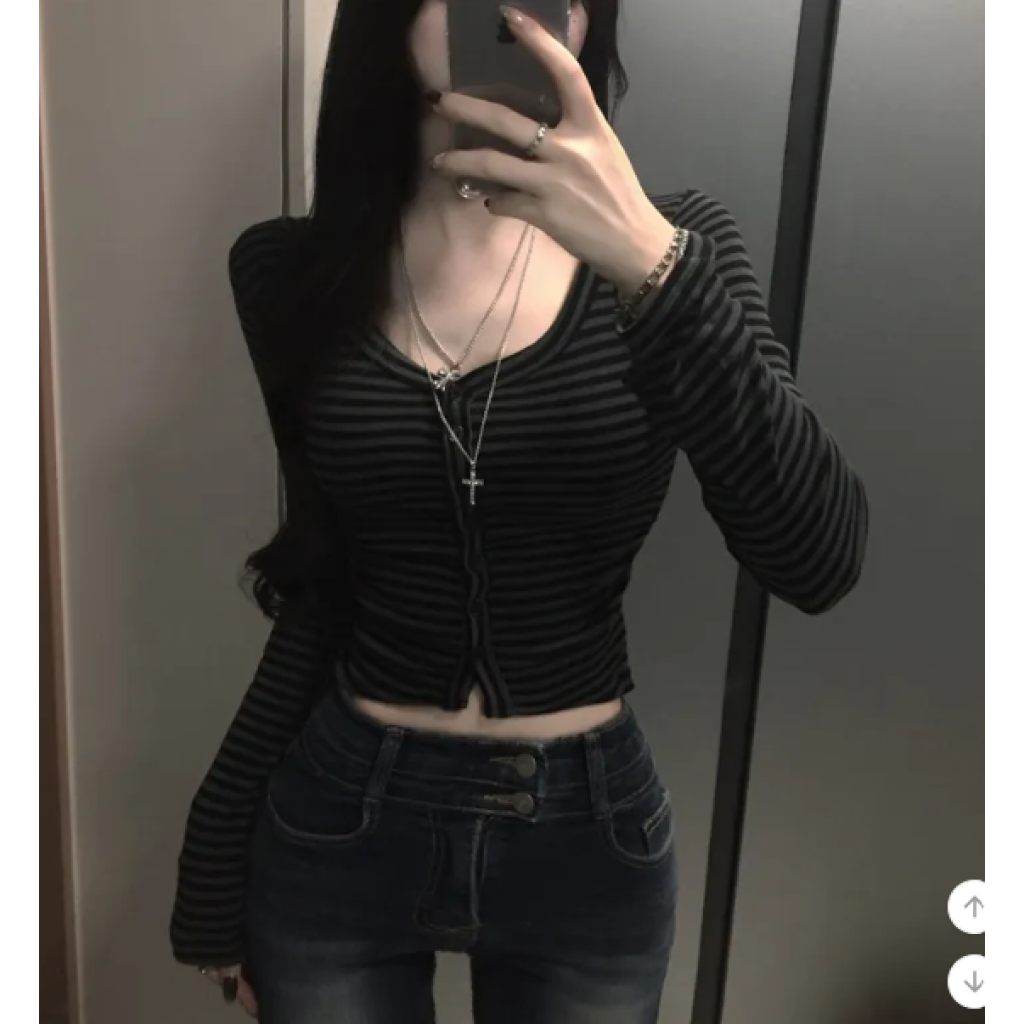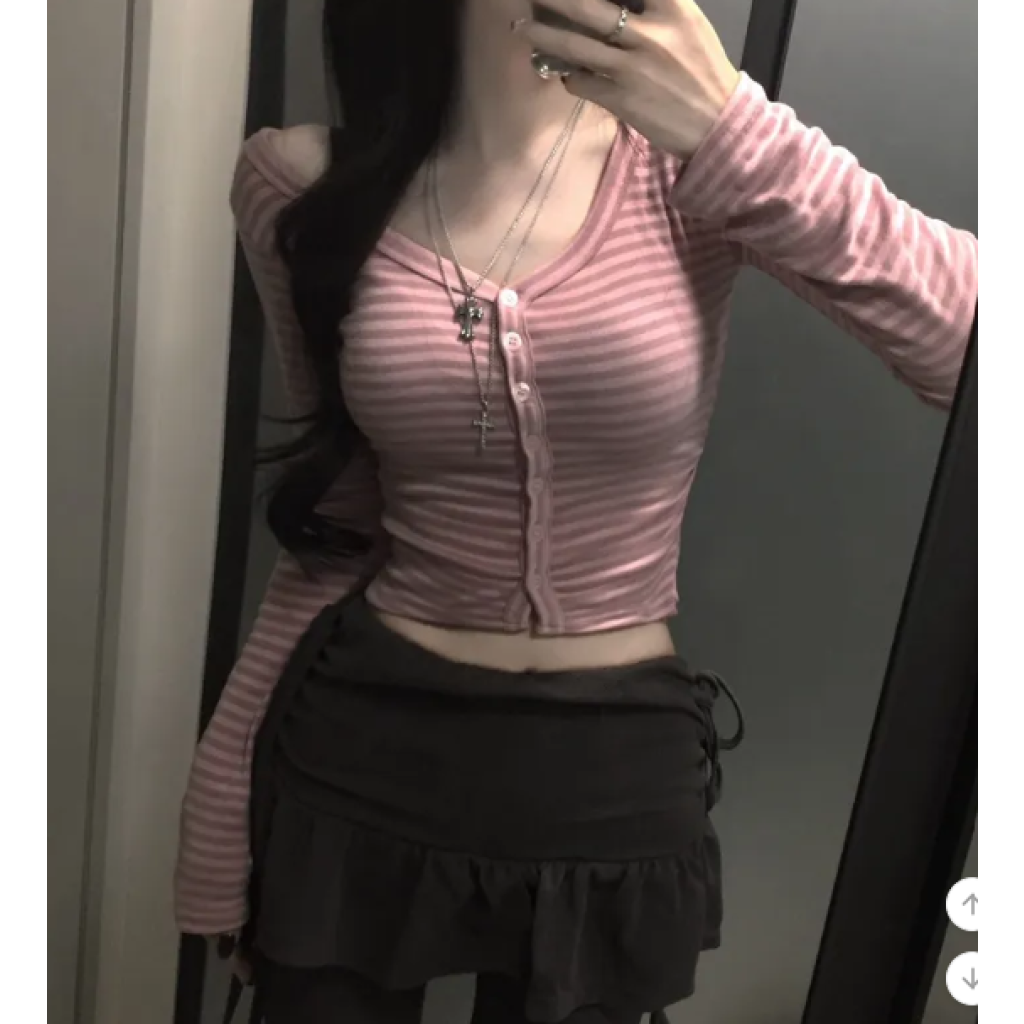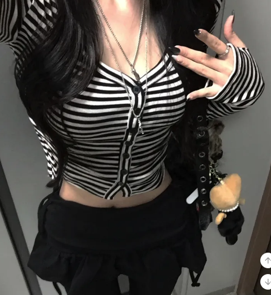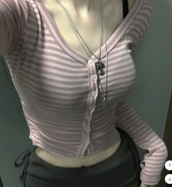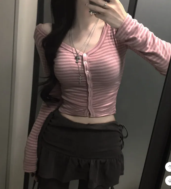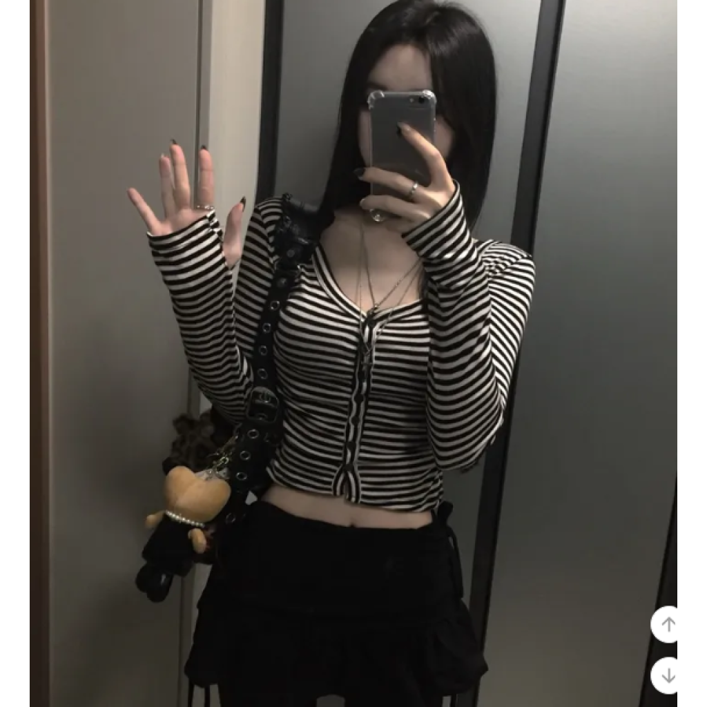 (•‾⌣‾•)Y2K甜心必備貼身剪裁完美展現身材曲線❤️V領設計更顯鎖骨精緻💕