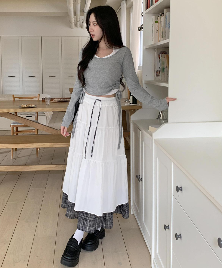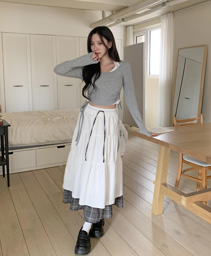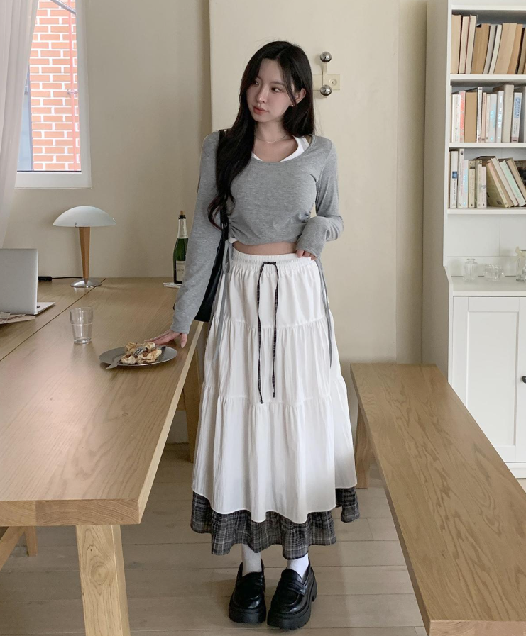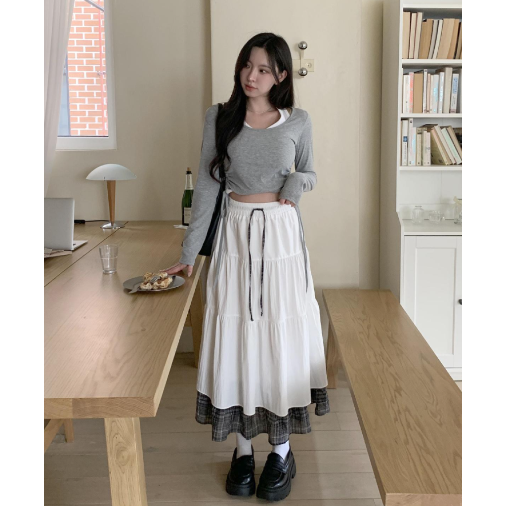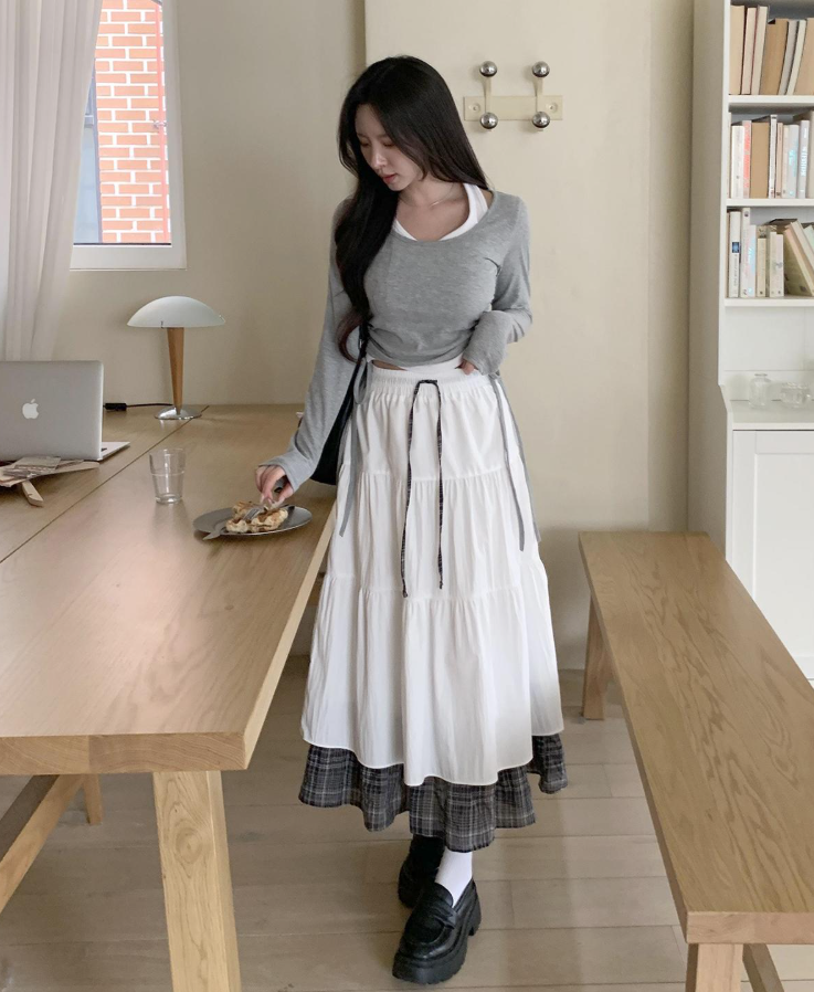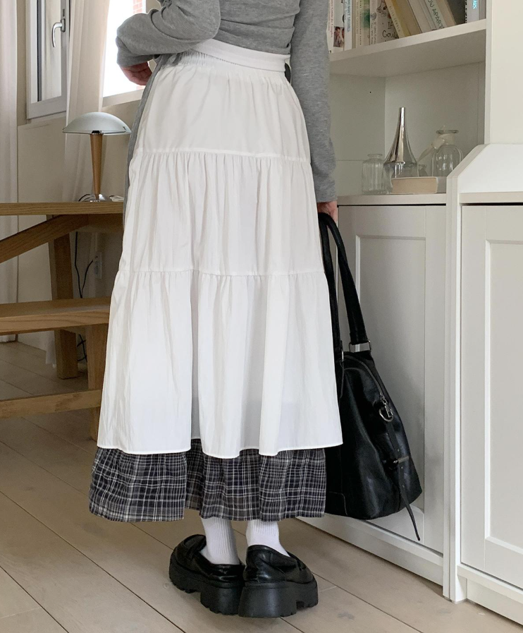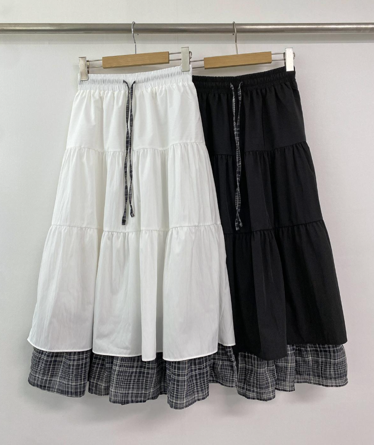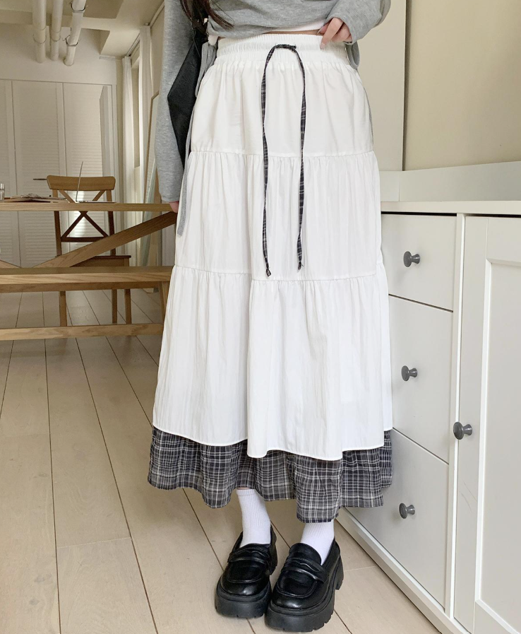 層疊格紋半身裙【2色入】
