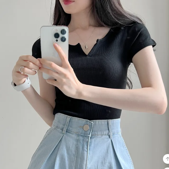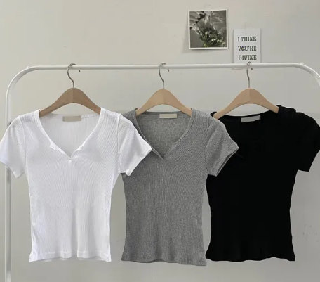 (•‾⌣‾•)小心機小V領設計不經意地流露性感💕設計貼身顯瘦完美勾勒身材曲線❤️