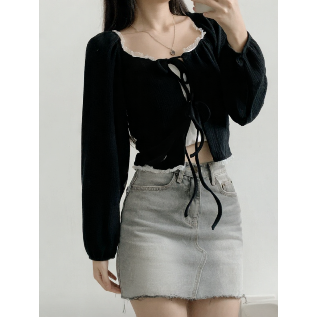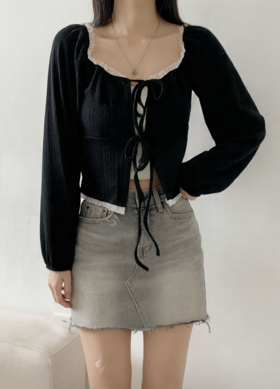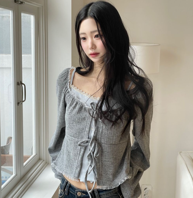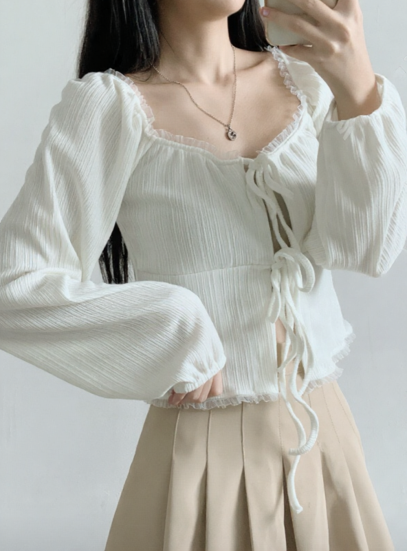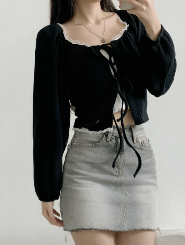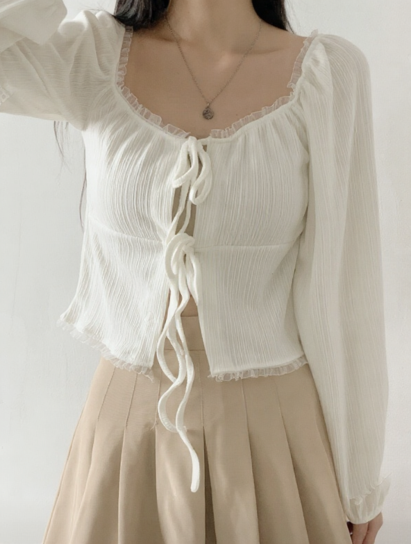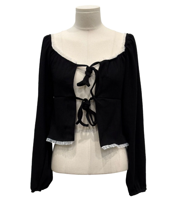 (•‾⌣‾•)法式溫柔感綁帶外套💕蕾絲花邊點綴更顯精緻❤️魅力值瞬間拉滿
