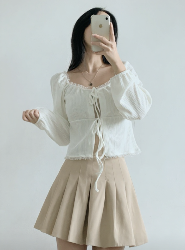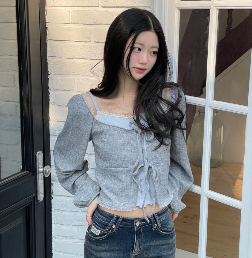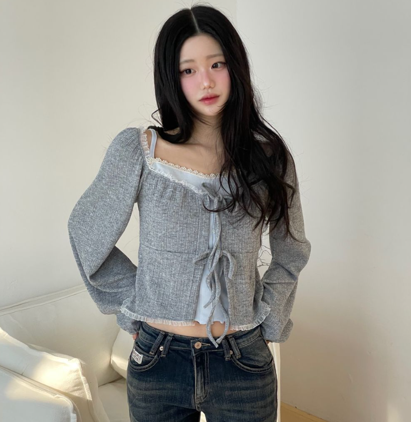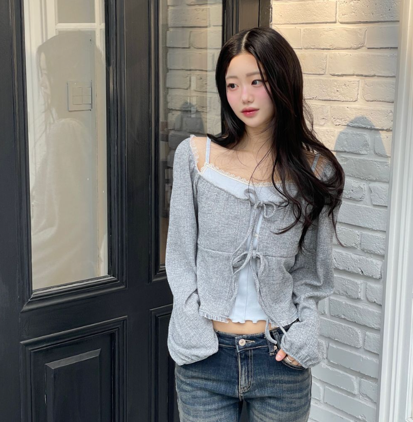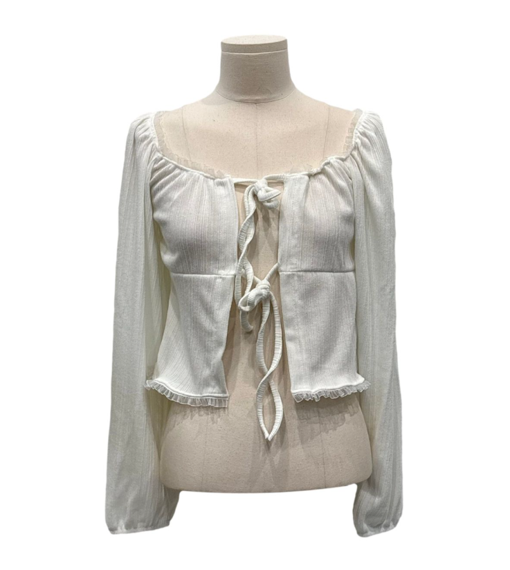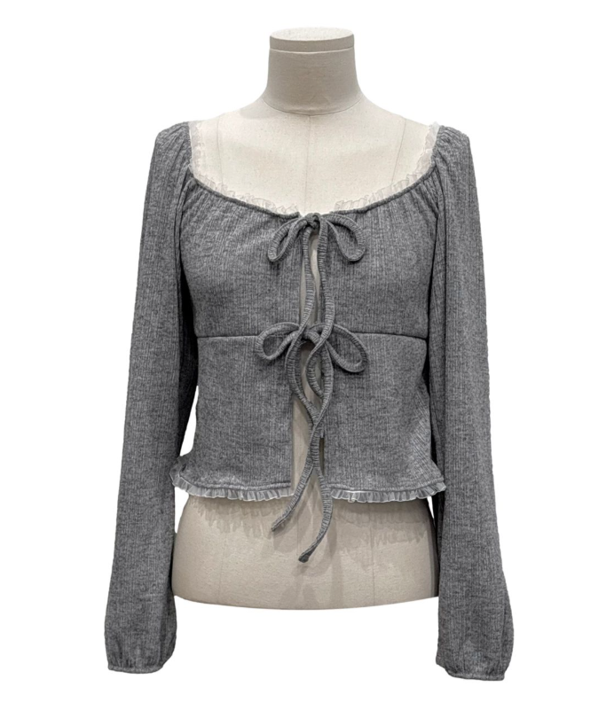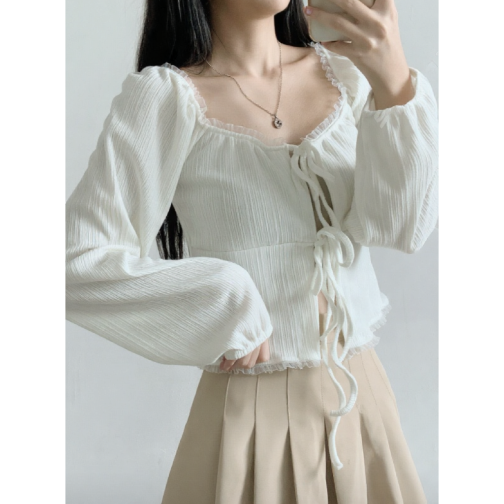 (•‾⌣‾•)法式溫柔感綁帶外套💕蕾絲花邊點綴更顯精緻❤️魅力值瞬間拉滿