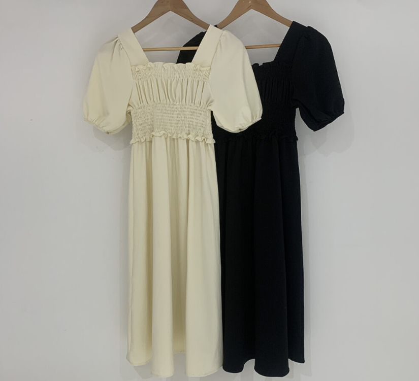 肩寬:27cm 胸圍:62cm~(有彈性) 腰圍:54cm~(橡筋腰) 袖長:29cm 全長:104cm