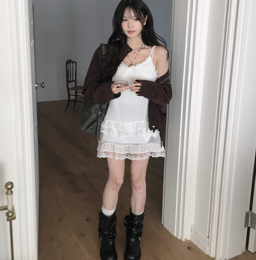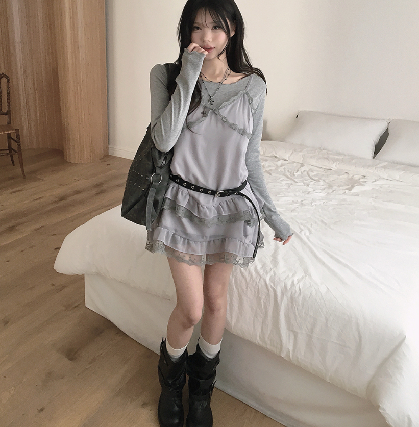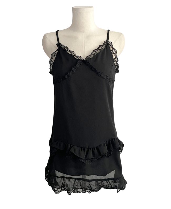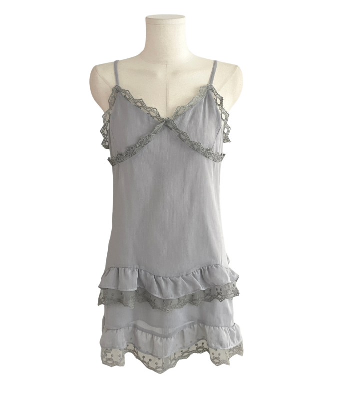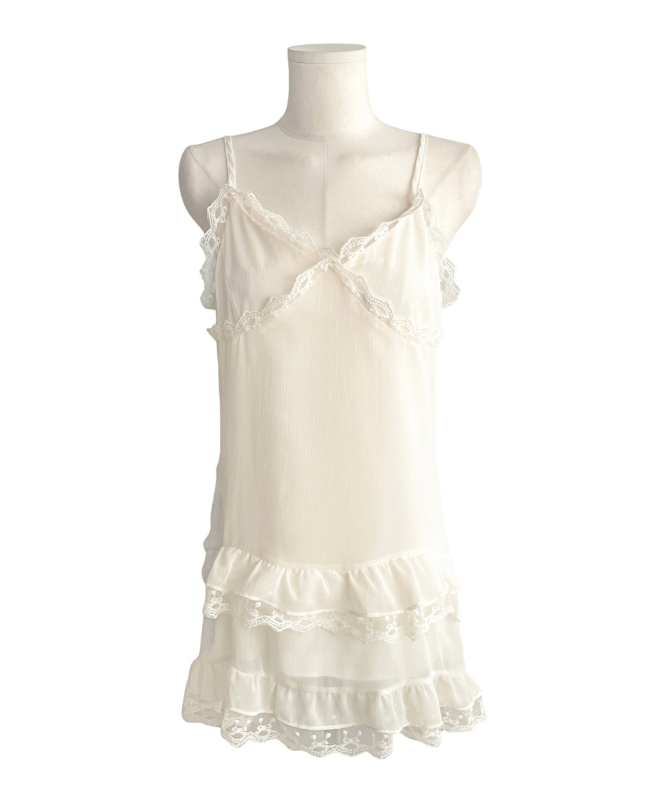 (•‾⌣‾•)呢款夢幻蕾絲點綴V領與裙擺💕飄逸既層疊設計仙氣十足❤️完美融合甜美與微性感