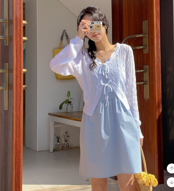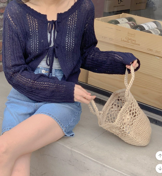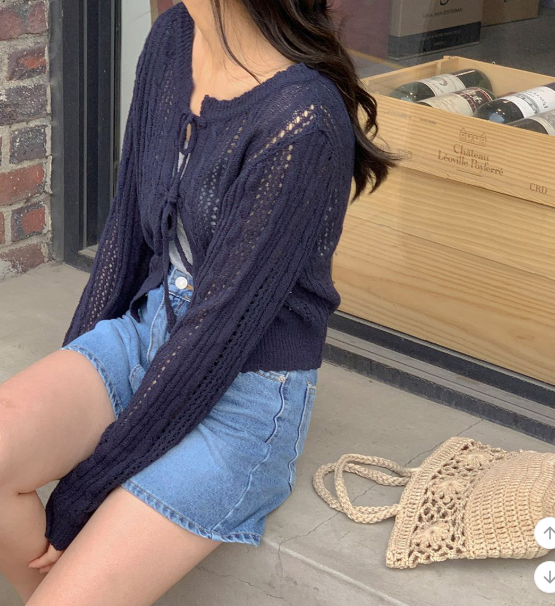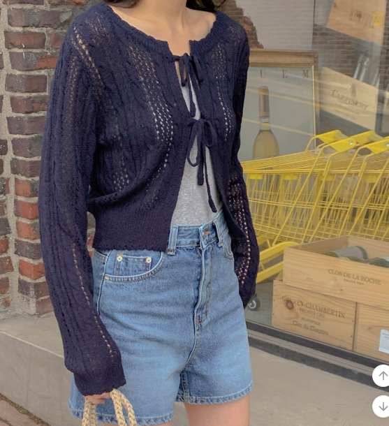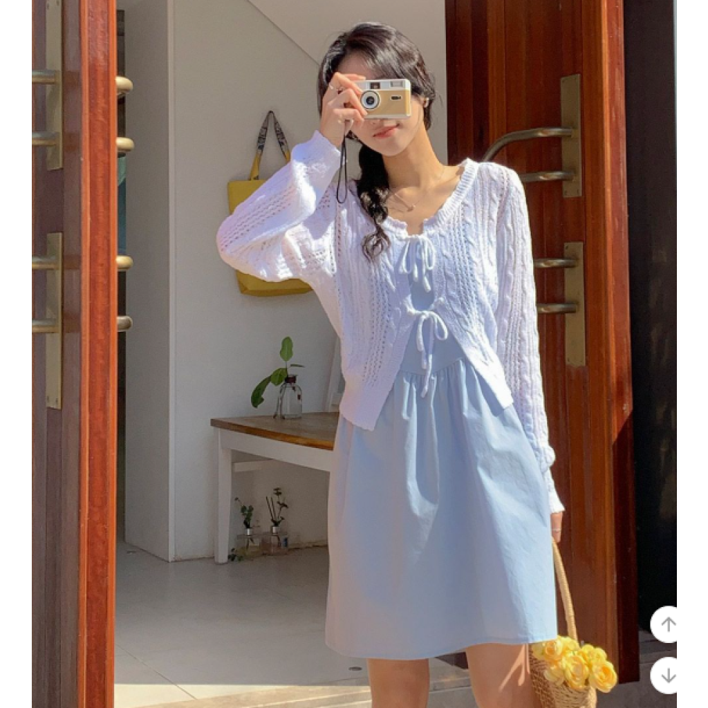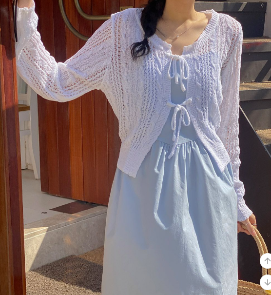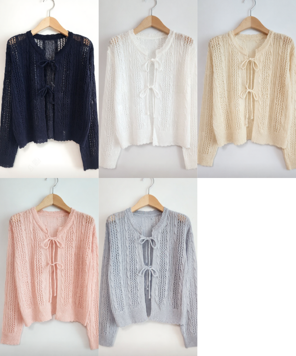 (•‾⌣‾•)一著顯白氣質糖果色針織外套💕鏤空設計自帶慵懶氛圍❤️胸前綁帶隨性又帶點小性感