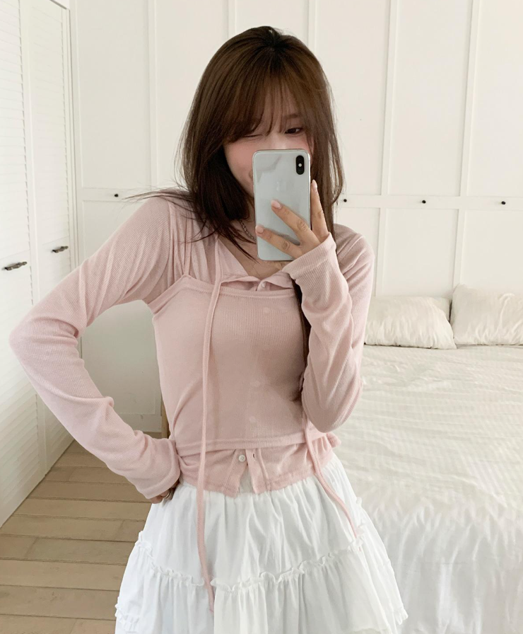 (•‾⌣‾•)溫柔感滿分兩件式套裝❤️獨特的綁帶設計💕甜美中帶點小心機