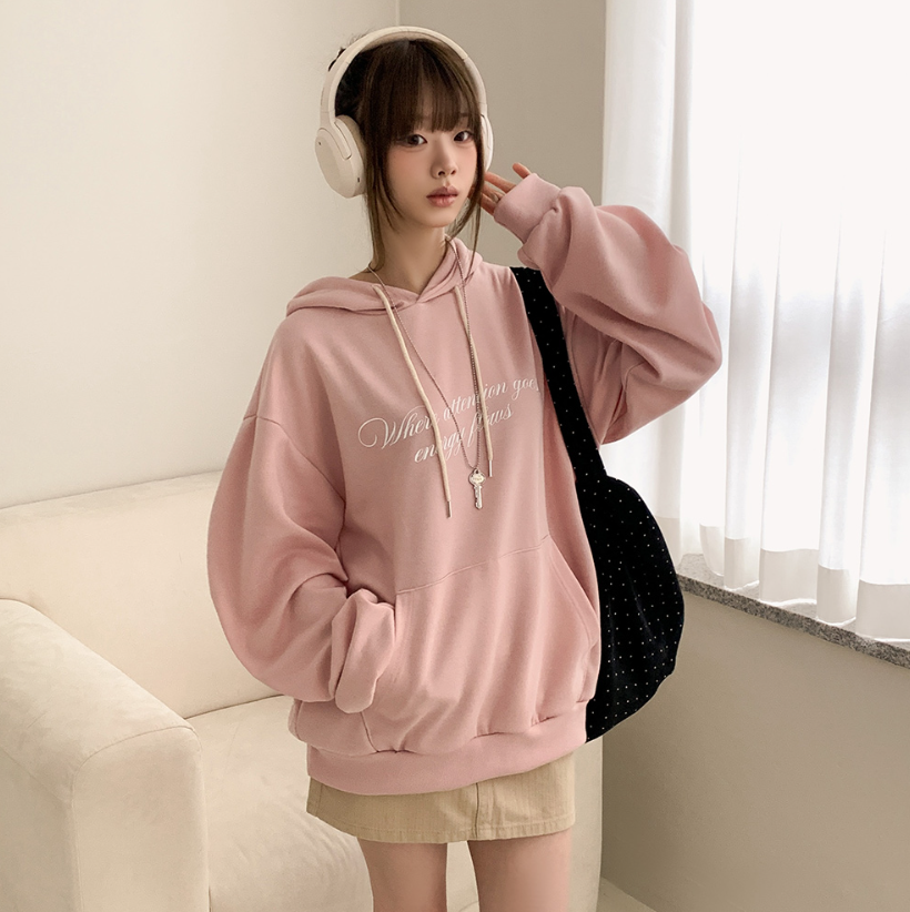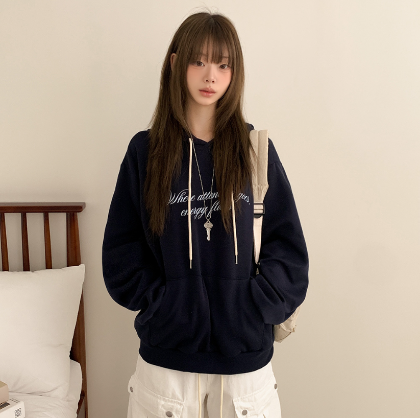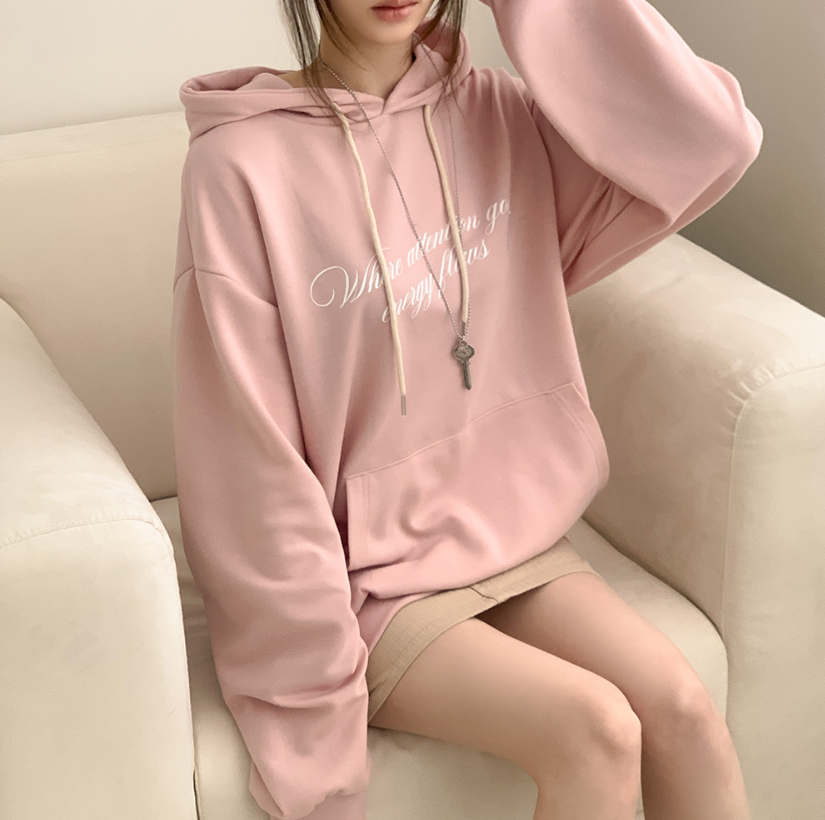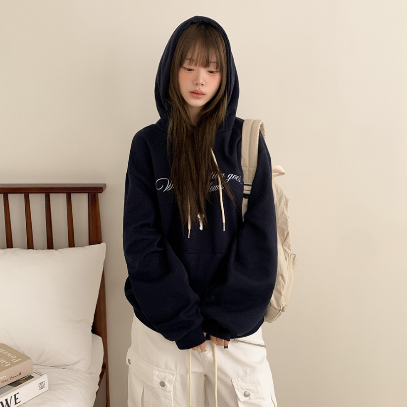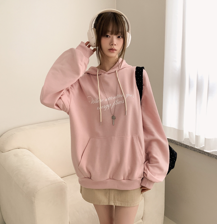(•‾⌣‾•)慵懶風連帽衛衣簡約百搭❤️胸前精緻草寫字母點綴💕