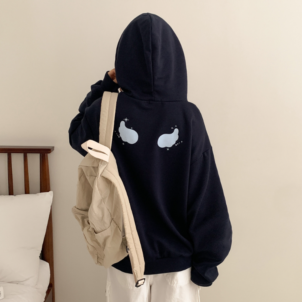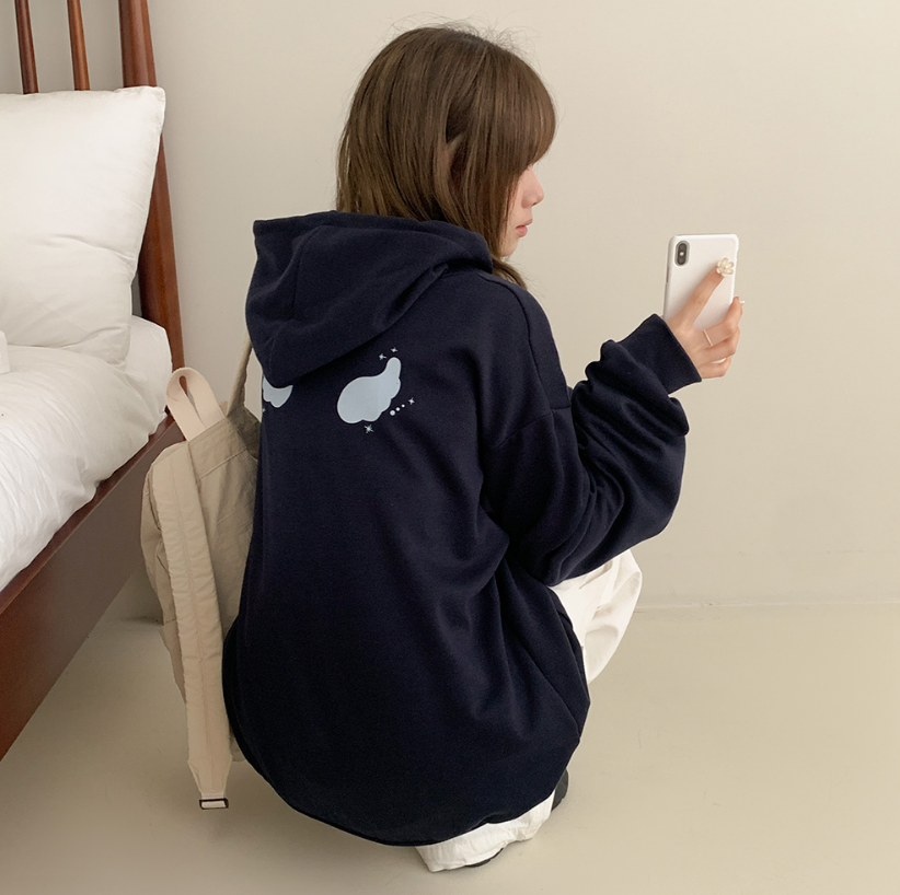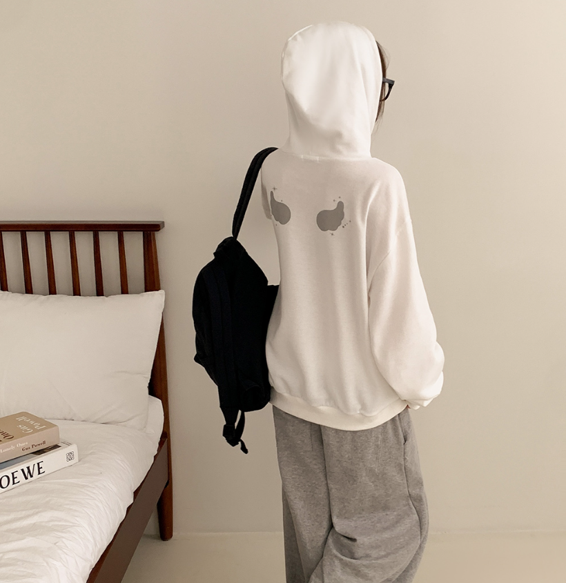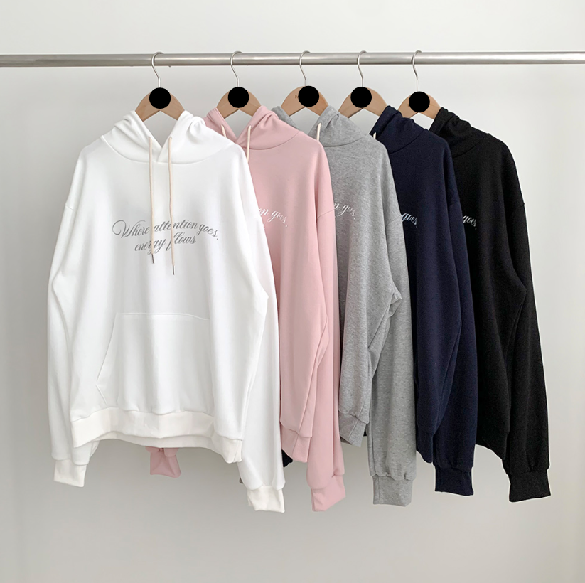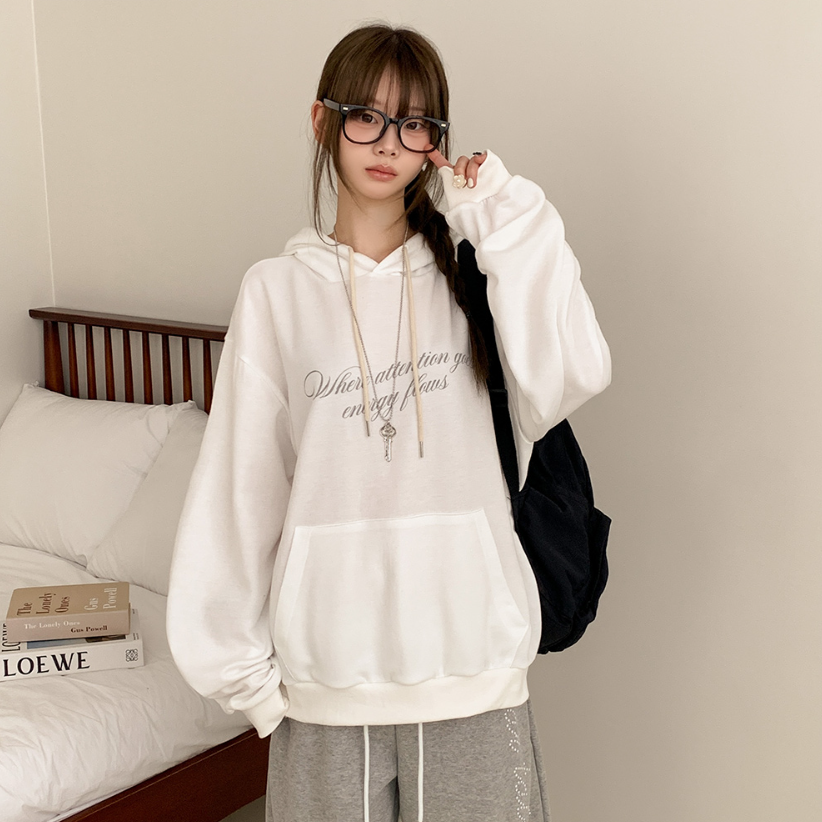 (•‾⌣‾•)慵懶風連帽衛衣簡約百搭❤️胸前精緻草寫字母點綴💕