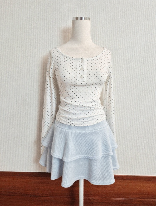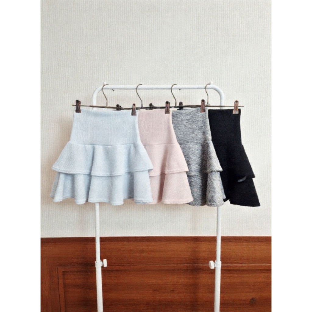 (•‾⌣‾•)高腰雙層荷葉邊短裙❤️A字版型完美修飾身形💕輕鬆穿出甜美溫柔的氣質
