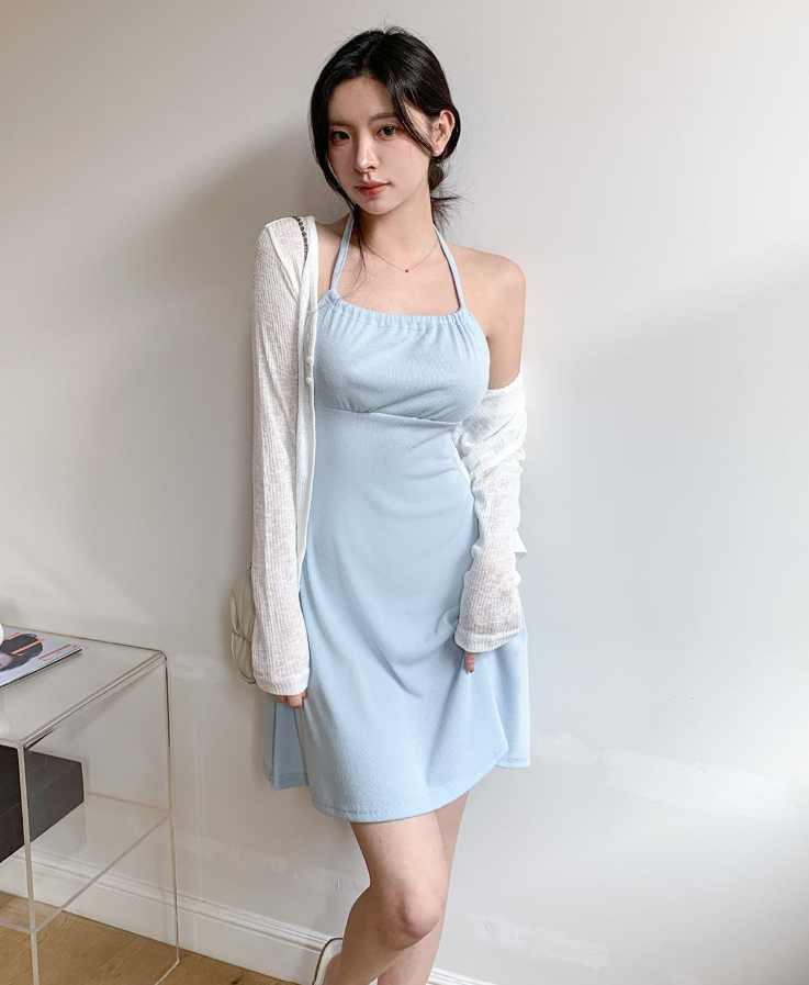 (•‾⌣‾•)夏日氣質首選💕簡約掛頸設計優雅展現迷人肩頸線條❤️