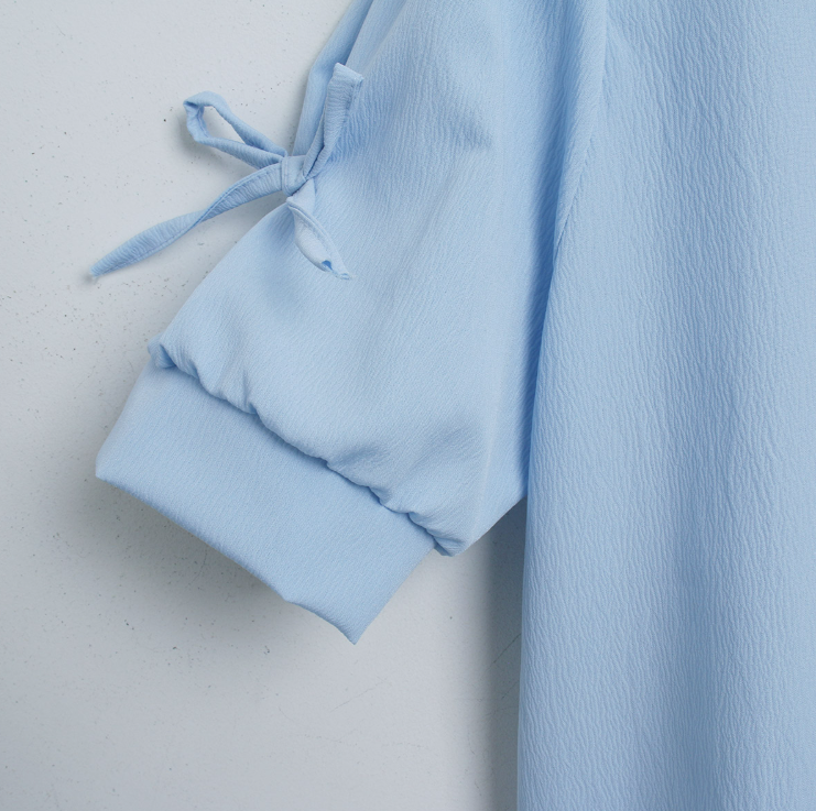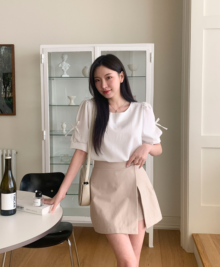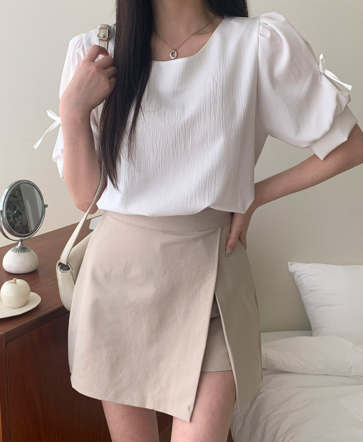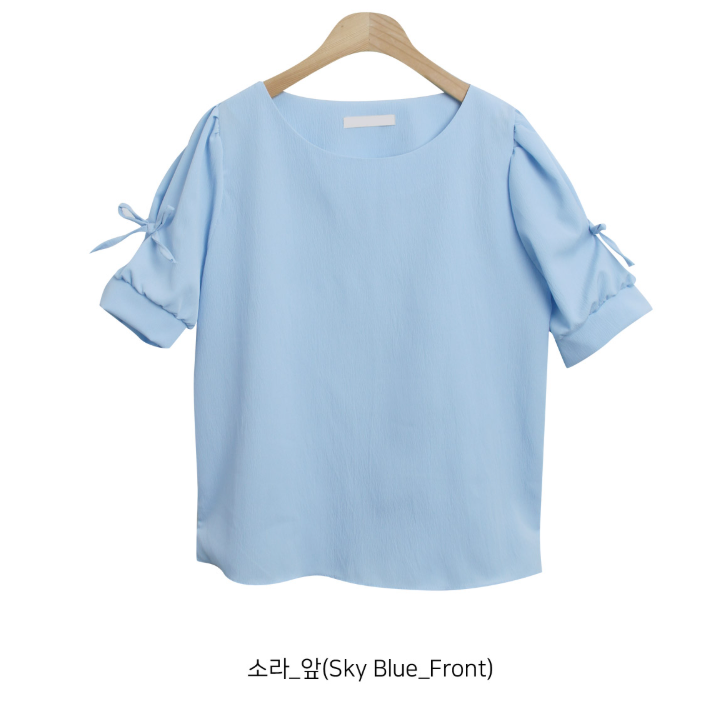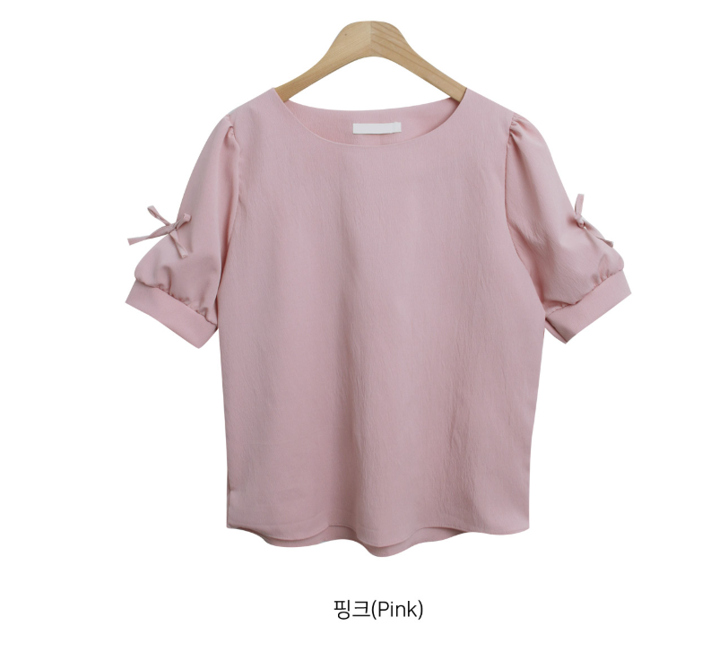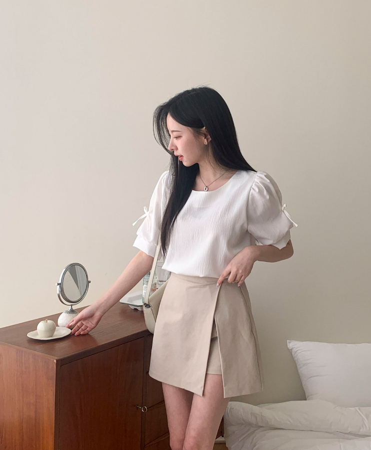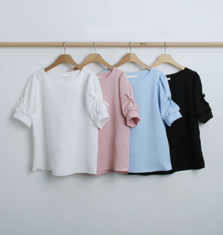 方領泡泡袖蝴蝶結上衣【4色入】