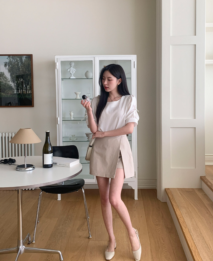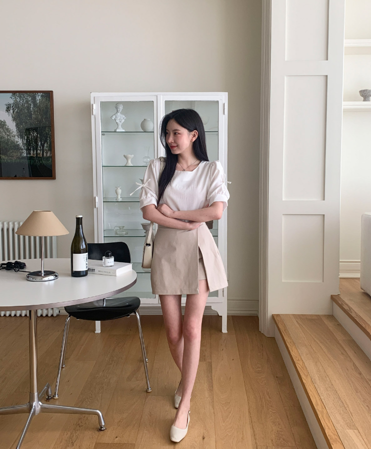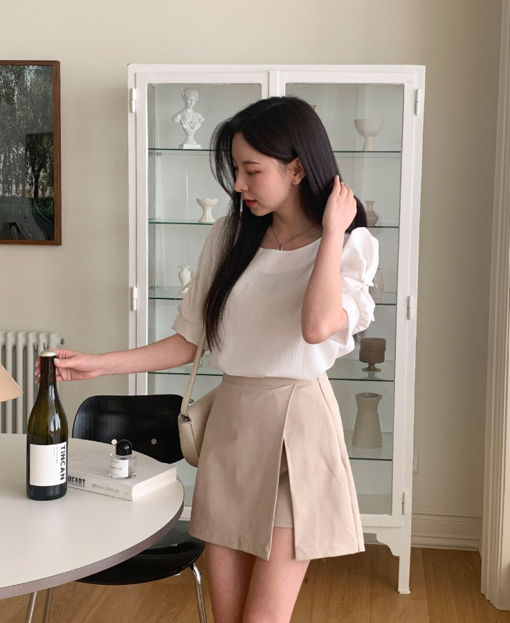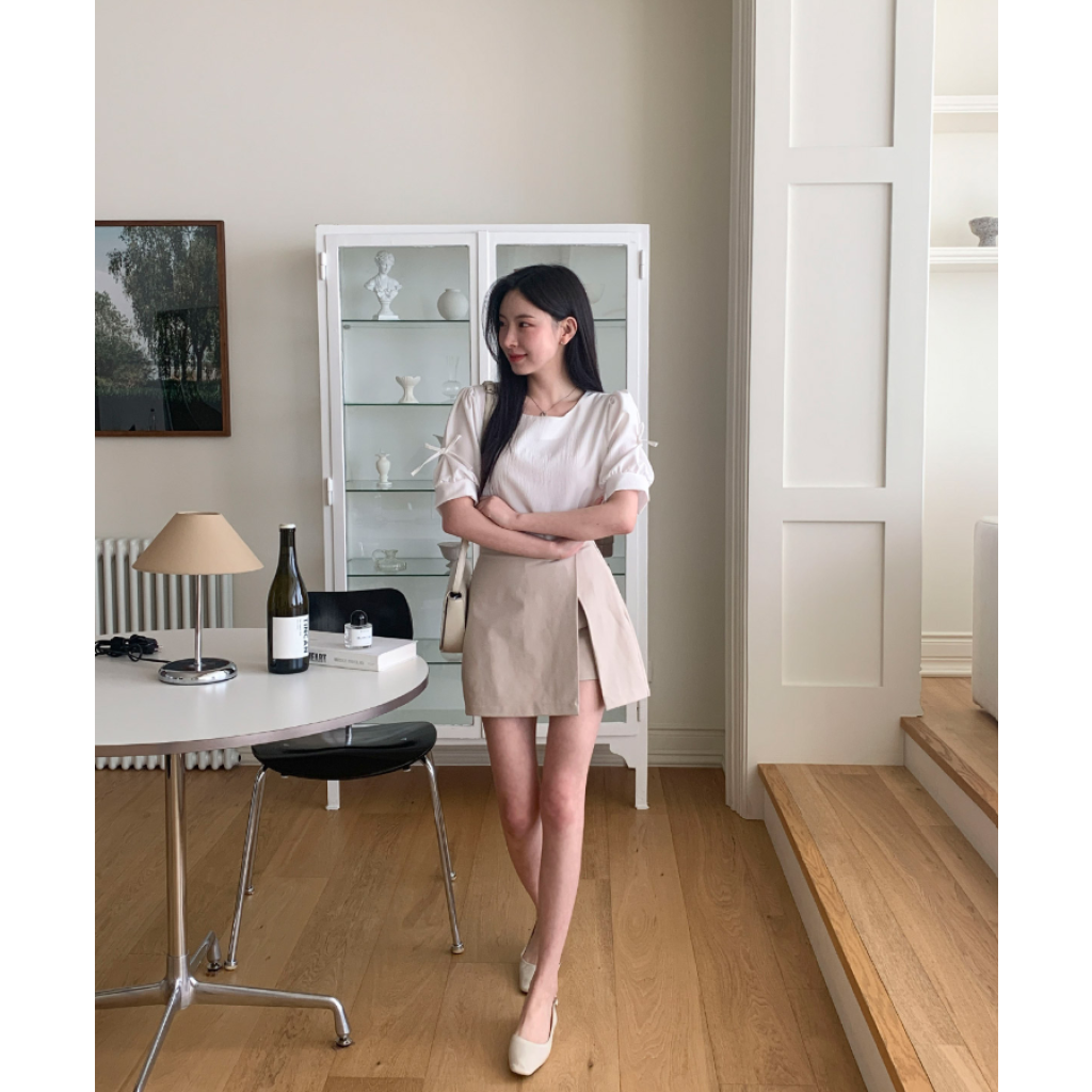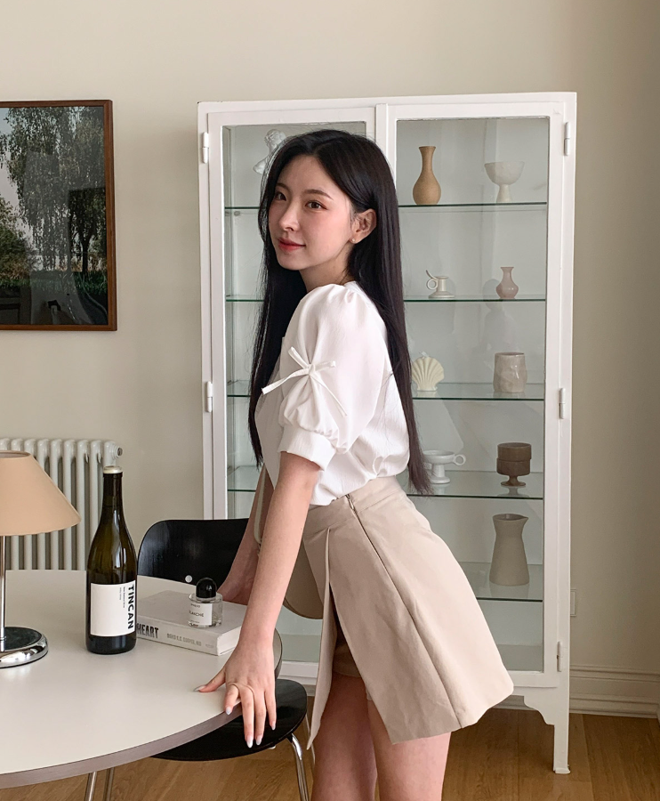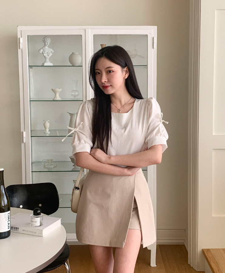 方領泡泡袖蝴蝶結上衣【4色入】