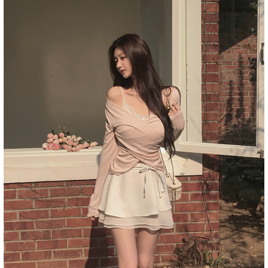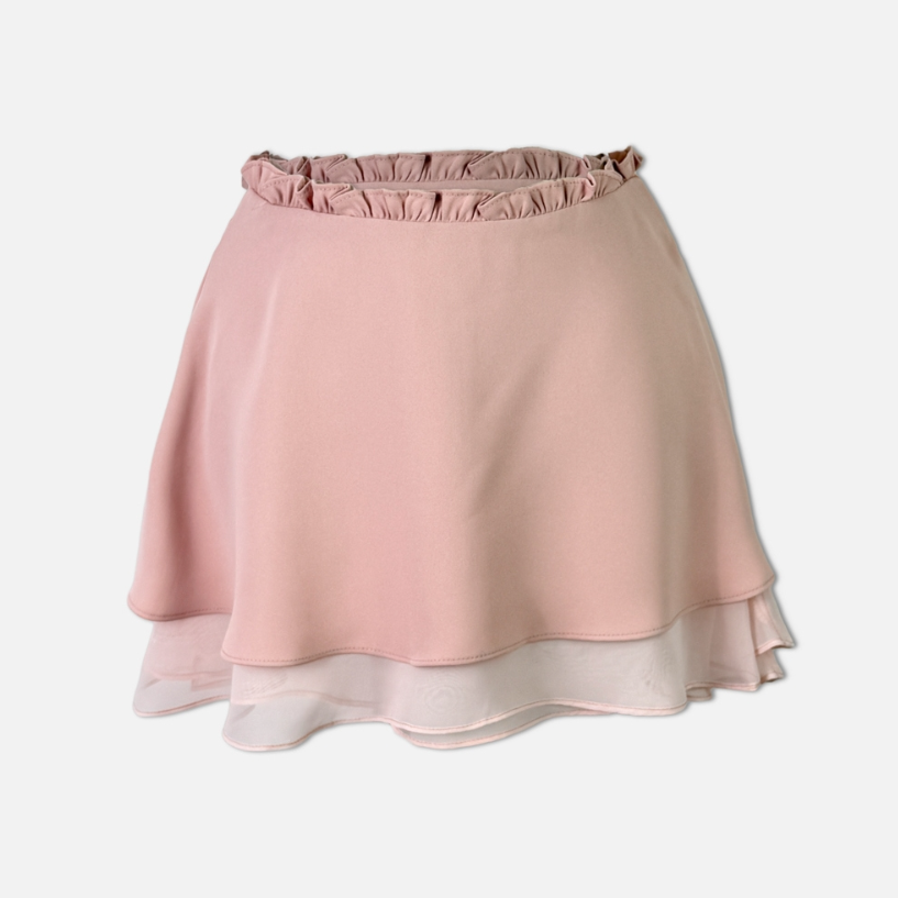 (•‾⌣‾•)高腰設計勾勒迷人腰線💕雙層荷葉邊裙襬❤️輕盈飄逸完美修飾身形