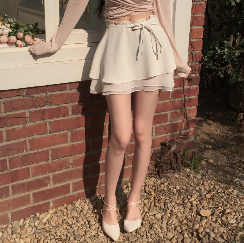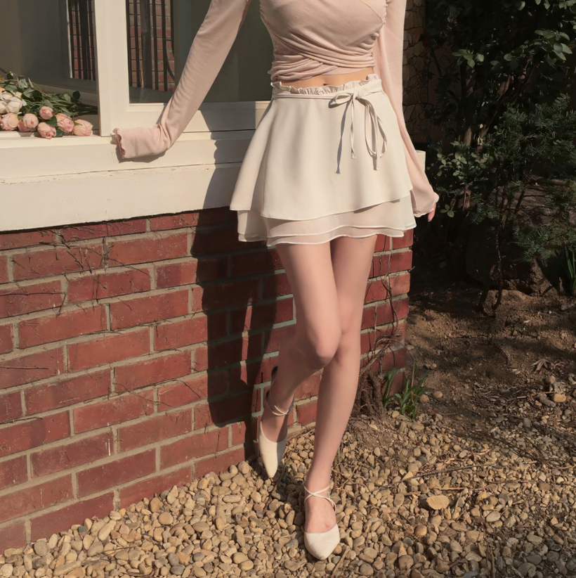 多層荷葉邊雪紡綁帶半身裙【3色入】