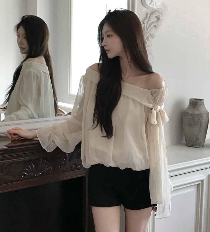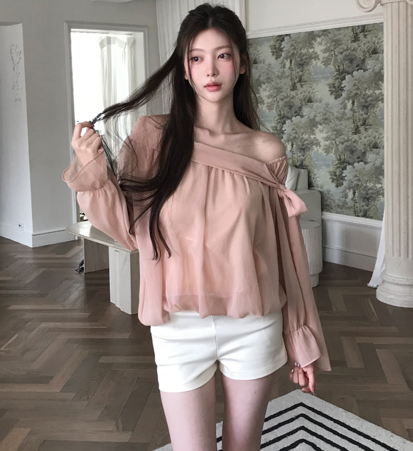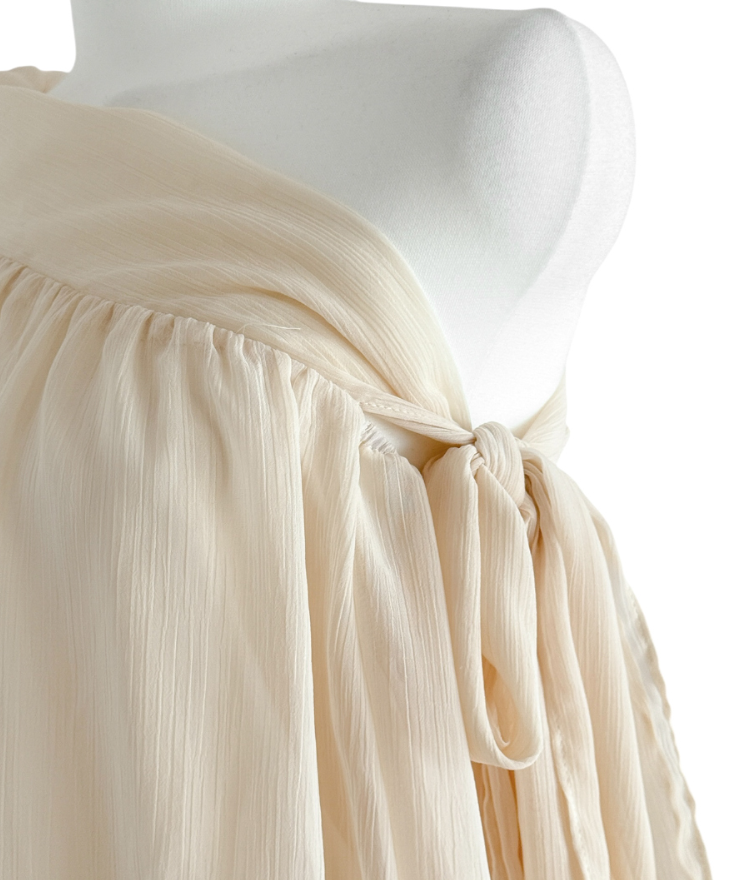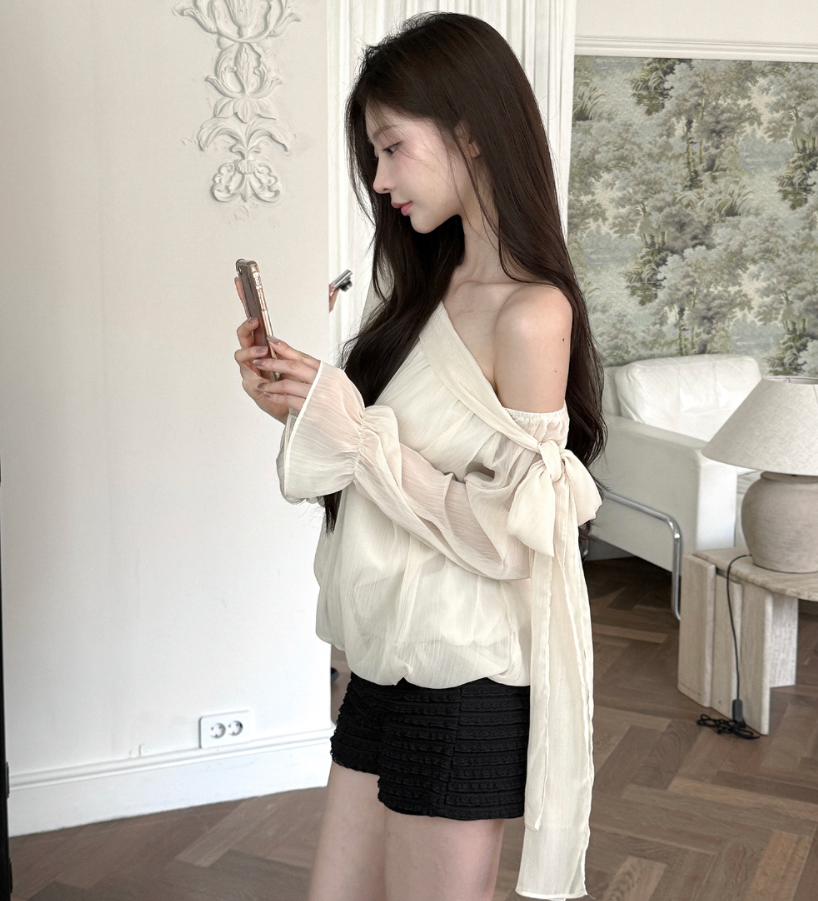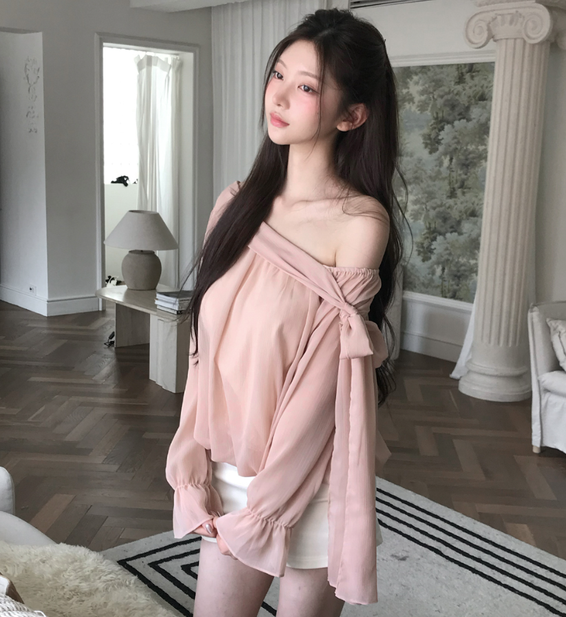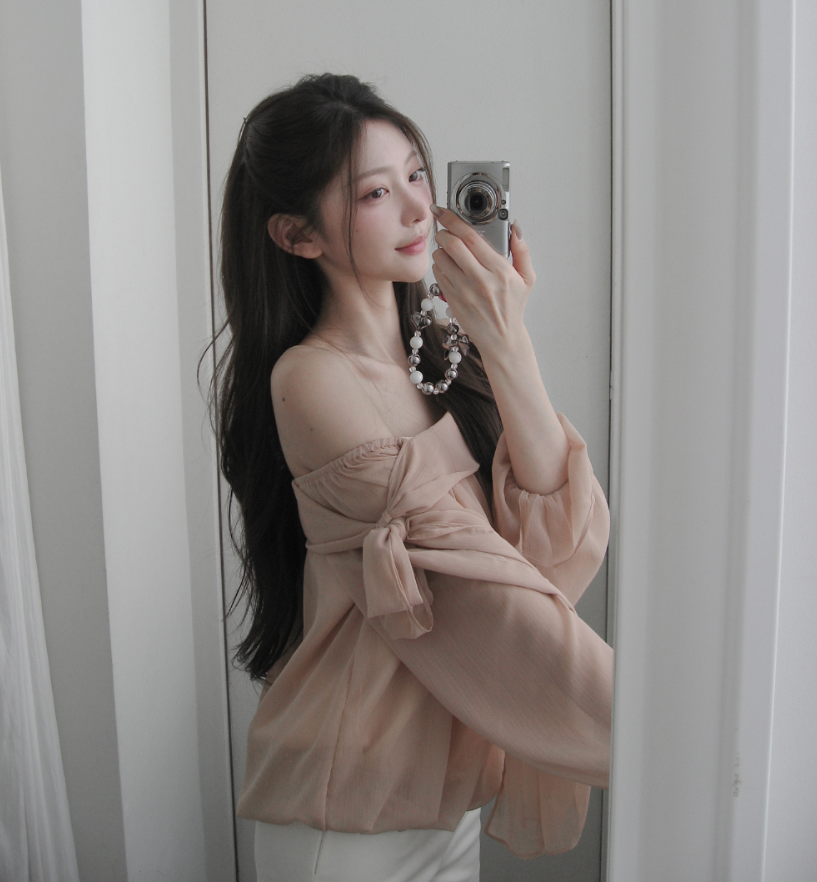 (•‾⌣‾•)露肩設計配上肩部綁帶仙氣十足💕完美襯托溫柔氣質❤️約會必備浪漫單品