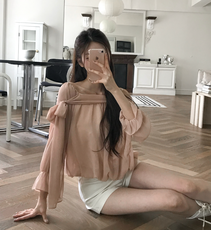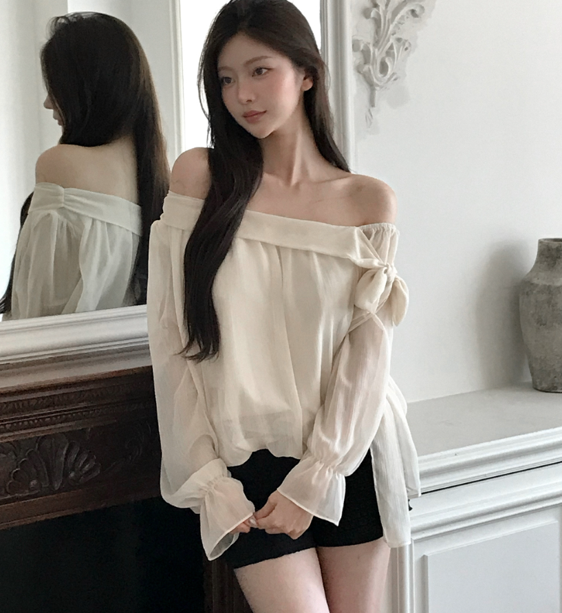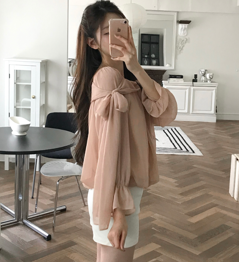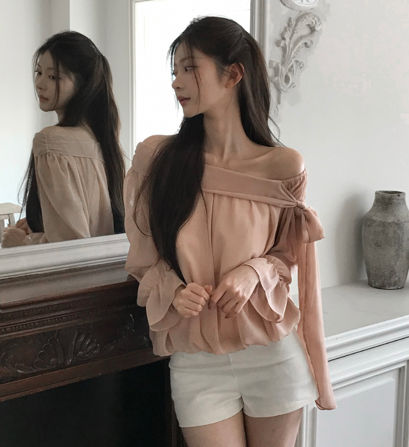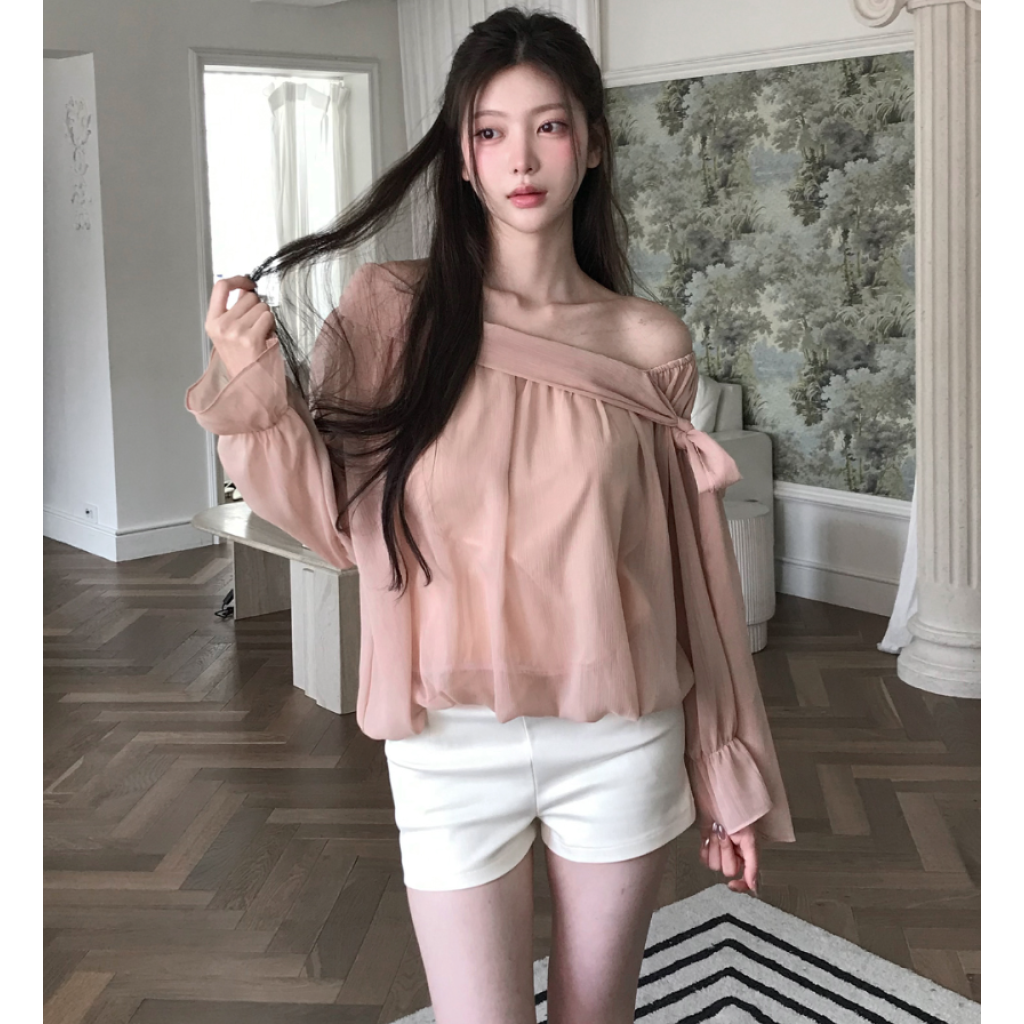 (•‾⌣‾•)露肩設計配上肩部綁帶仙氣十足💕完美襯托溫柔氣質❤️約會必備浪漫單品