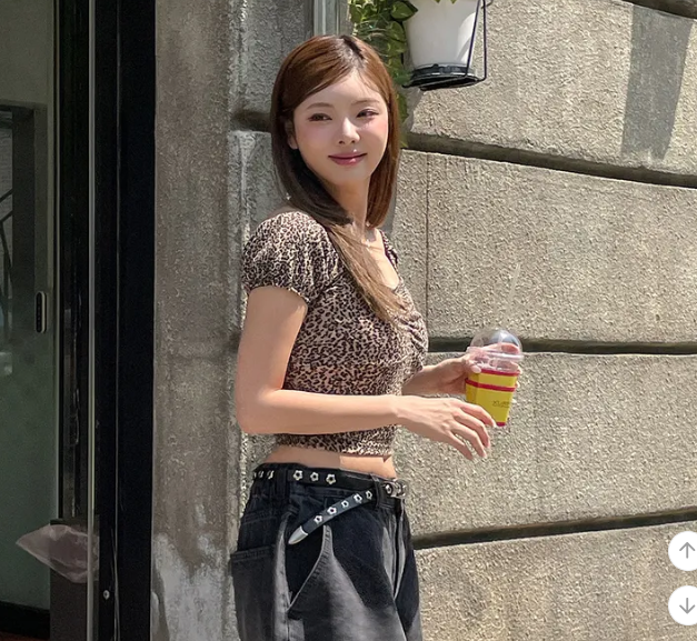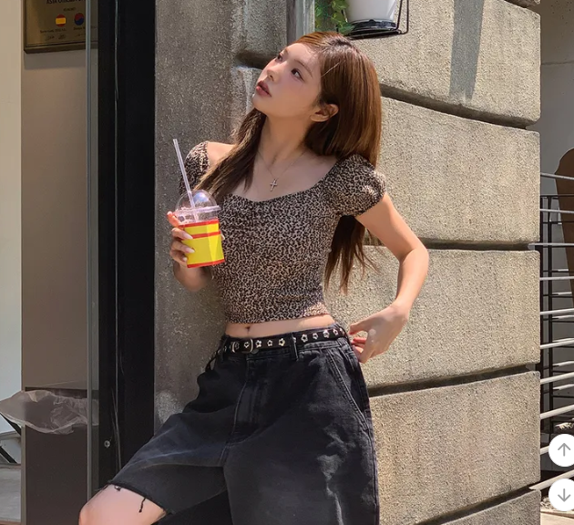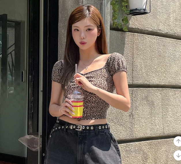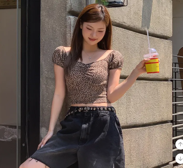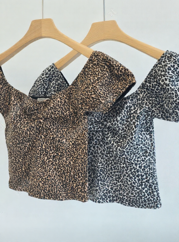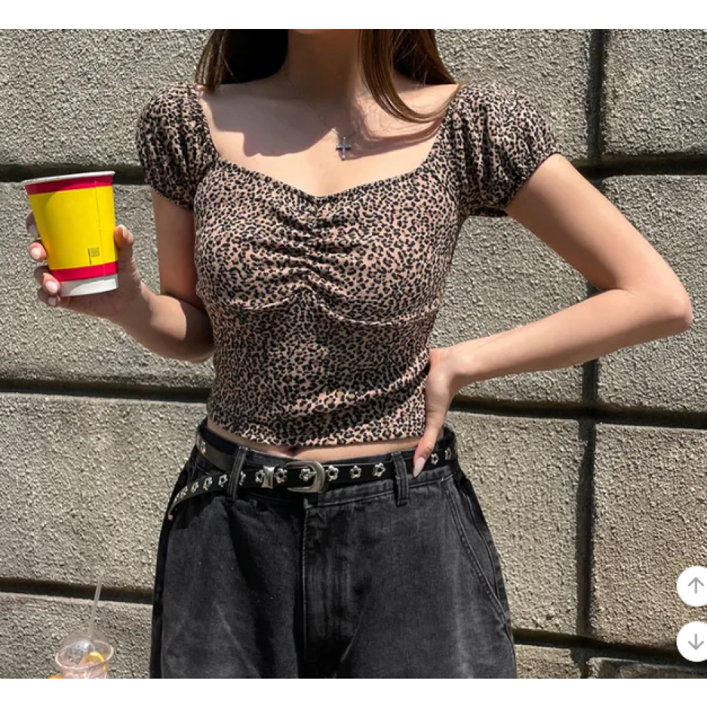 (•‾⌣‾•)復古豹紋泡泡袖上衣💕方領搭配胸前褶皺完美修飾身形❣️