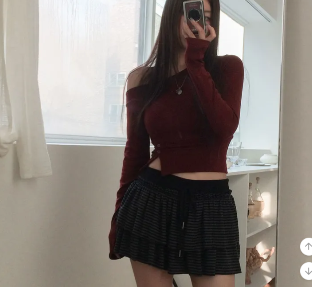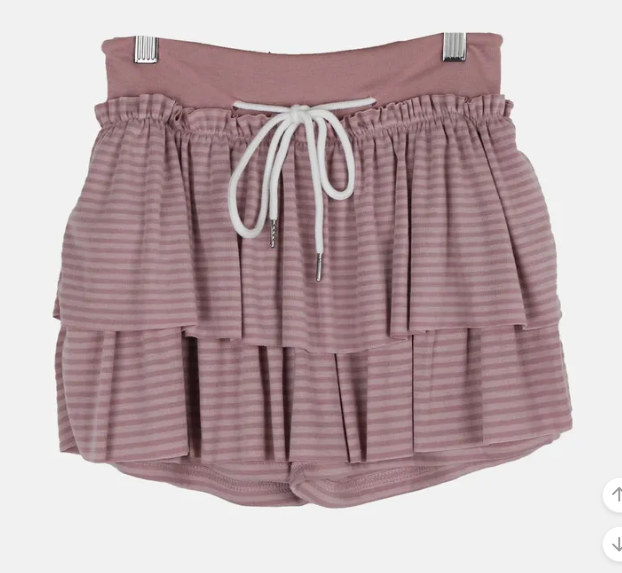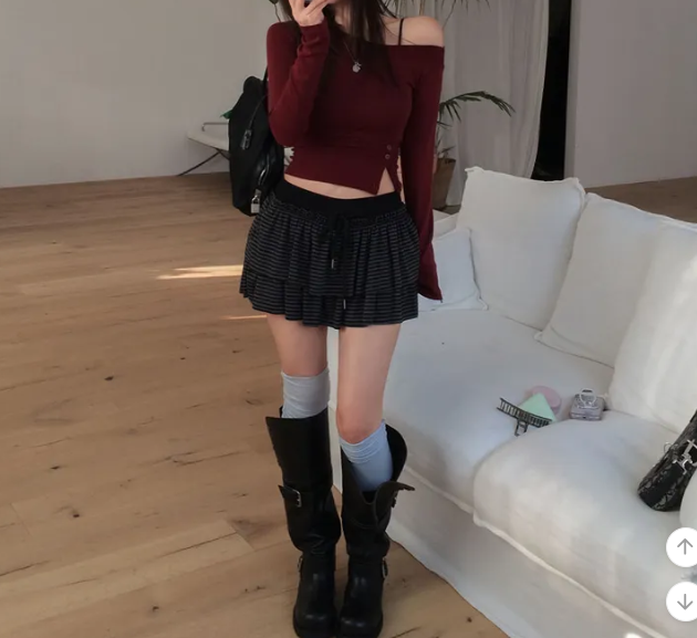 (•‾⌣‾•)條紋蛋糕裙橡筋腰不挑身材❤️雙層裙擺設計顯腿長💕