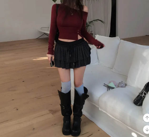柔軟條紋層疊裙褲【3色入】