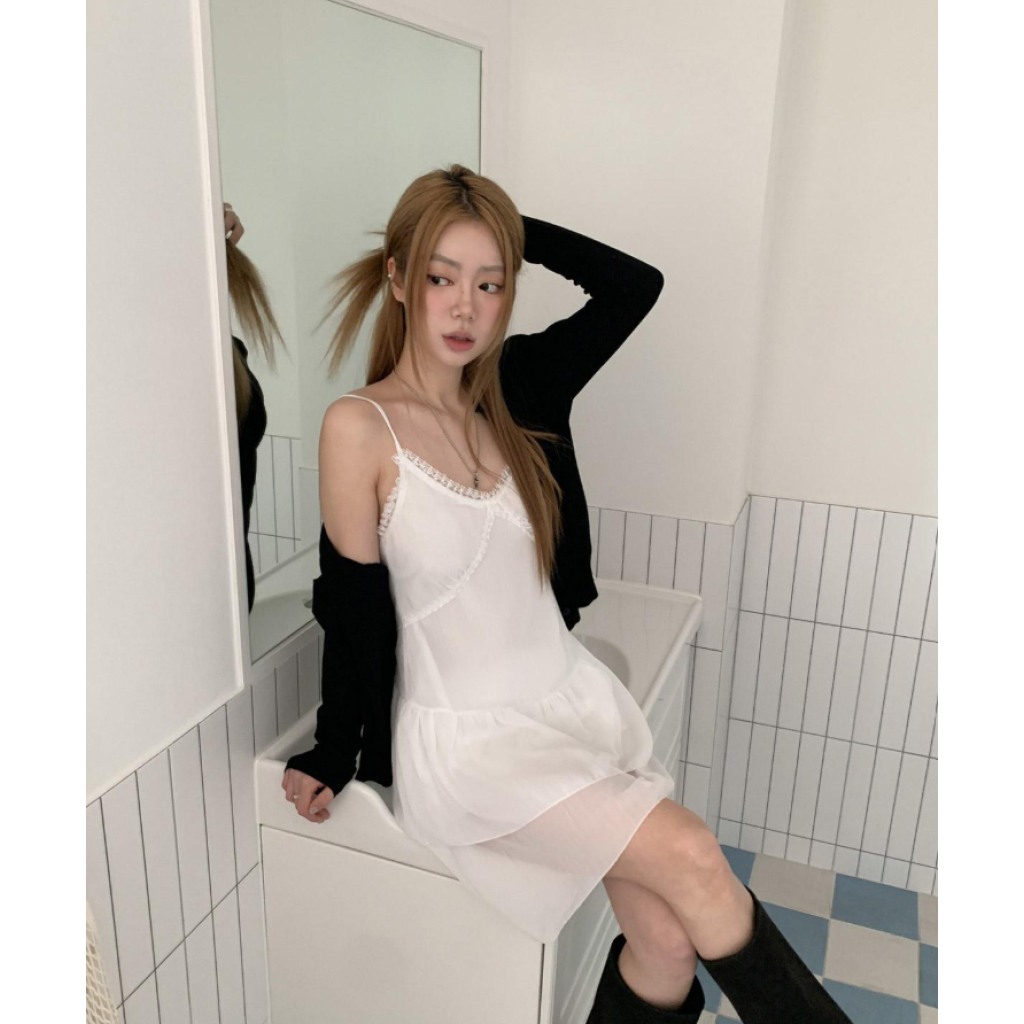 (•‾⌣‾•)蕾絲V領點綴❤️配上飄逸層次感紗裙💕散發小性感