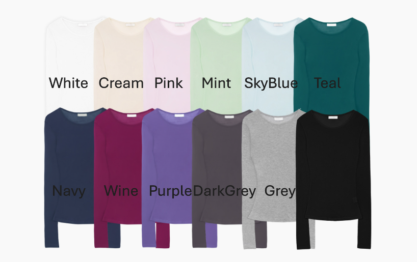 White / Grey / Dark Grey / Black / Pink / Wine / Purple / Navy / Sky Blue / Cream / Mint / Teal