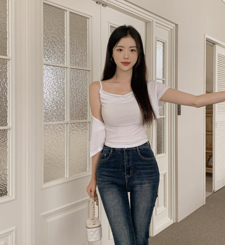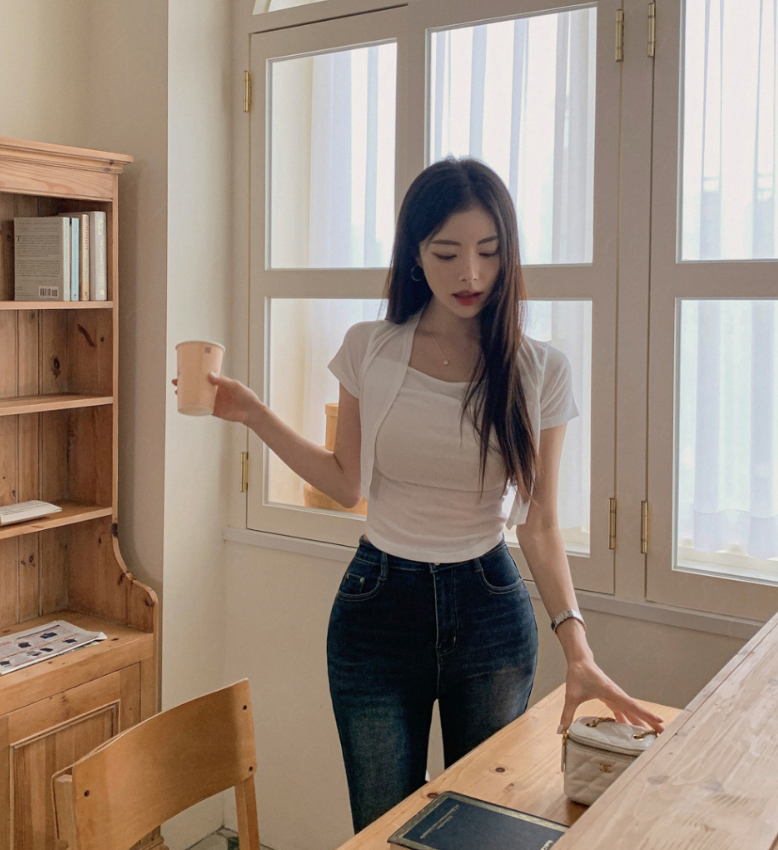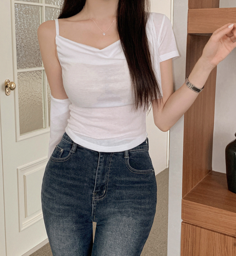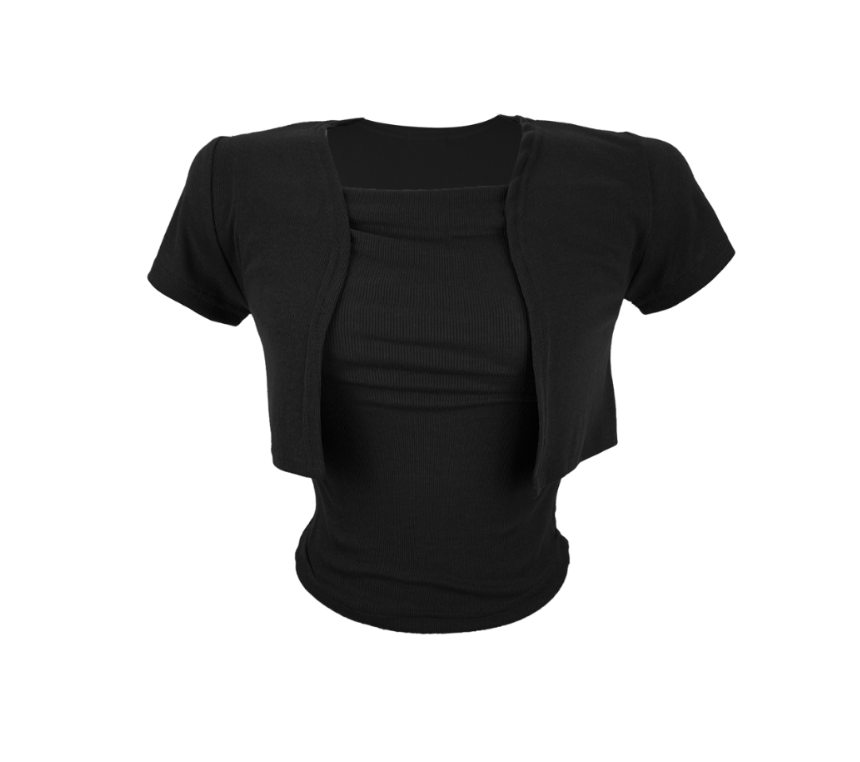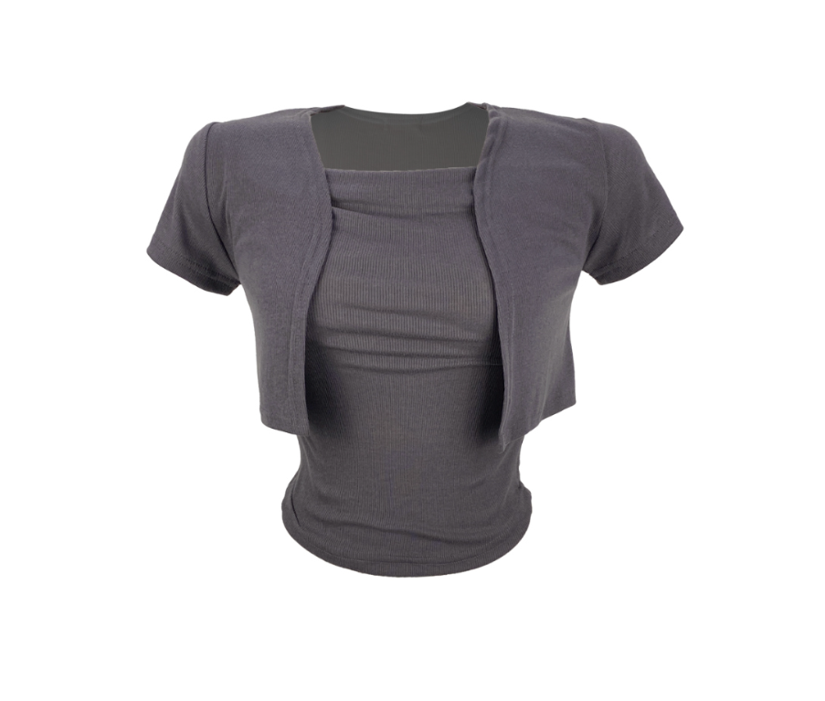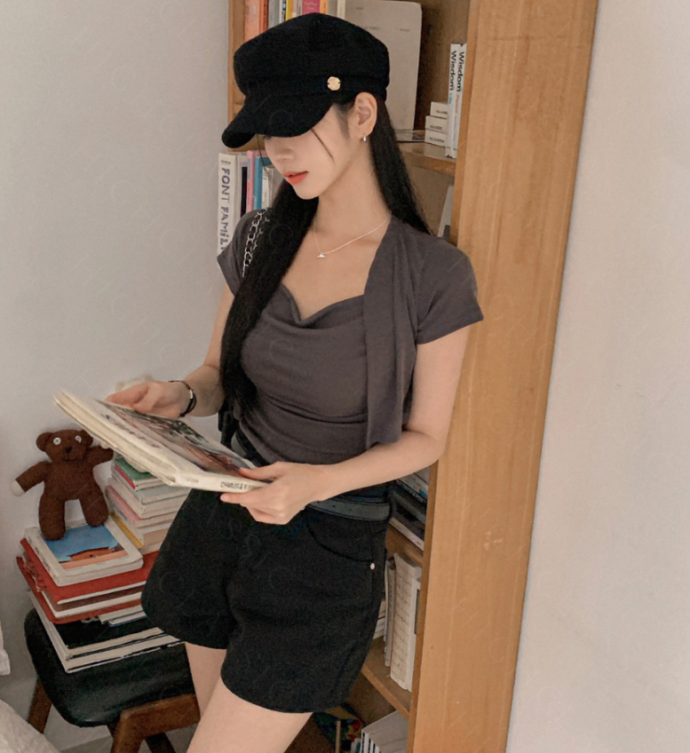 (•‾⌣‾•)溫柔知性風格❤️氣質垂墜領兩件式上衣💕短版外套疊穿出層次