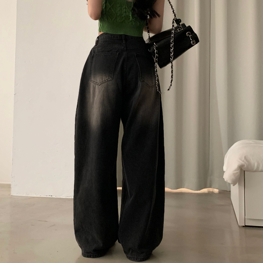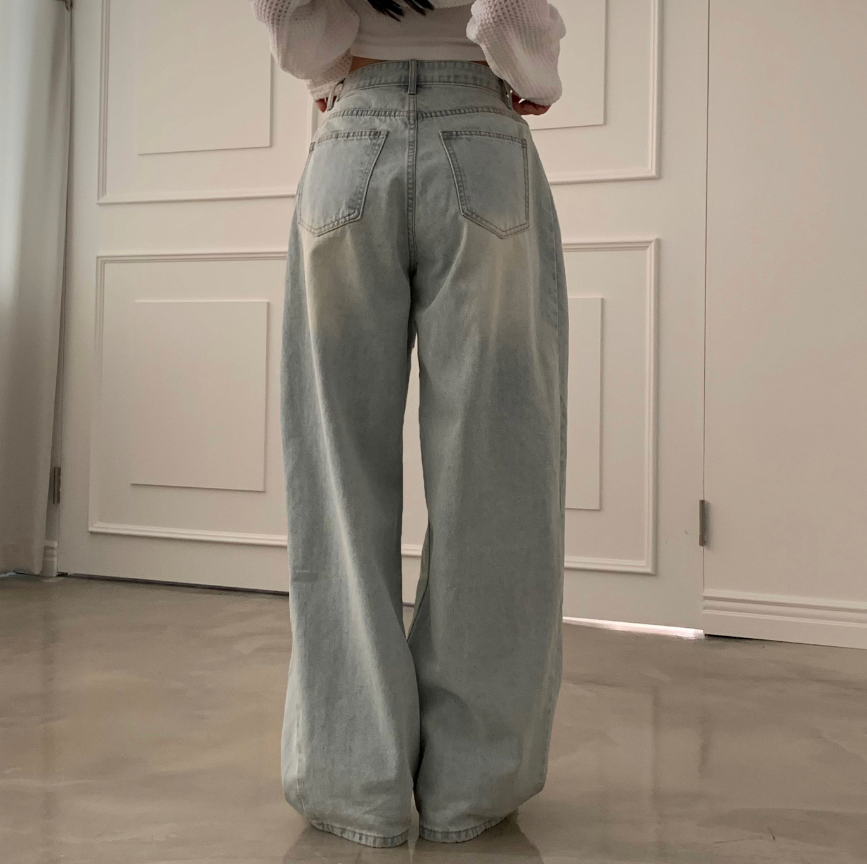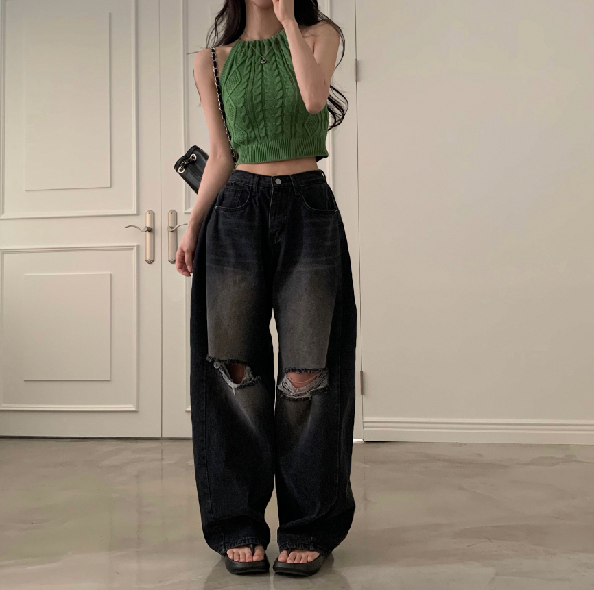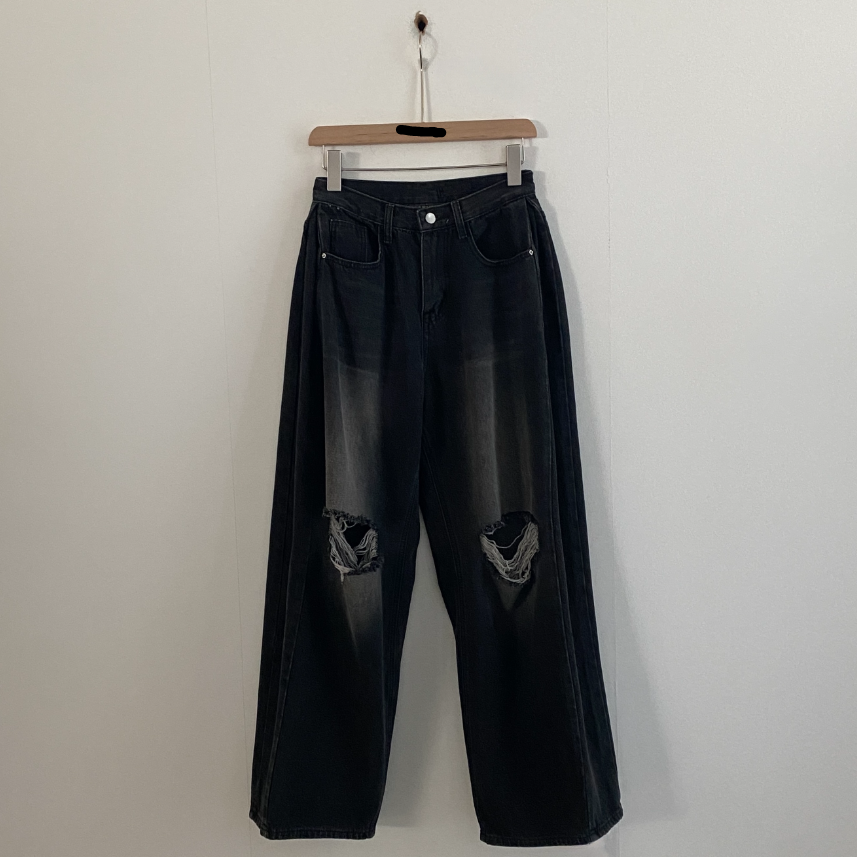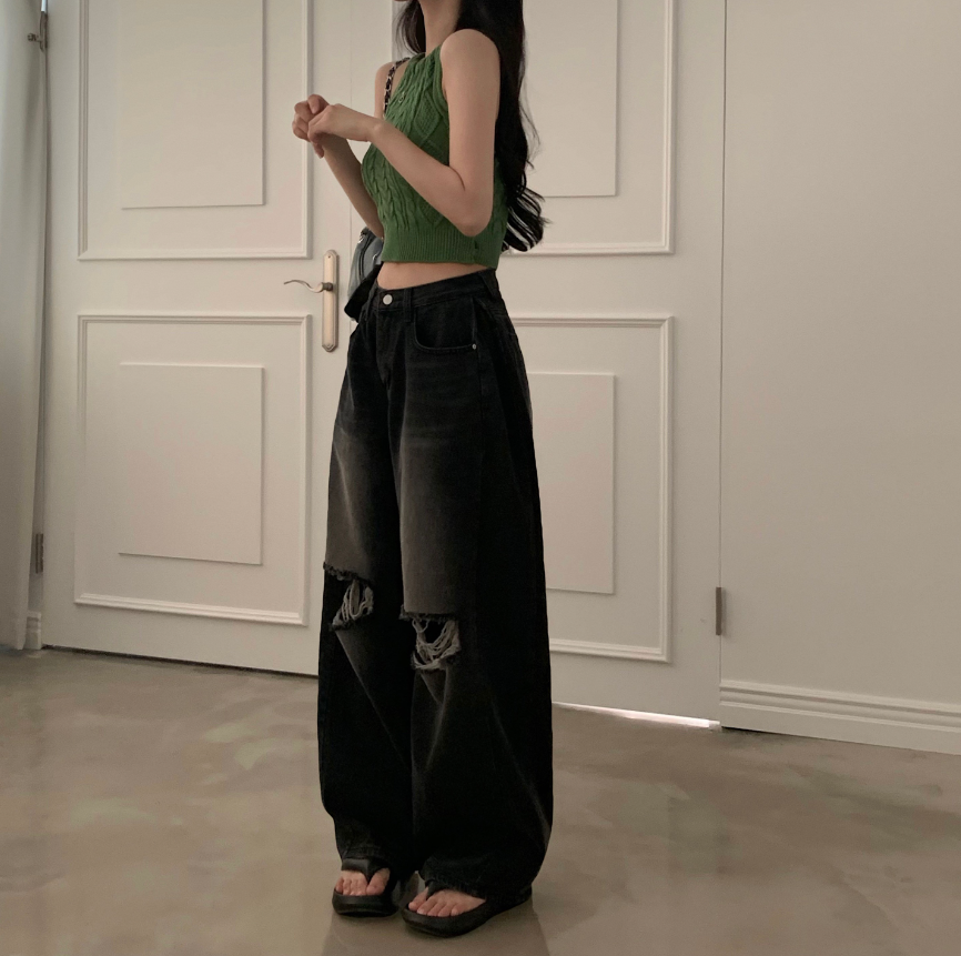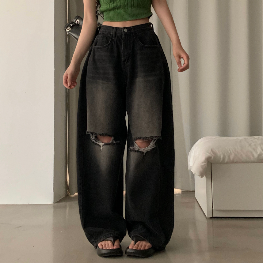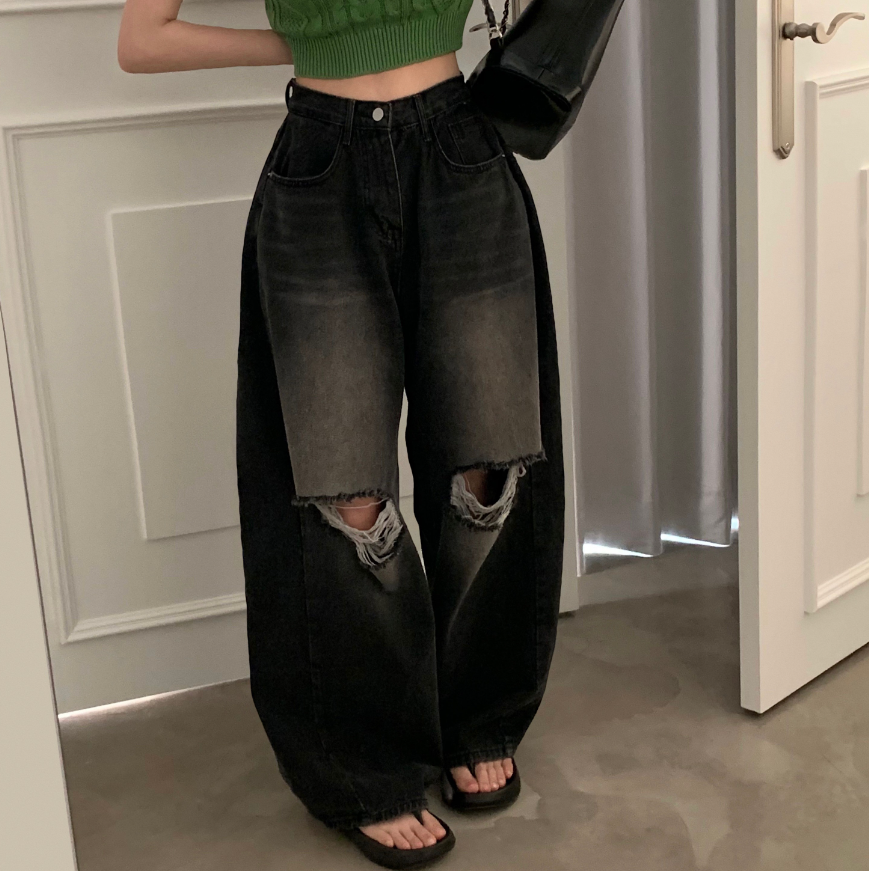 闊腿破洞牛仔褲