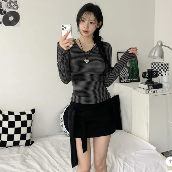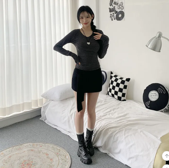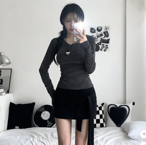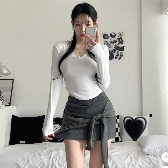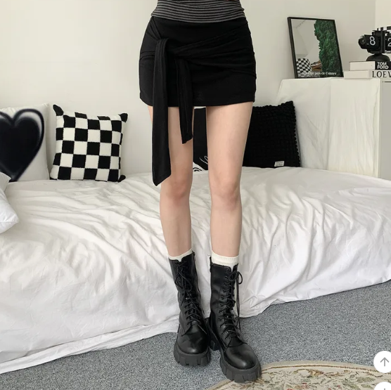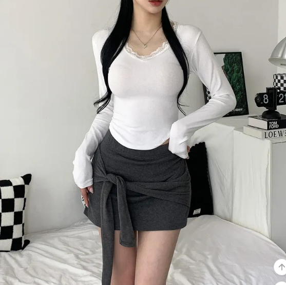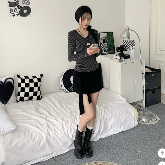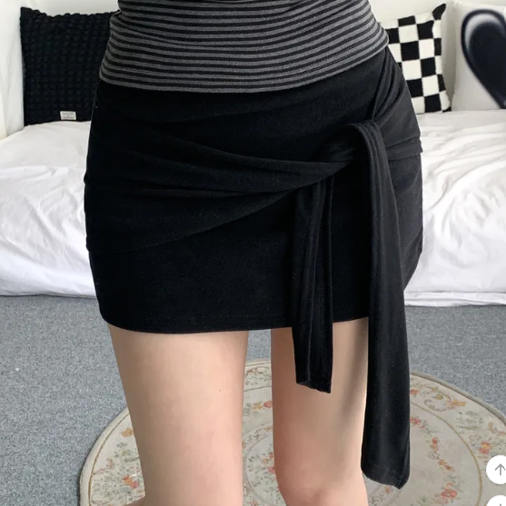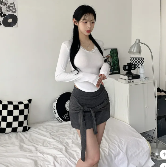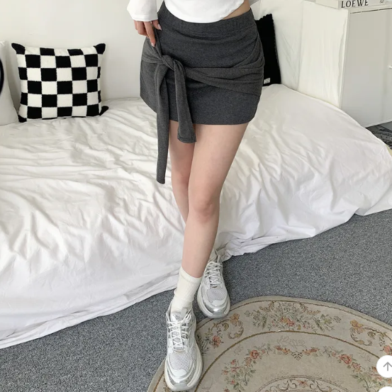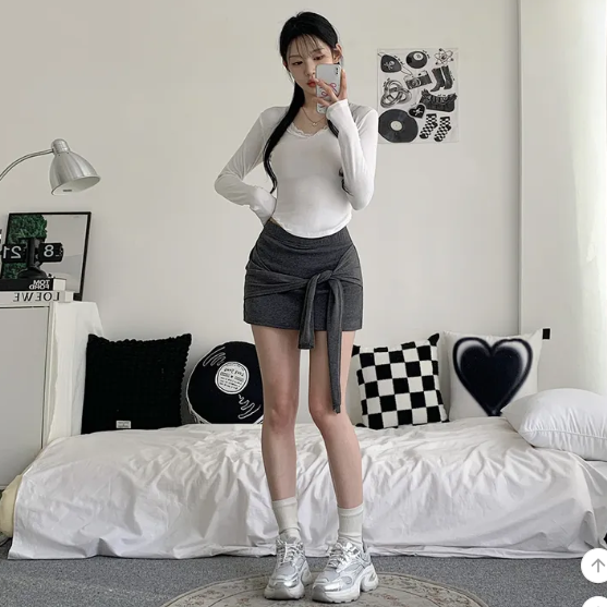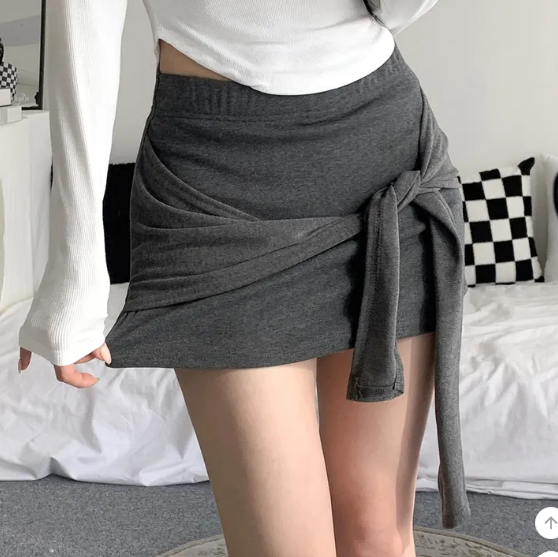 ヽ( ^ω^ ゞ )偽兩件綁帶設計❤️隨性一綁就好有型💕高腰包臀版型秒穿出大長腿