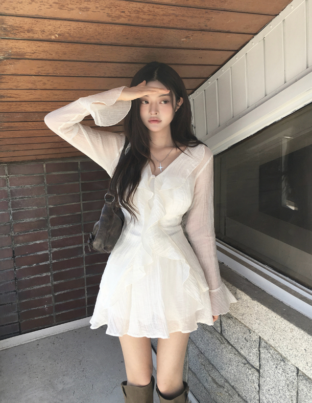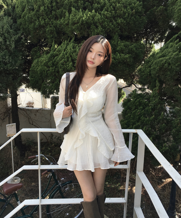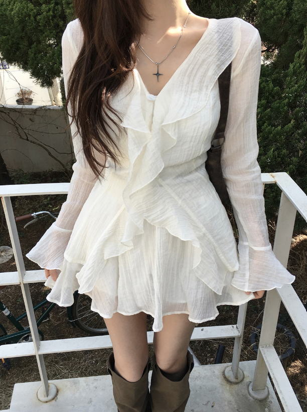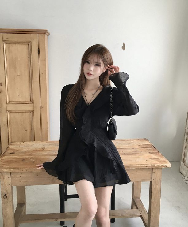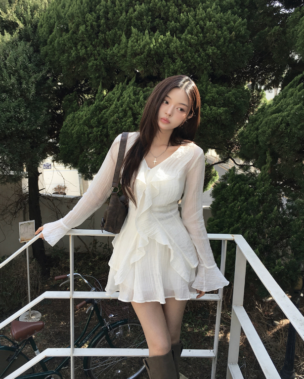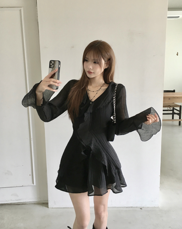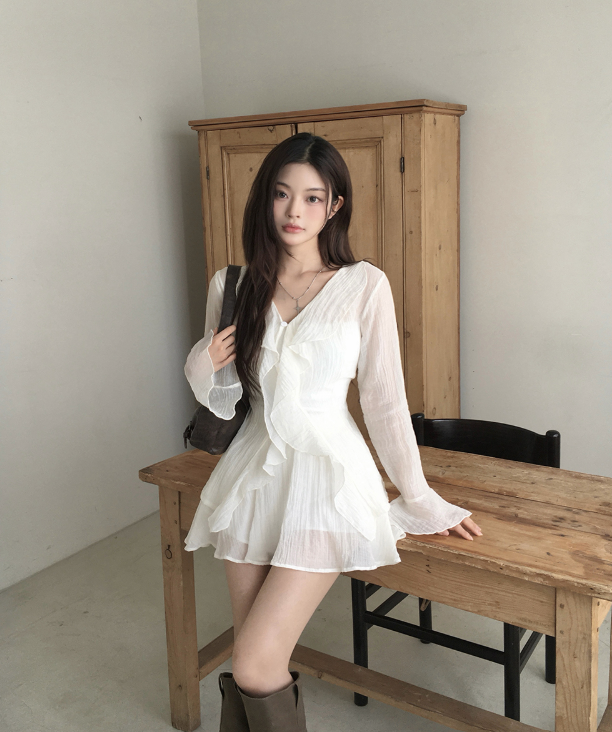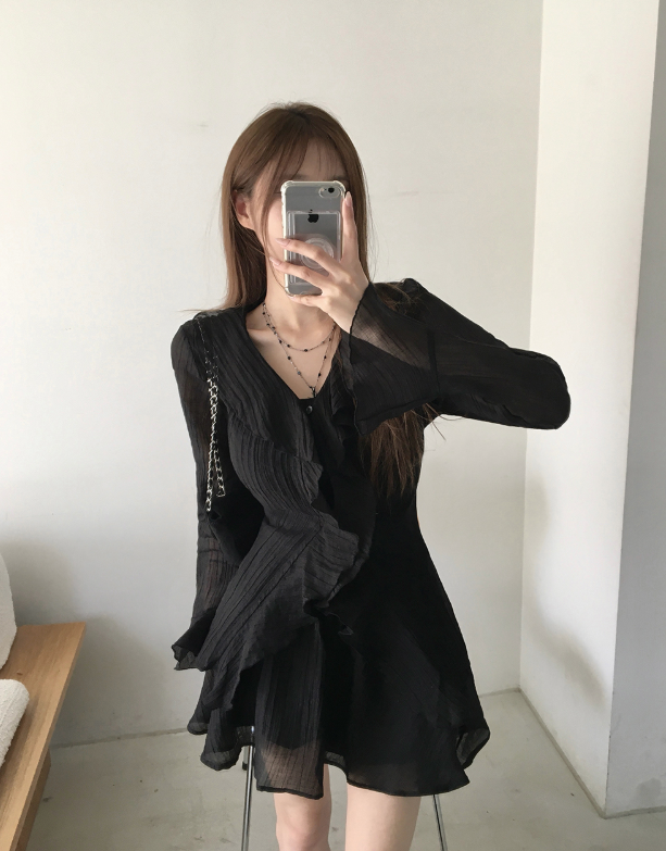 (•‾⌣‾•)荷葉邊與V領剪裁💕打造溫柔純欲風❤️