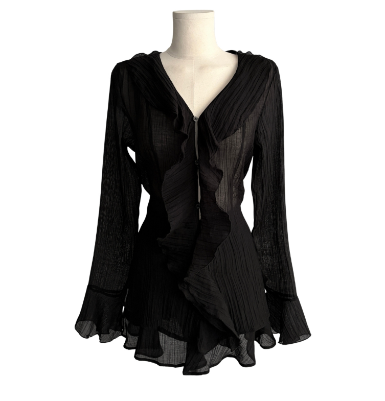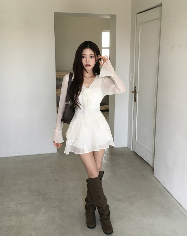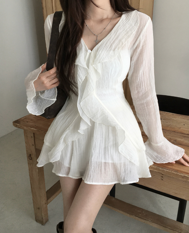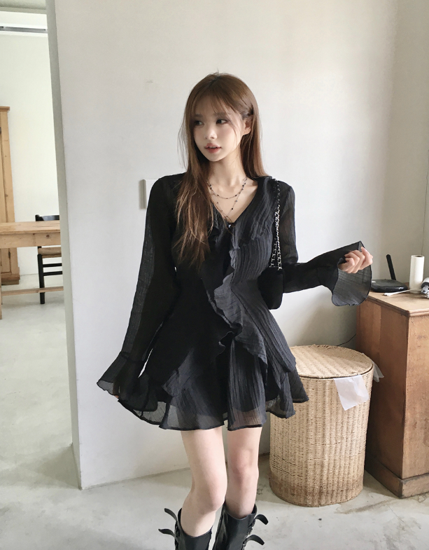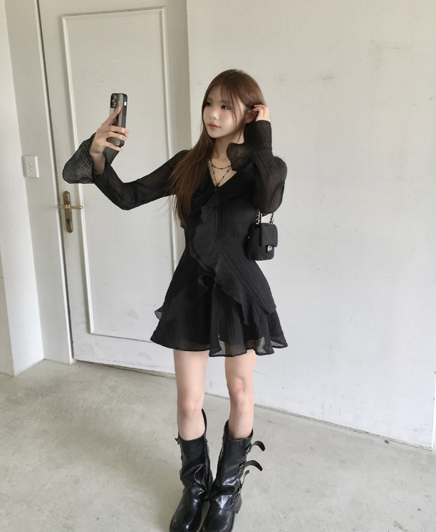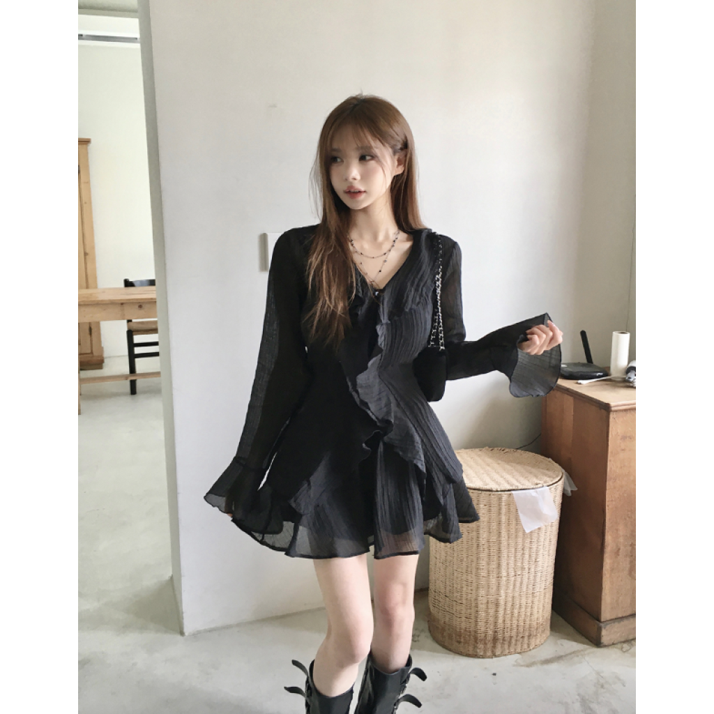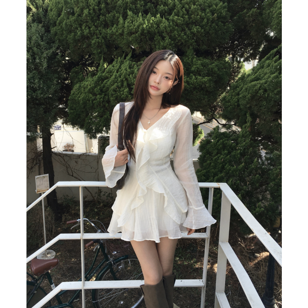 (•‾⌣‾•)荷葉邊與V領剪裁💕打造溫柔純欲風❤️