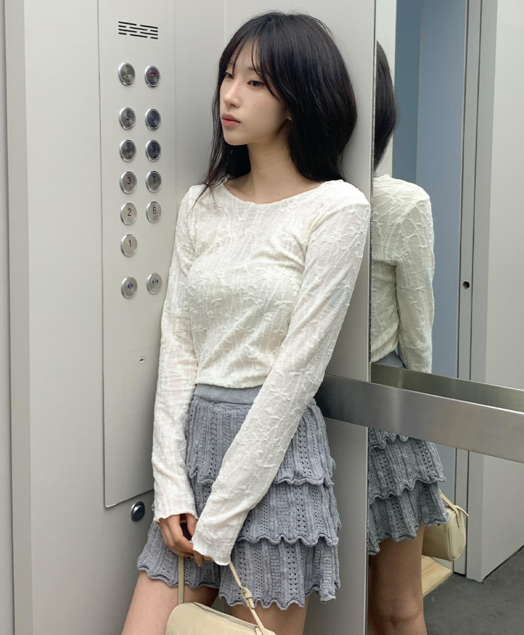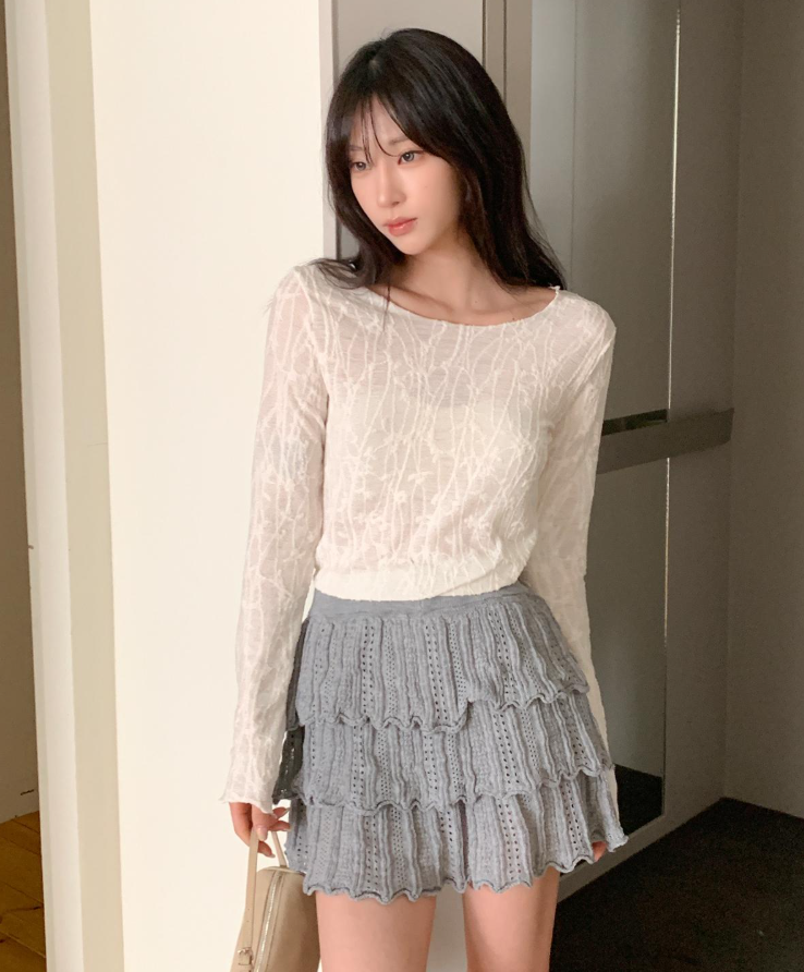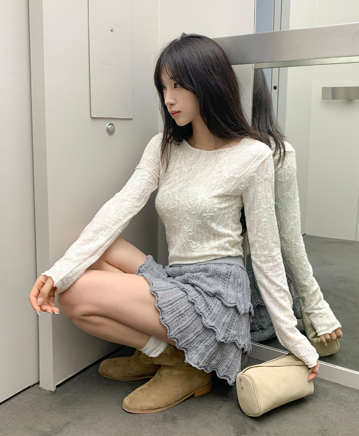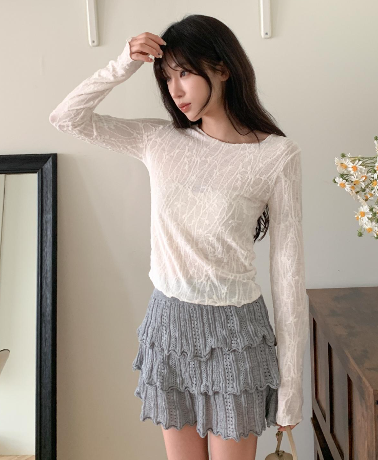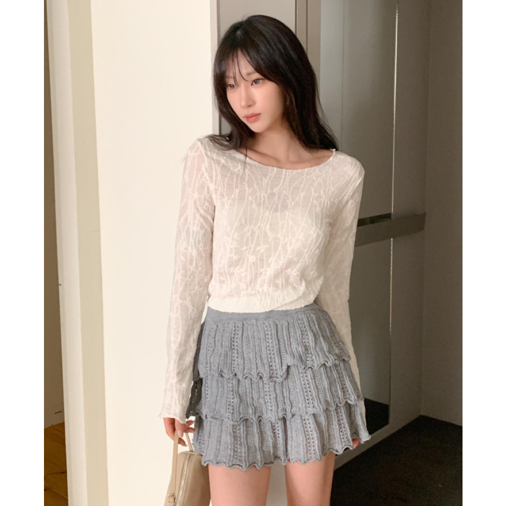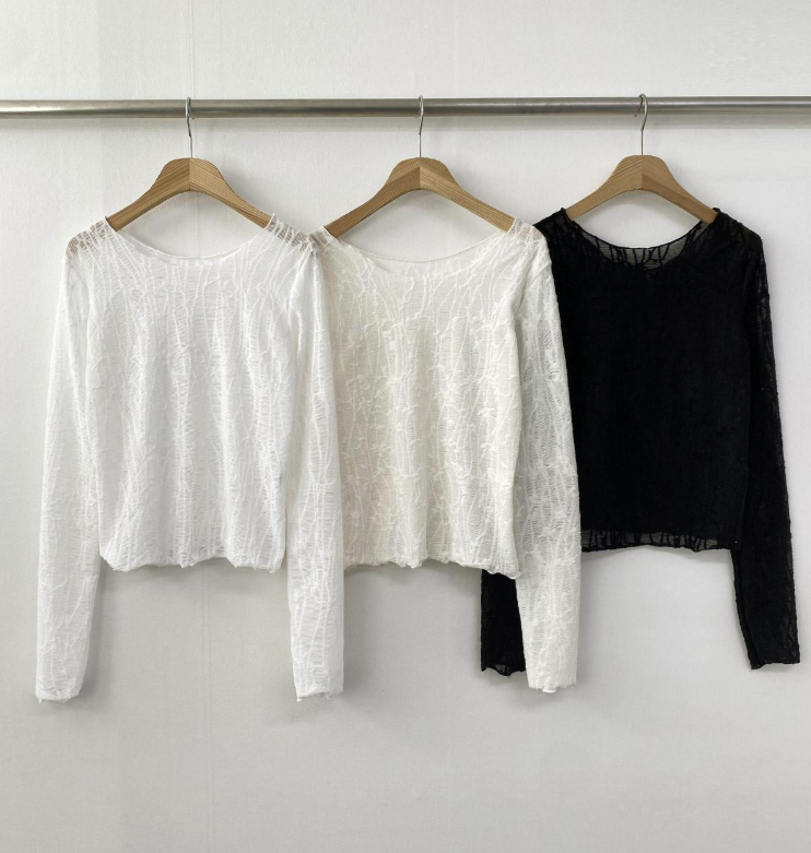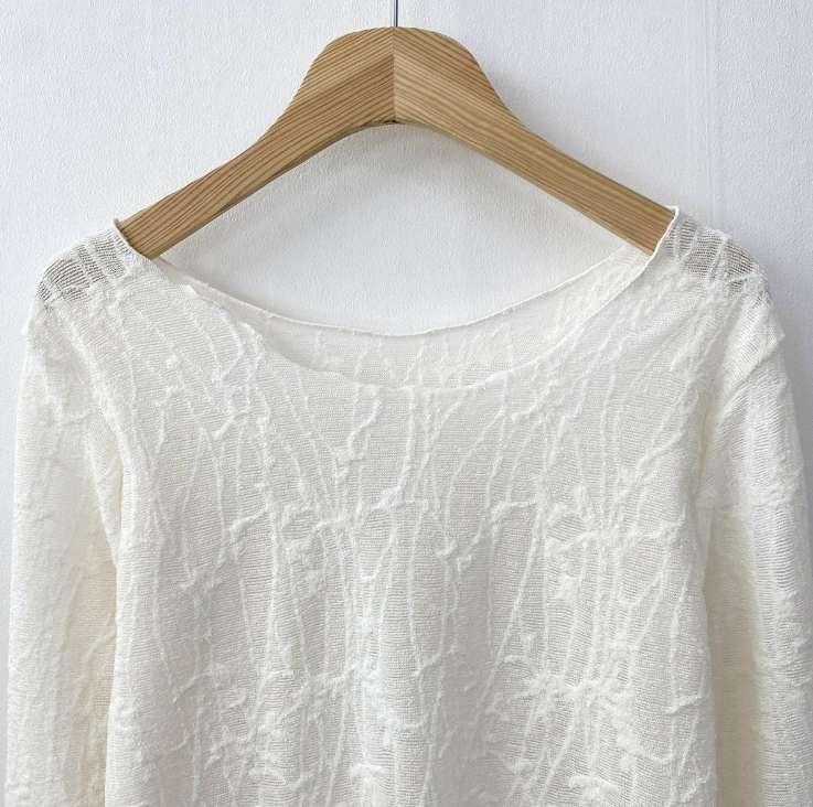 (•‾⌣‾•)純獨特冰裂紋肌理💕配上輕盈微透親膚材質❤️今年必收氛圍感打底衫