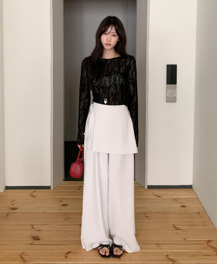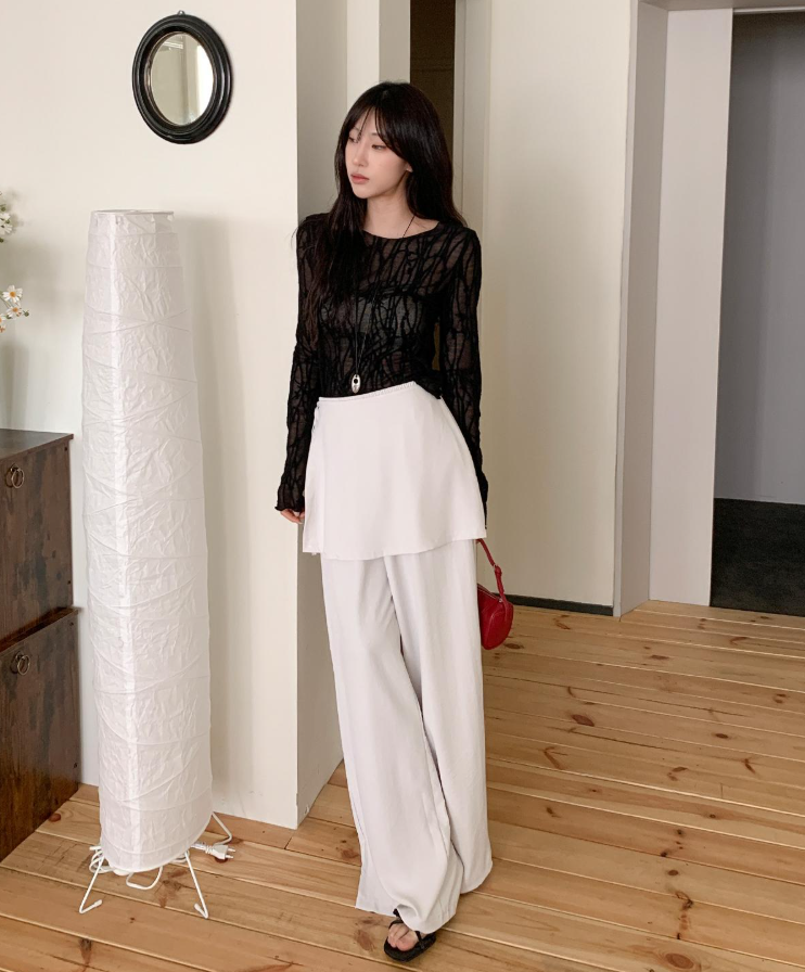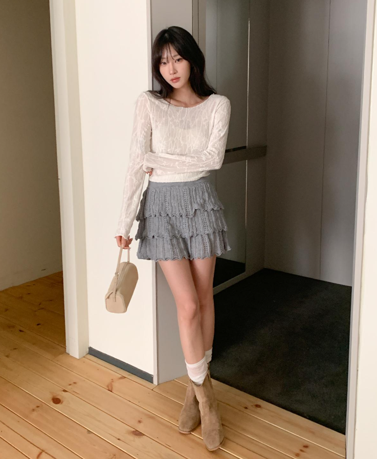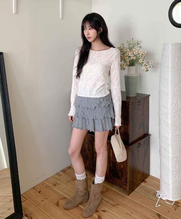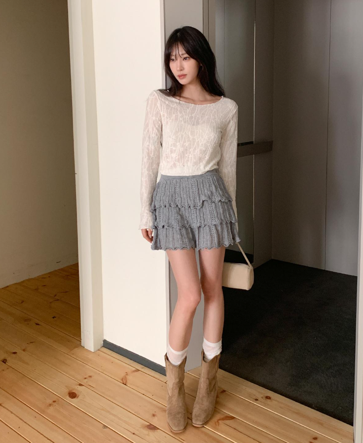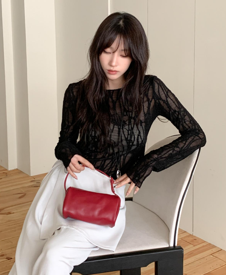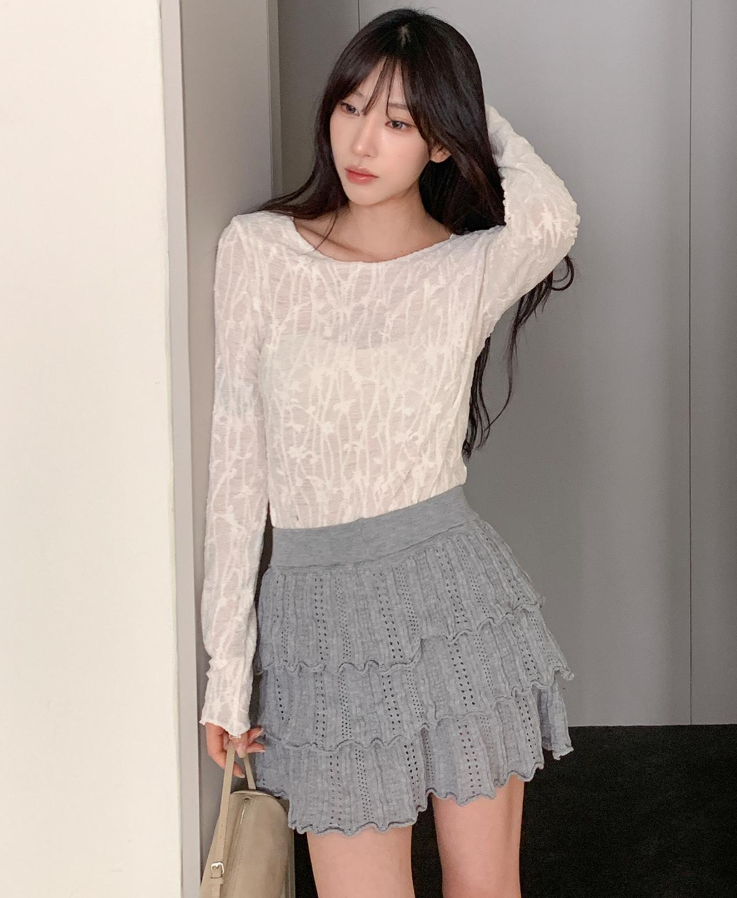 (•‾⌣‾•)純獨特冰裂紋肌理💕配上輕盈微透親膚材質❤️今年必收氛圍感打底衫