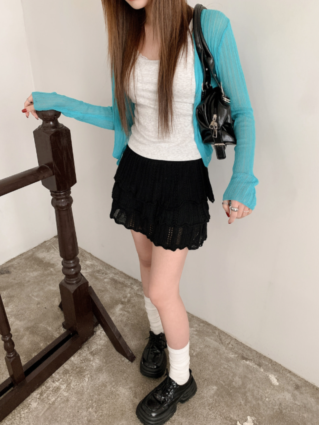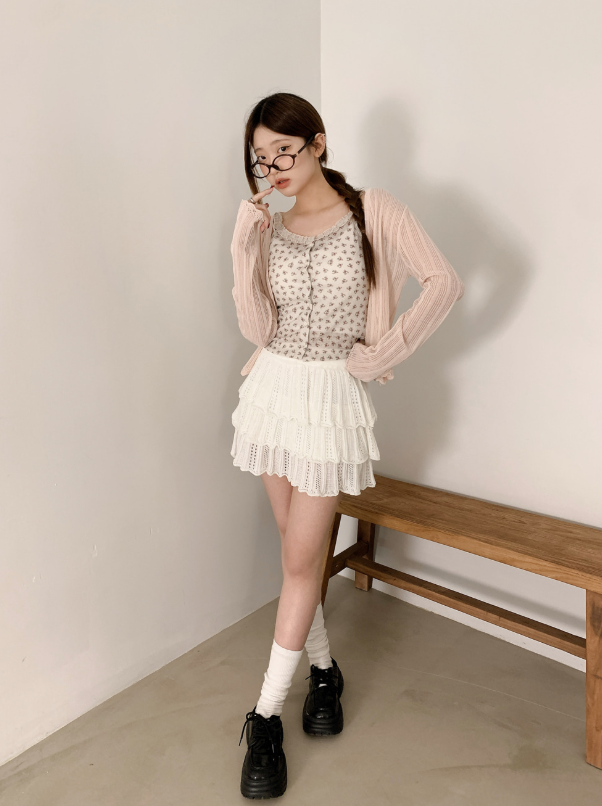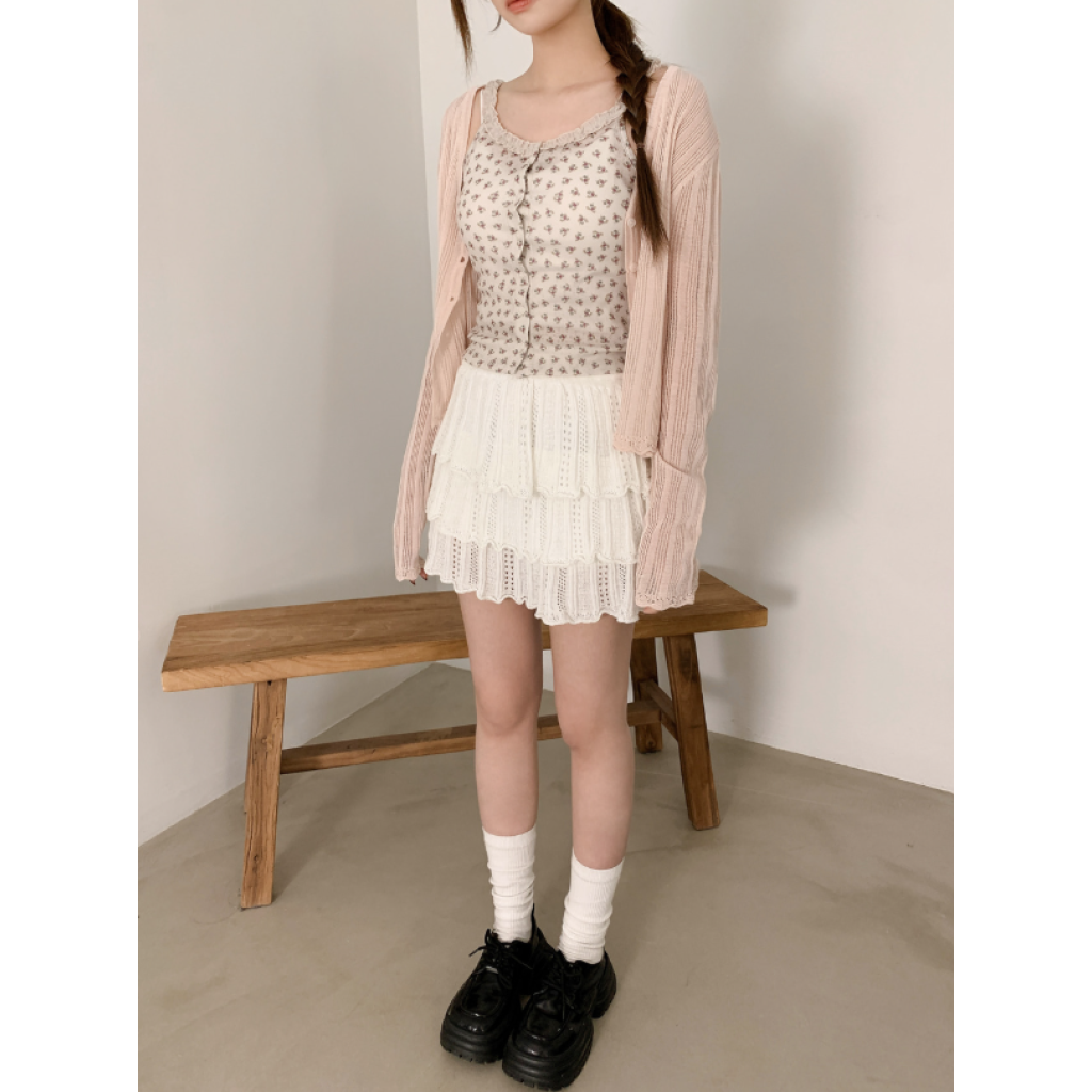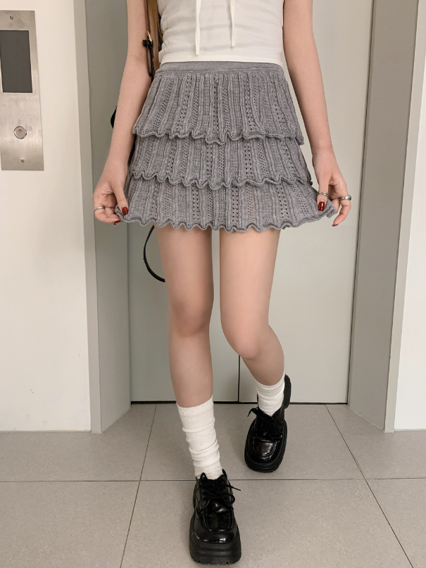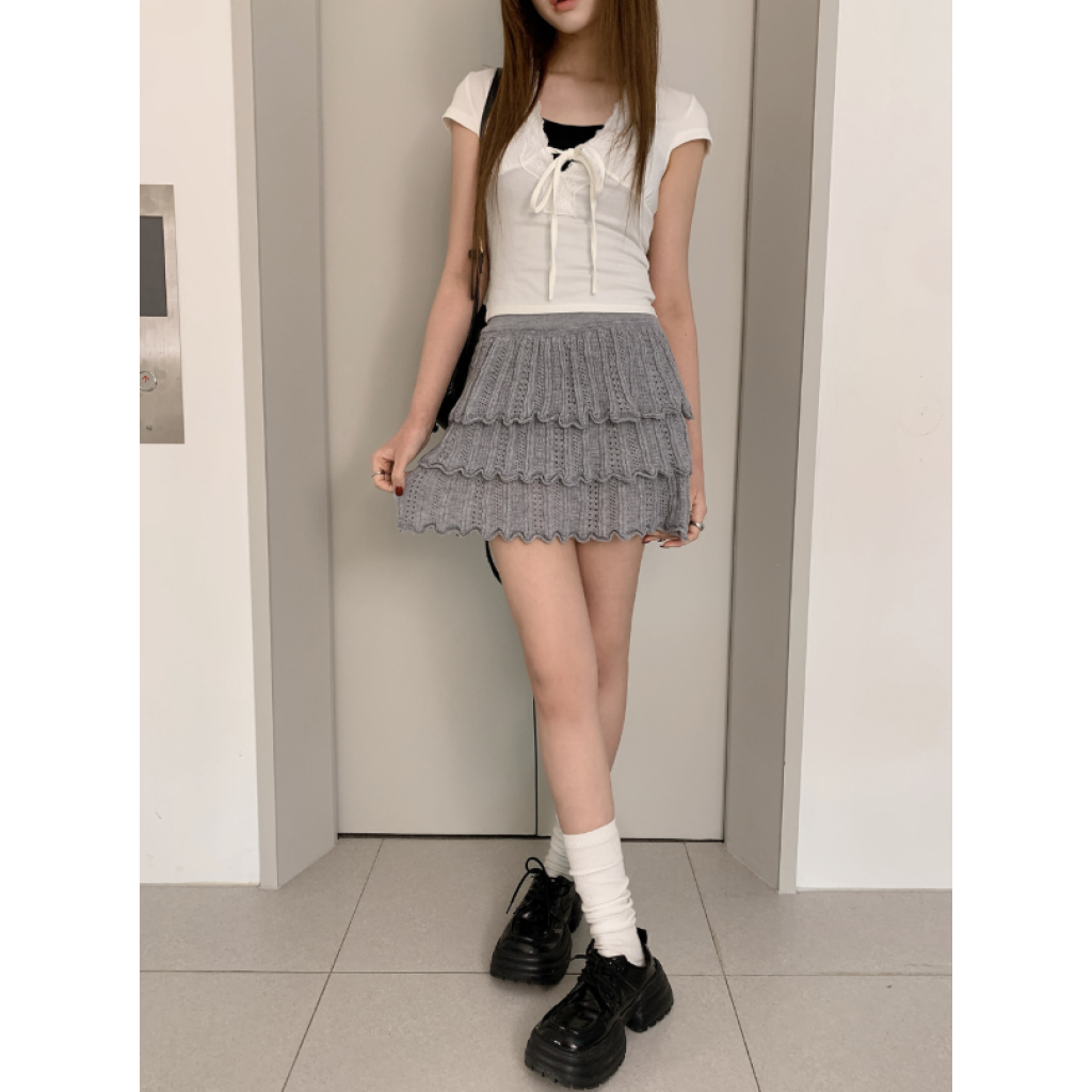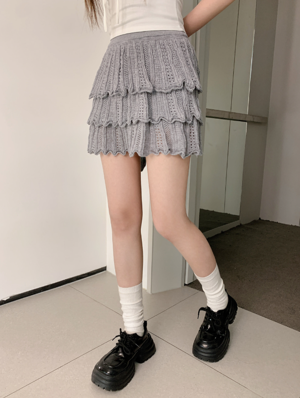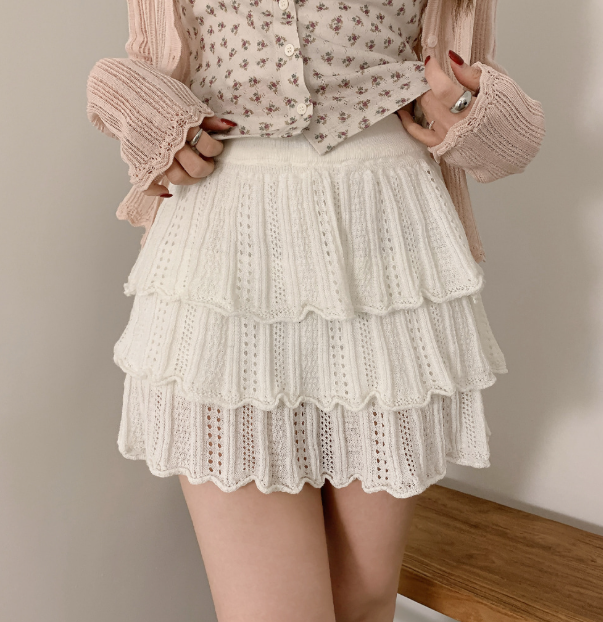 ヽ( ^ω^ ゞ )高腰針織鏤空蛋糕裙❤️層次感設計超顯腿長💕
