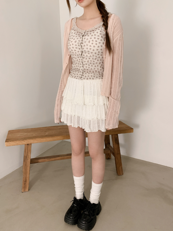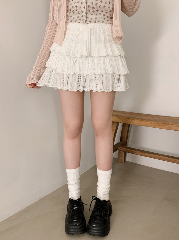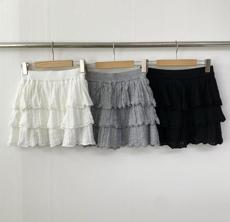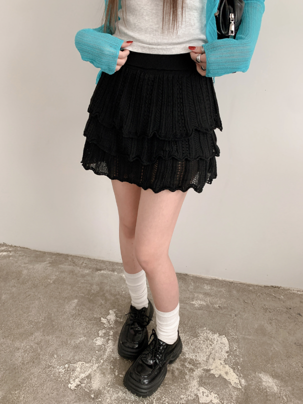 鏤空針織多層半身裙【3色入】