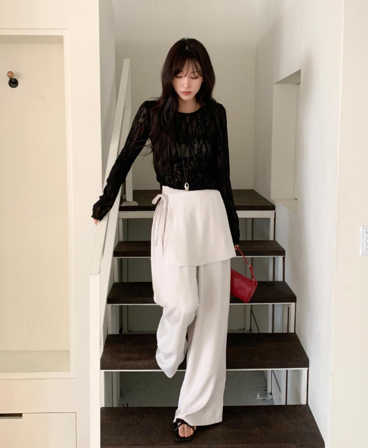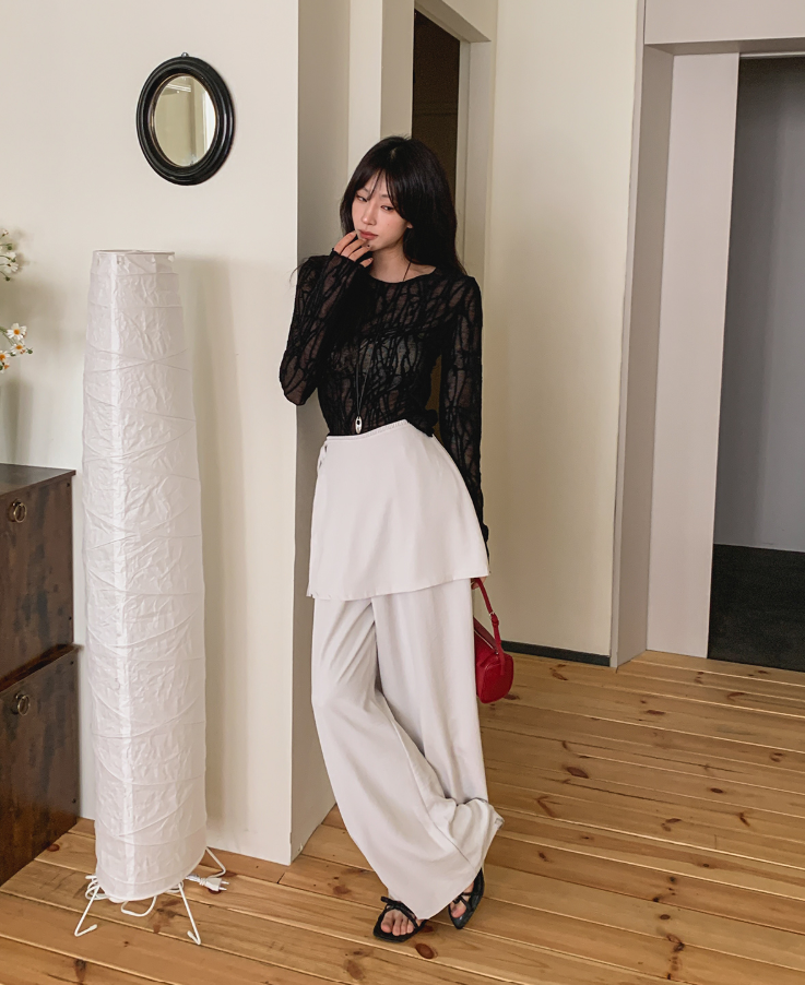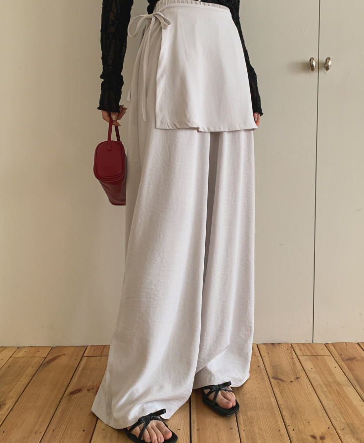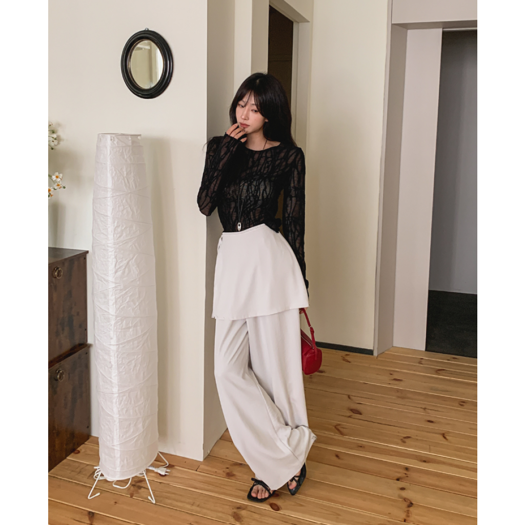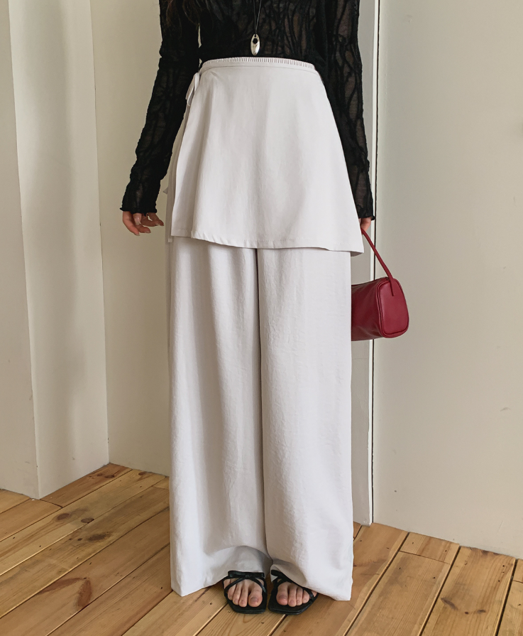 ヽ( ^ω^ ゞ )兩件式不規則裙褲💕一片式圍裹設計感十足❤️垂墜寬褲版型完美藏肉