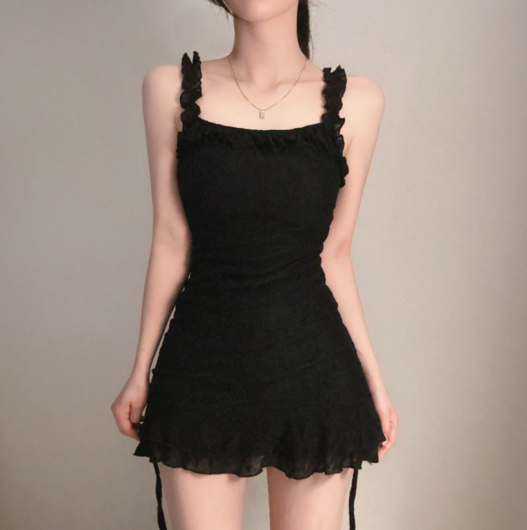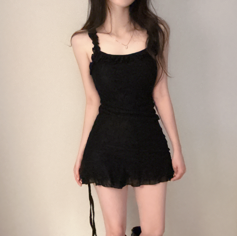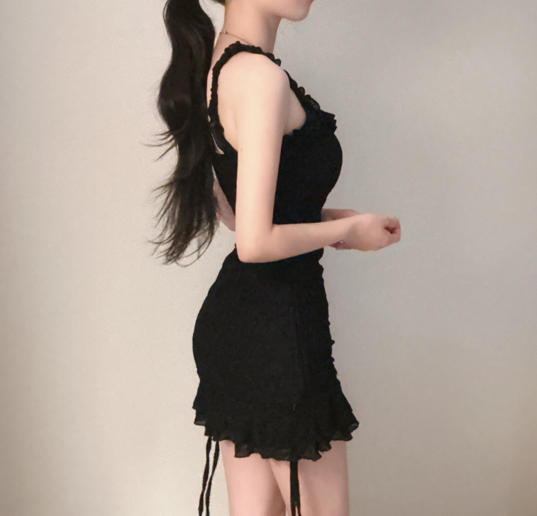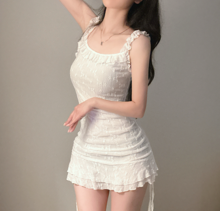 (•‾⌣‾•)芭蕾緹花蕾絲❤️搭配荷葉邊與褶皺設計💕完美貼合曲線散發性感氛圍