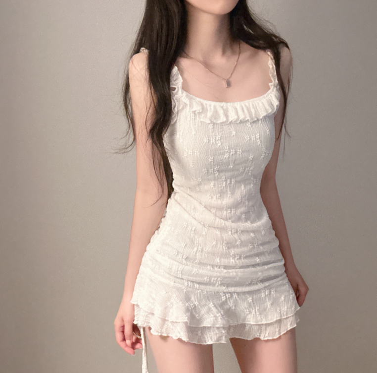 蕾絲荷葉邊連身裙【2色入】